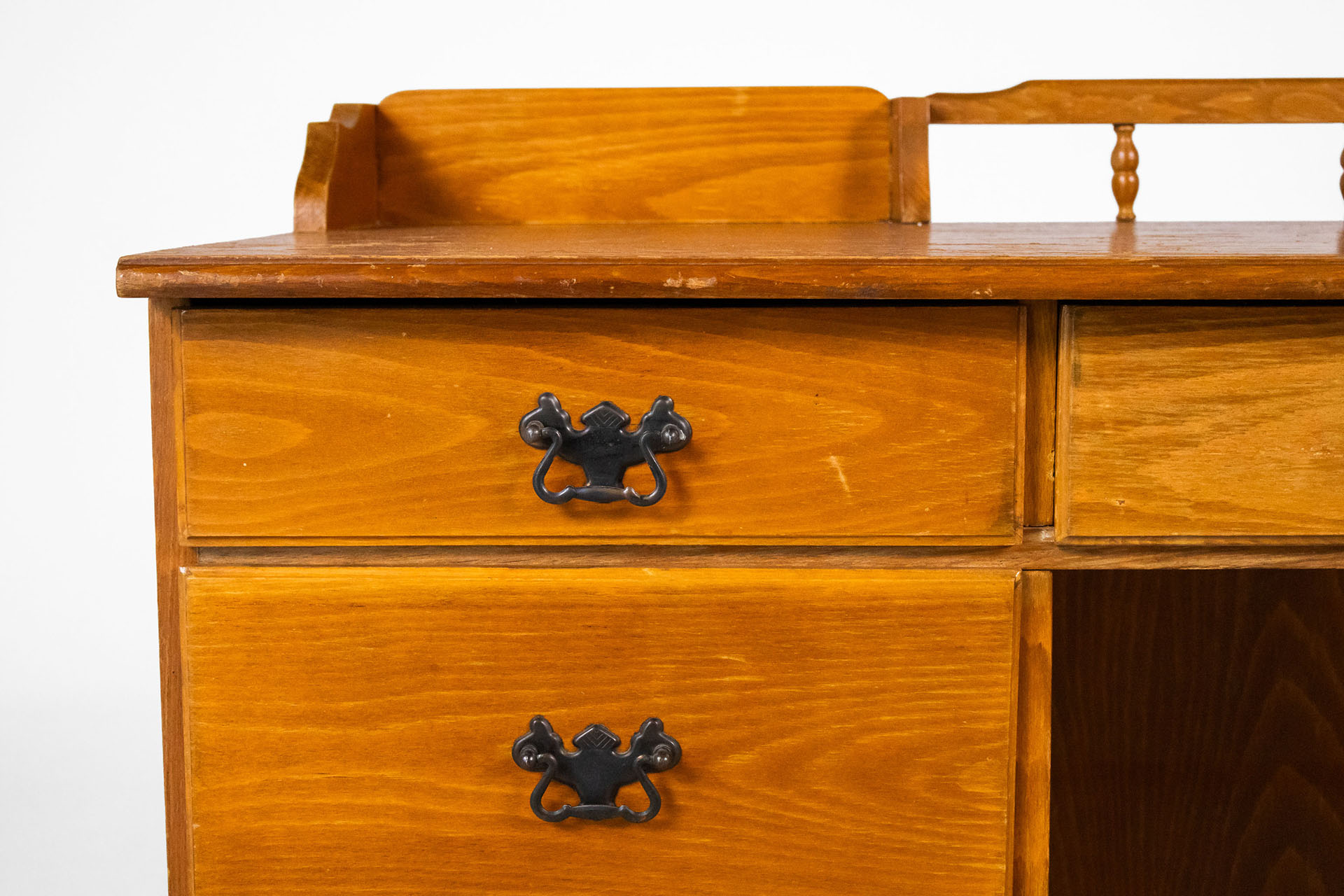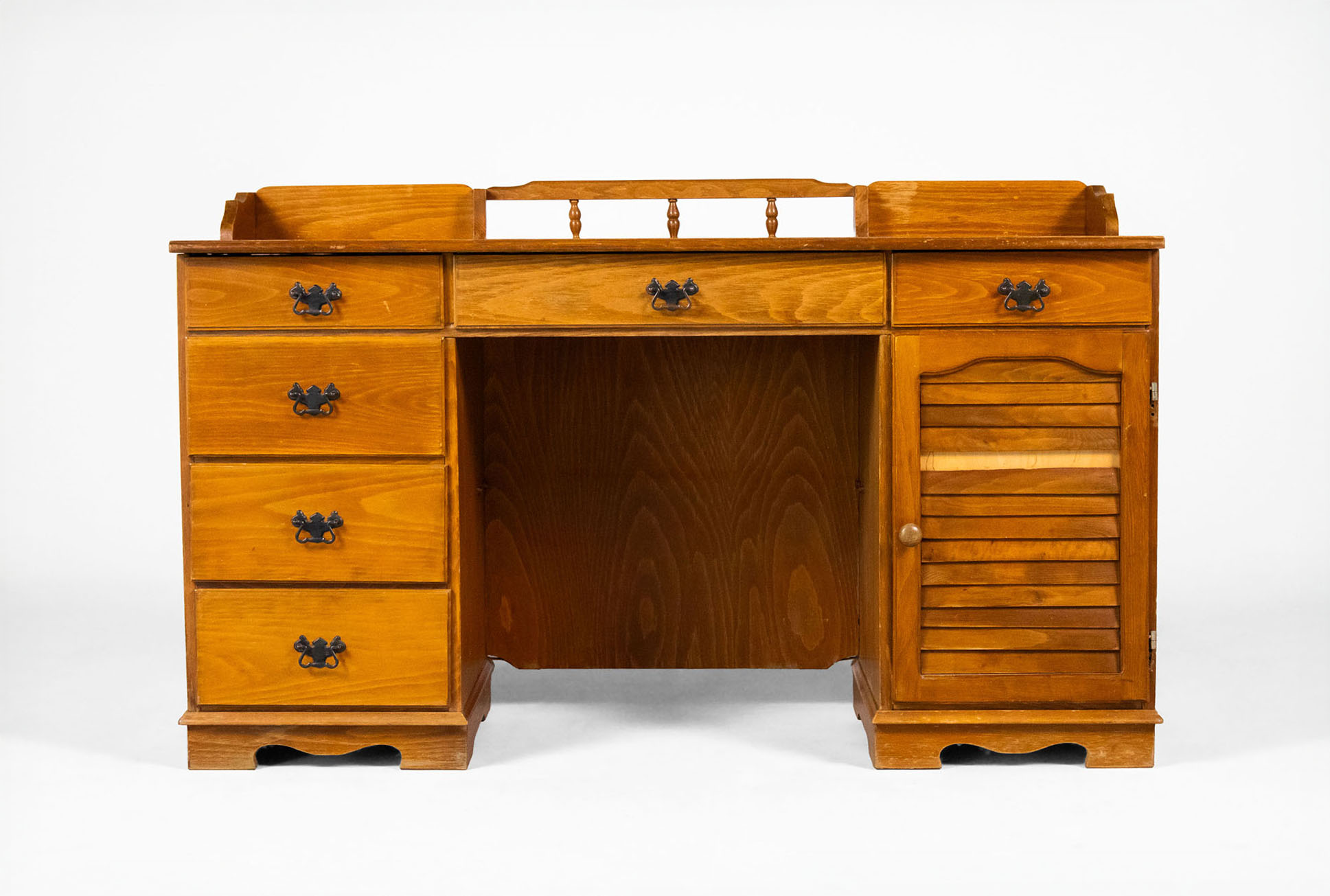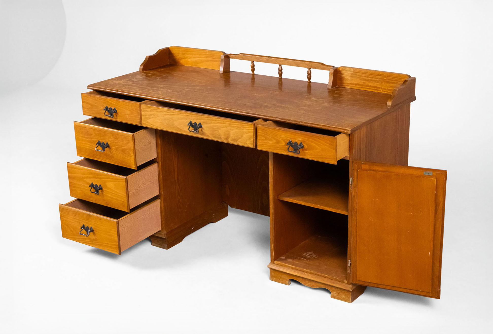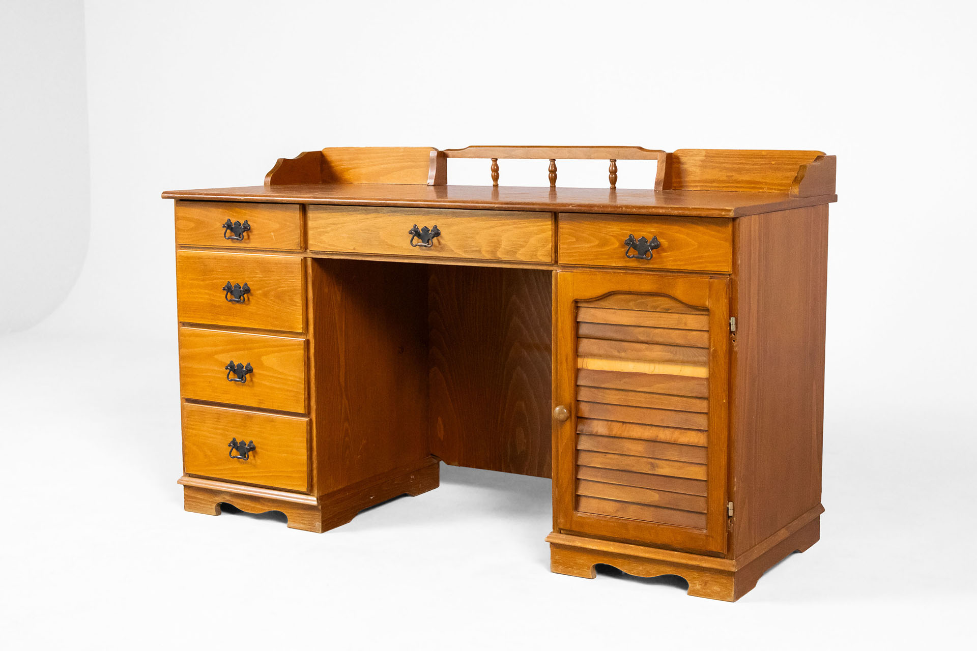 Rusztikus íróasztalf fiókokkal és redőnyös polcokkal