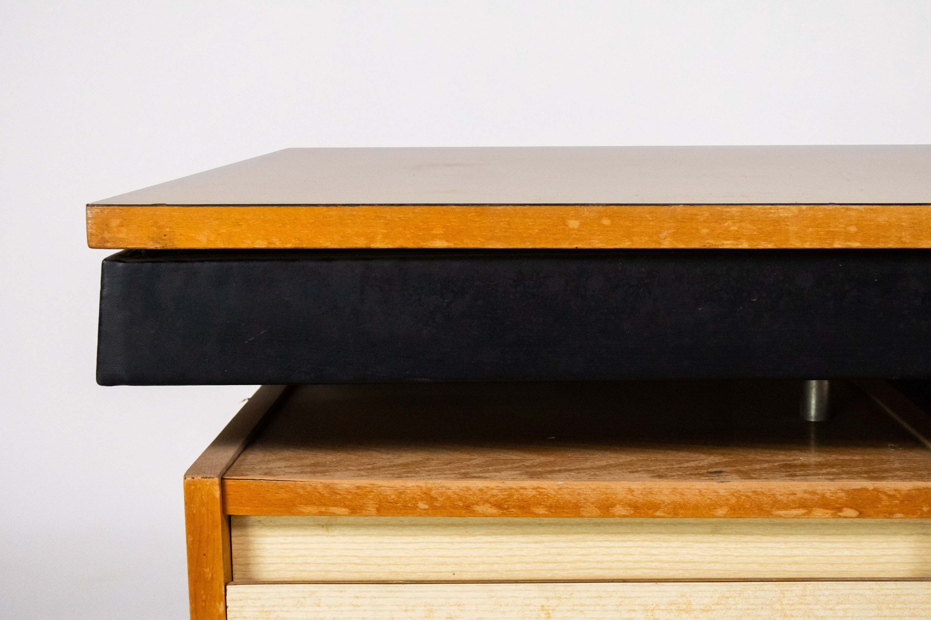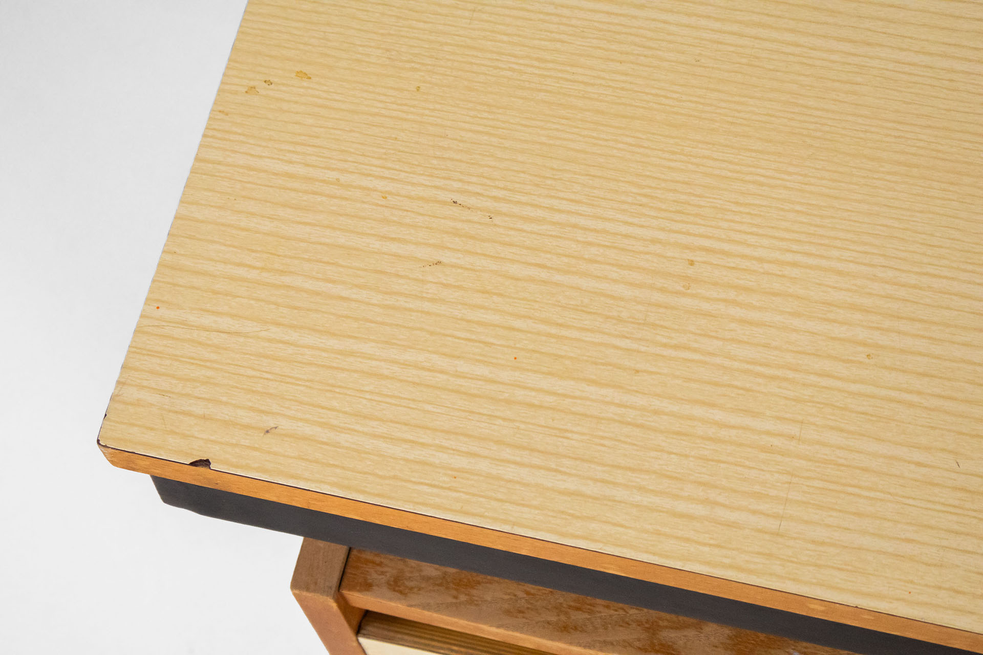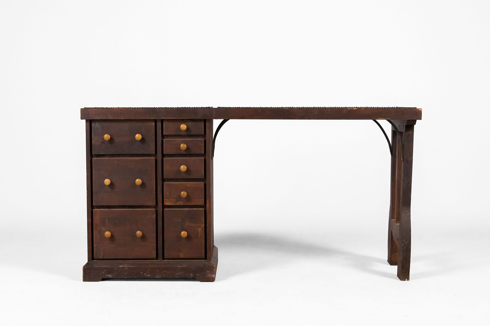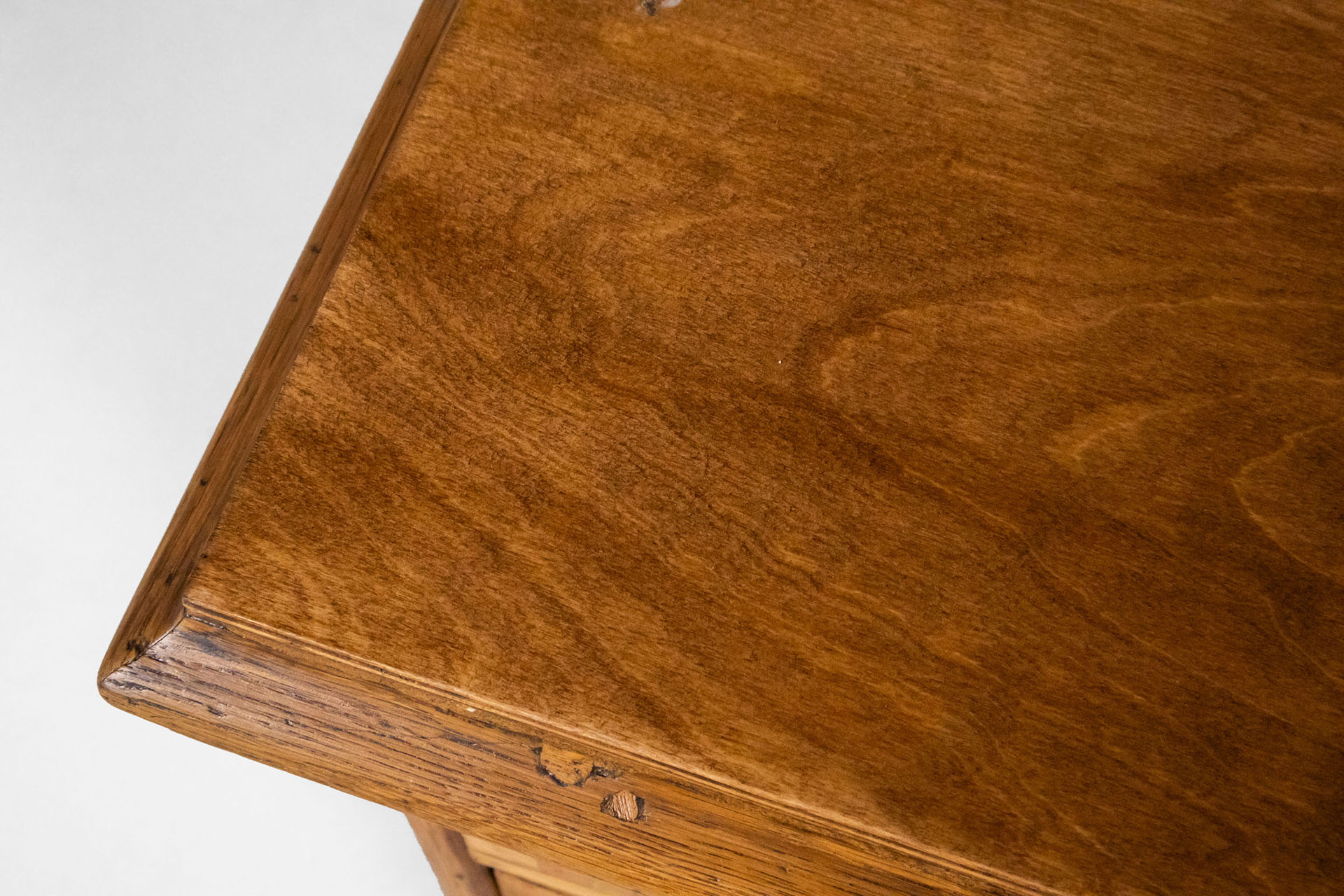 Rusztikus íróasztalf fiókokkal és redőnyös polcokkal