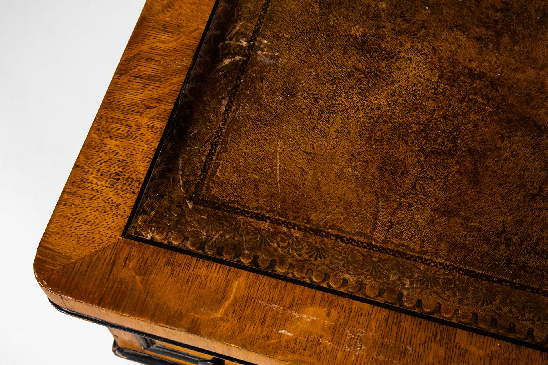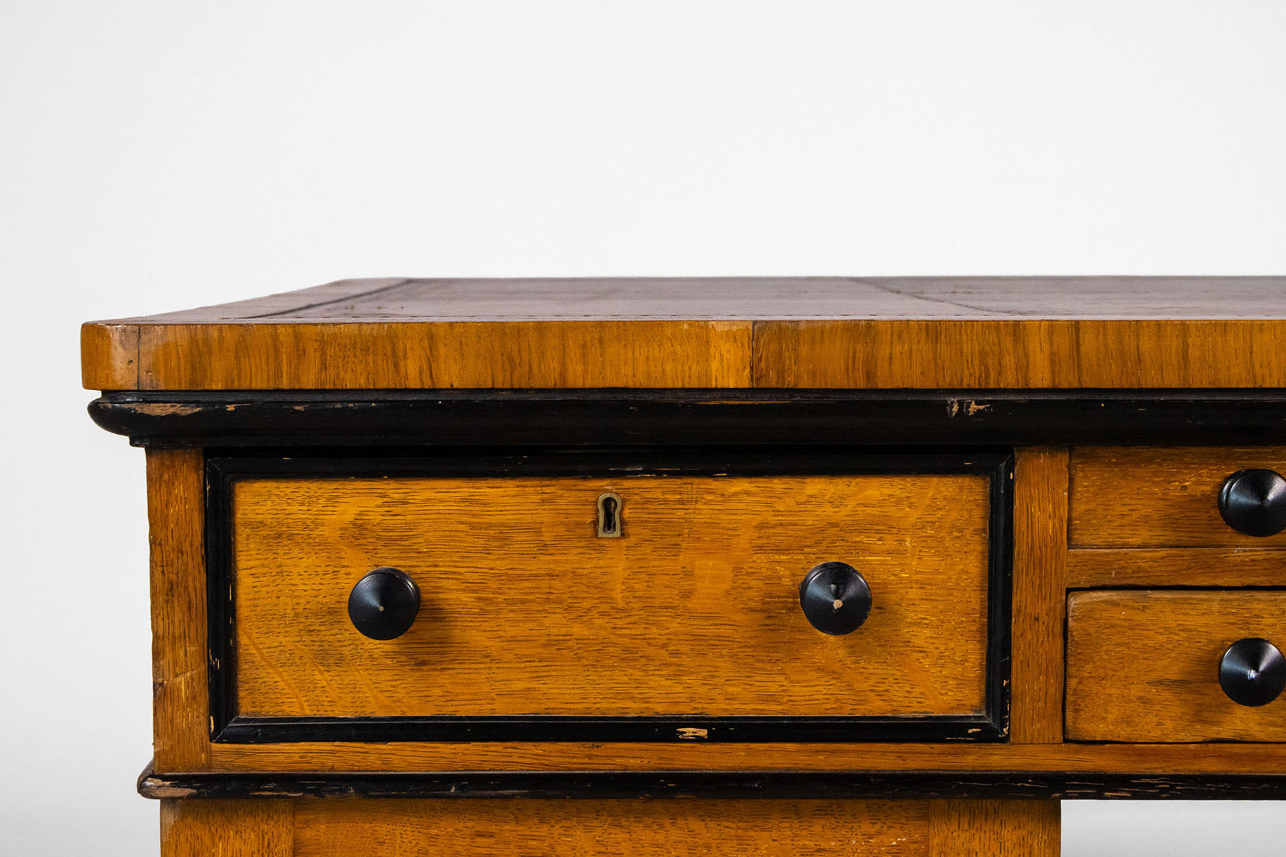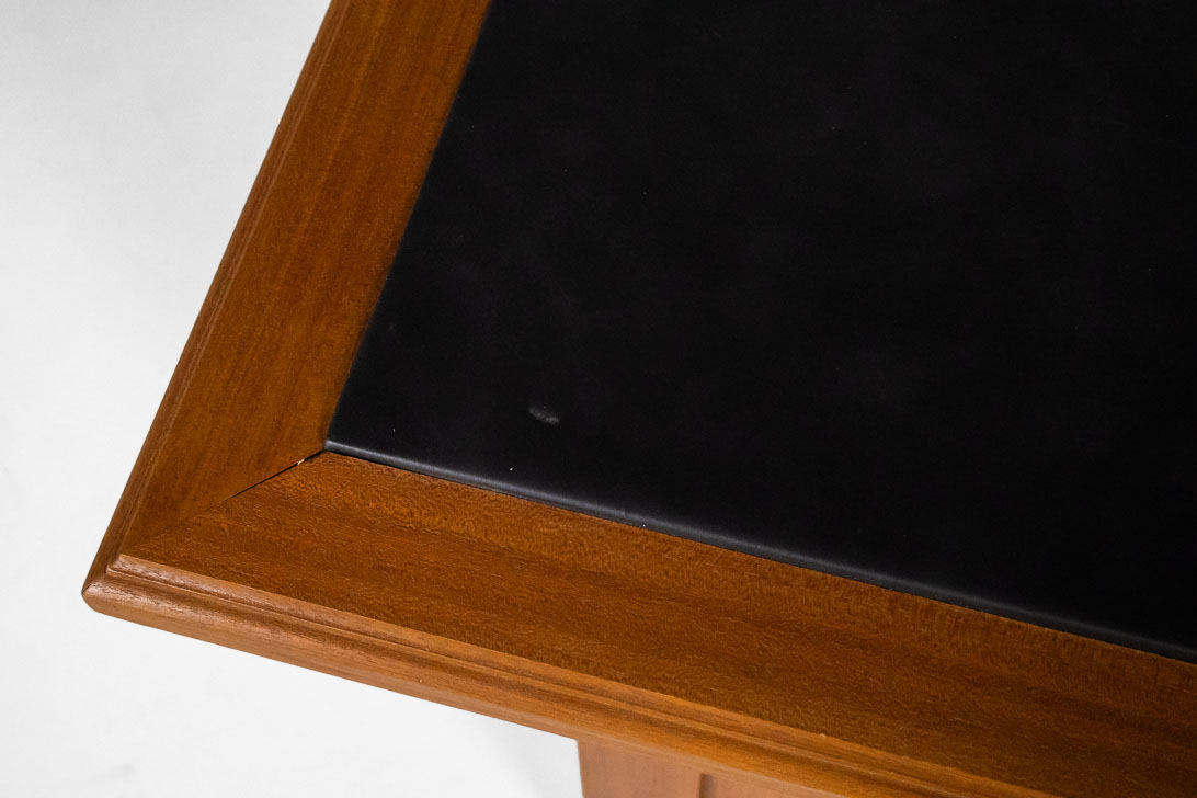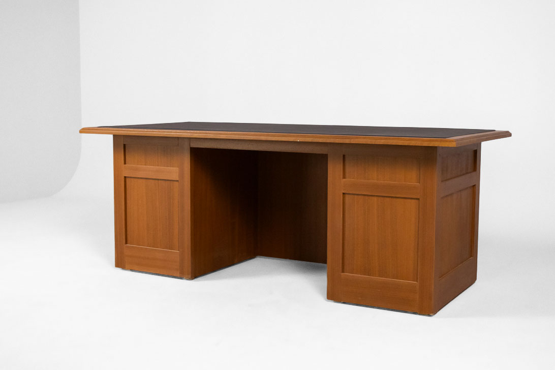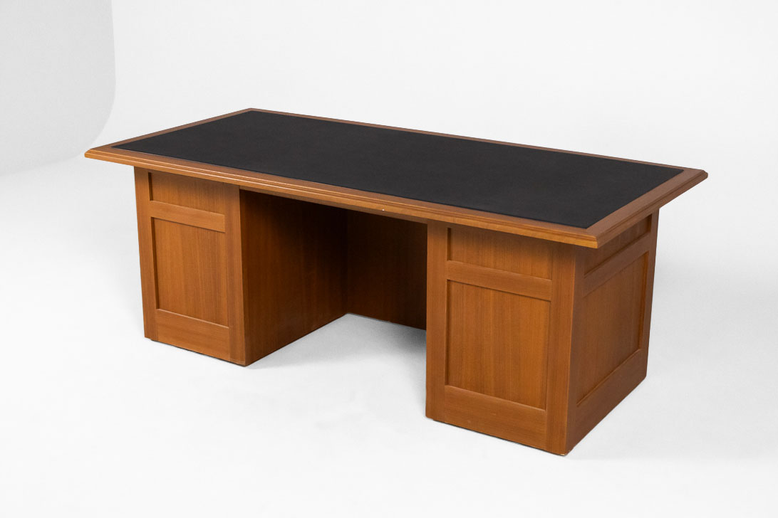 Klasszikus íróasztal sötétbarna fából, bőrözött asztalappal