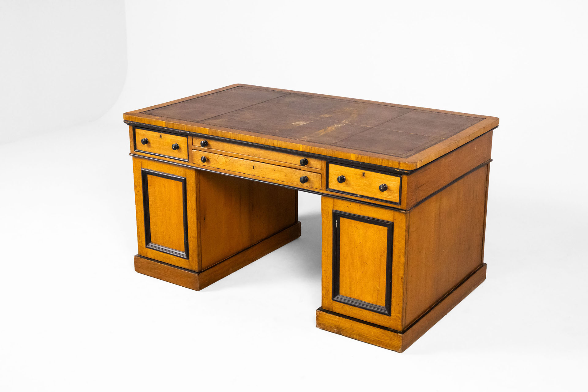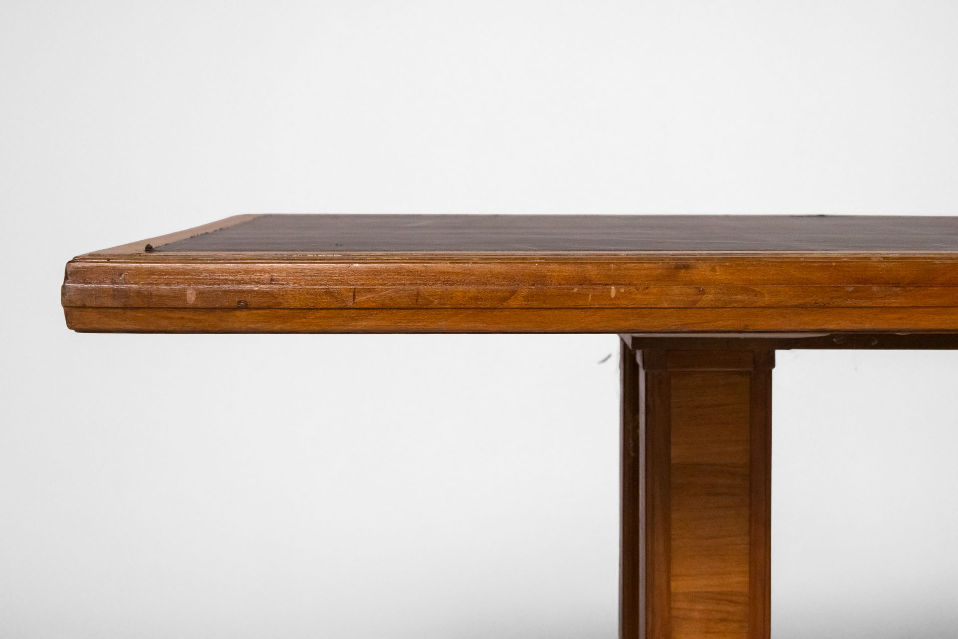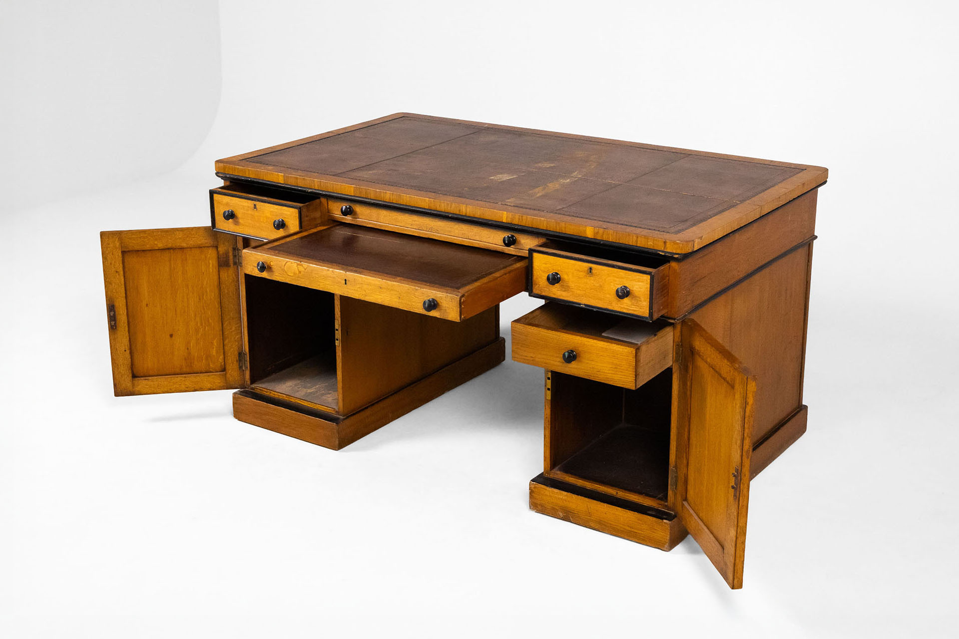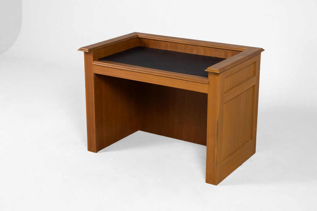 Klasszikus íróasztal sötétbarna fából, bőrözött asztalappal