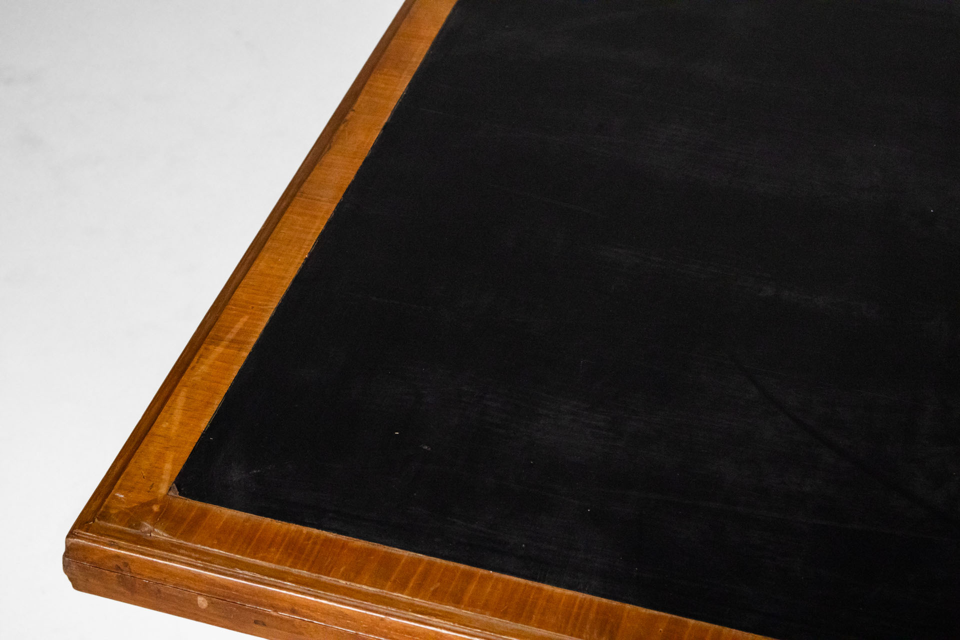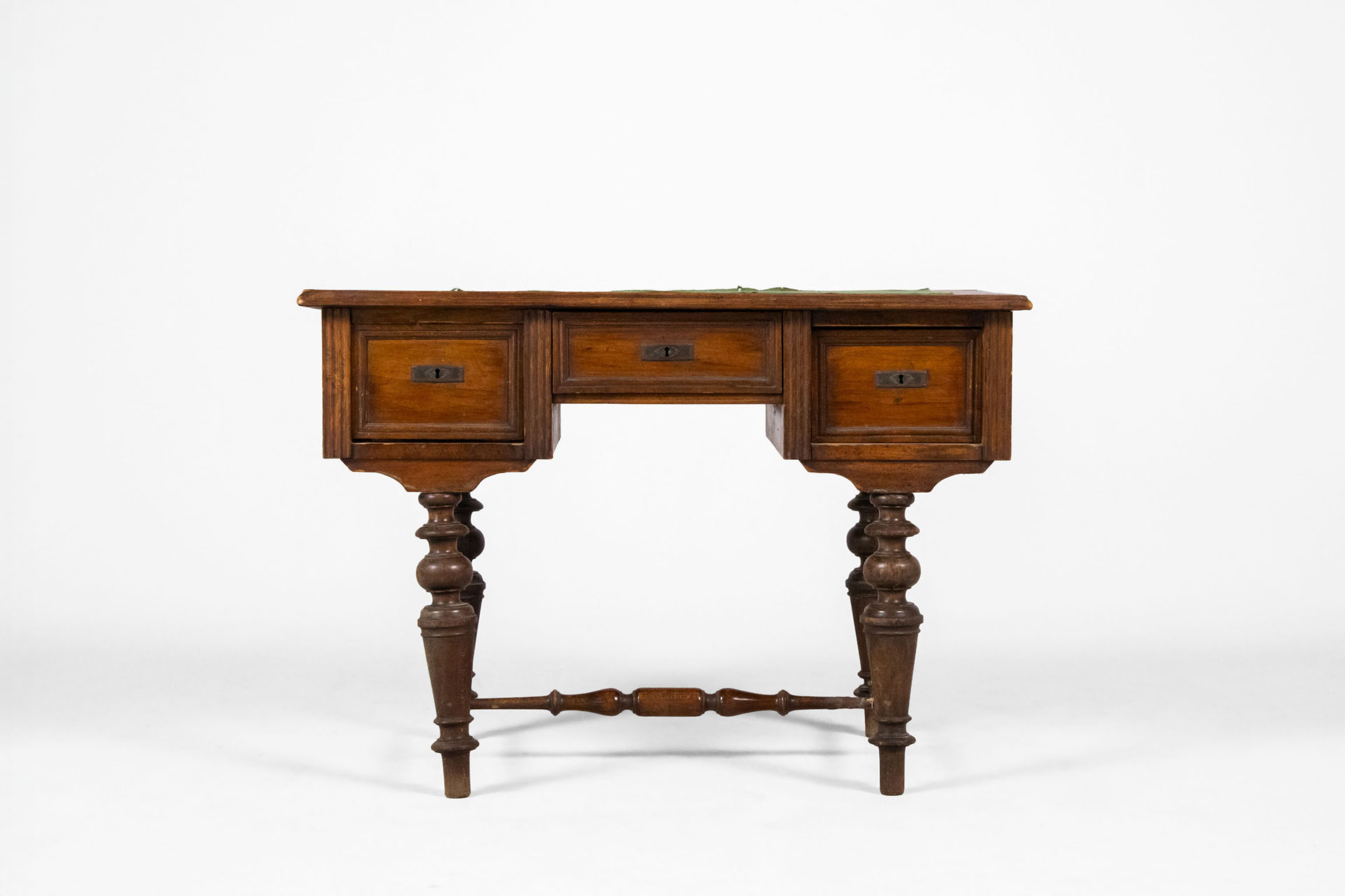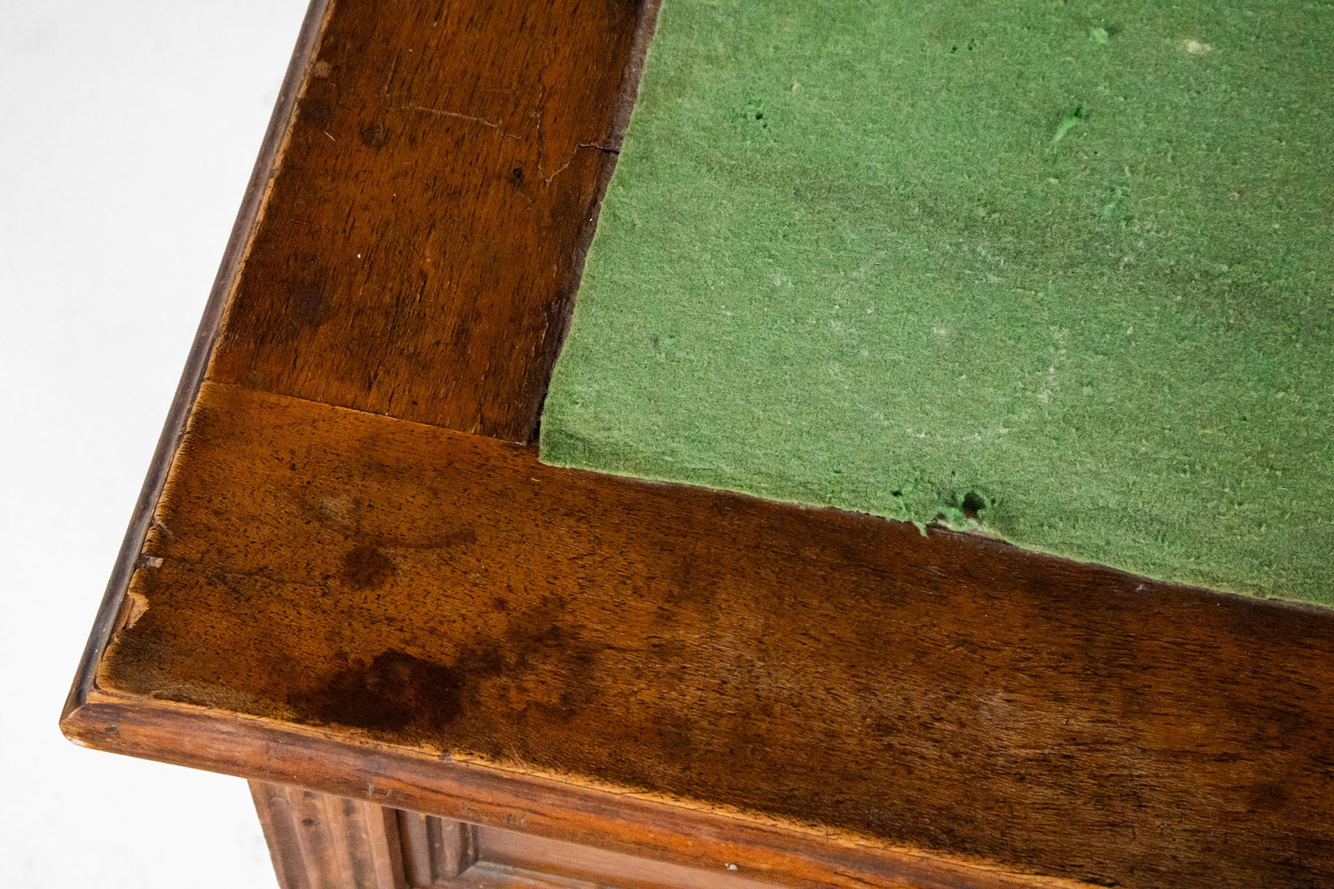 Klasszikus antik íróasztal fa szerkezettel és zöld filc borítással és esztergált lábakkal