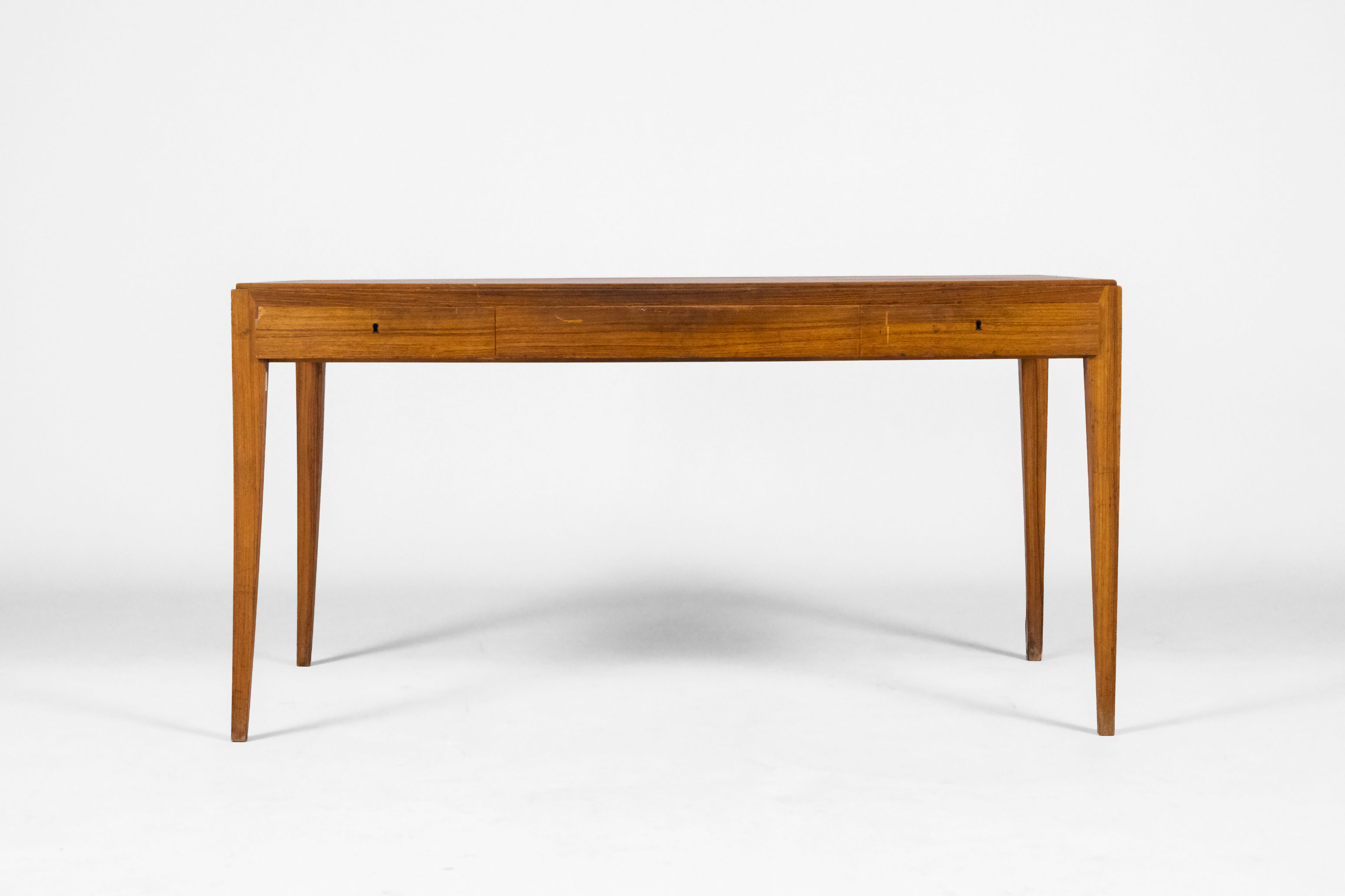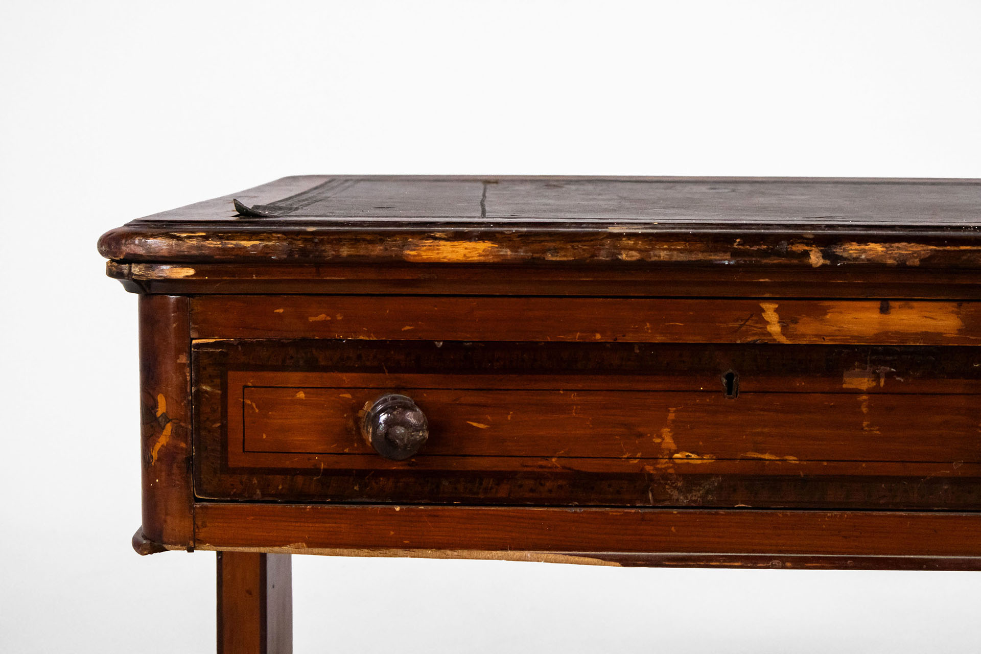 Elegáns fa íróasztal vntage stílusban, bőrözött asztallappal
