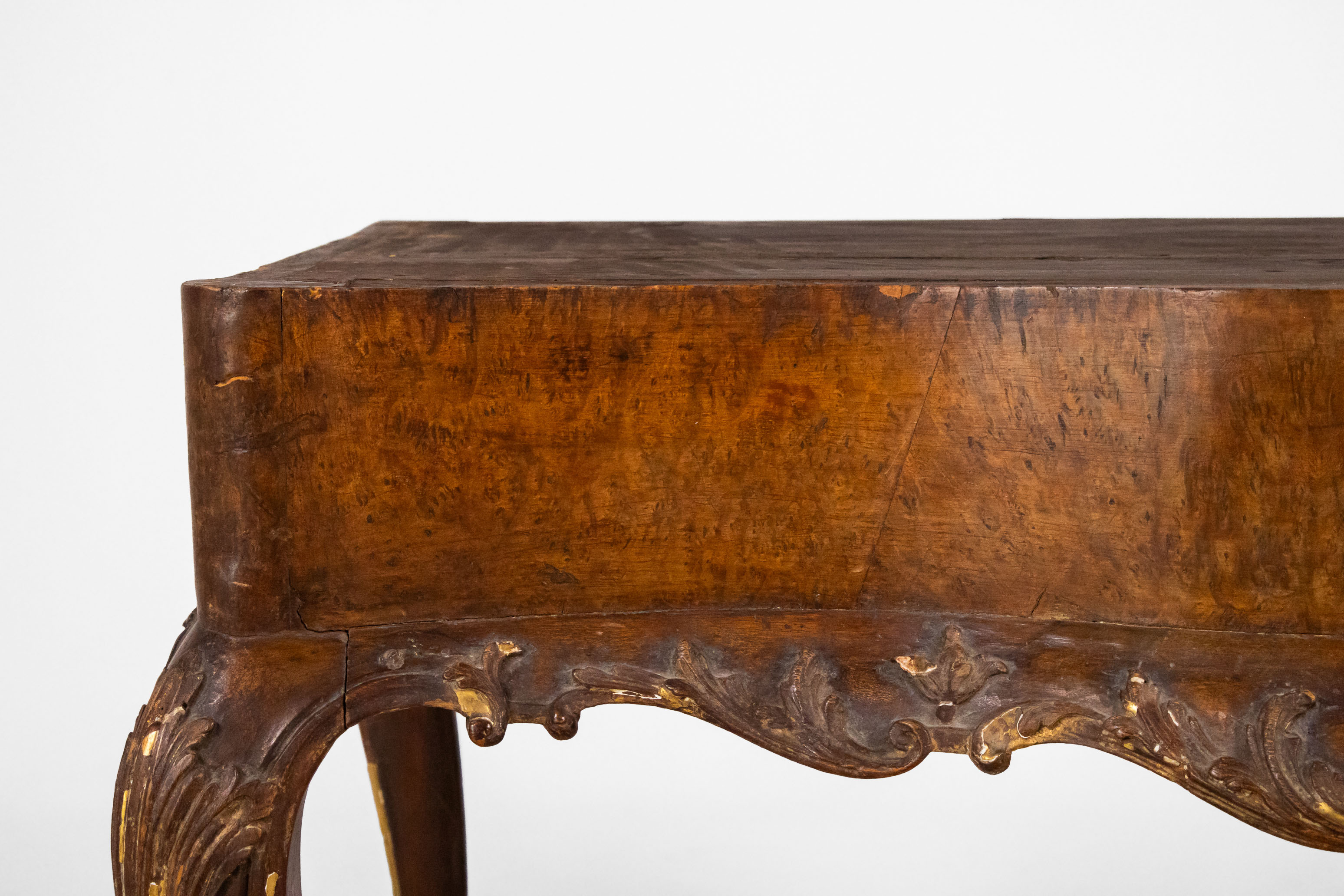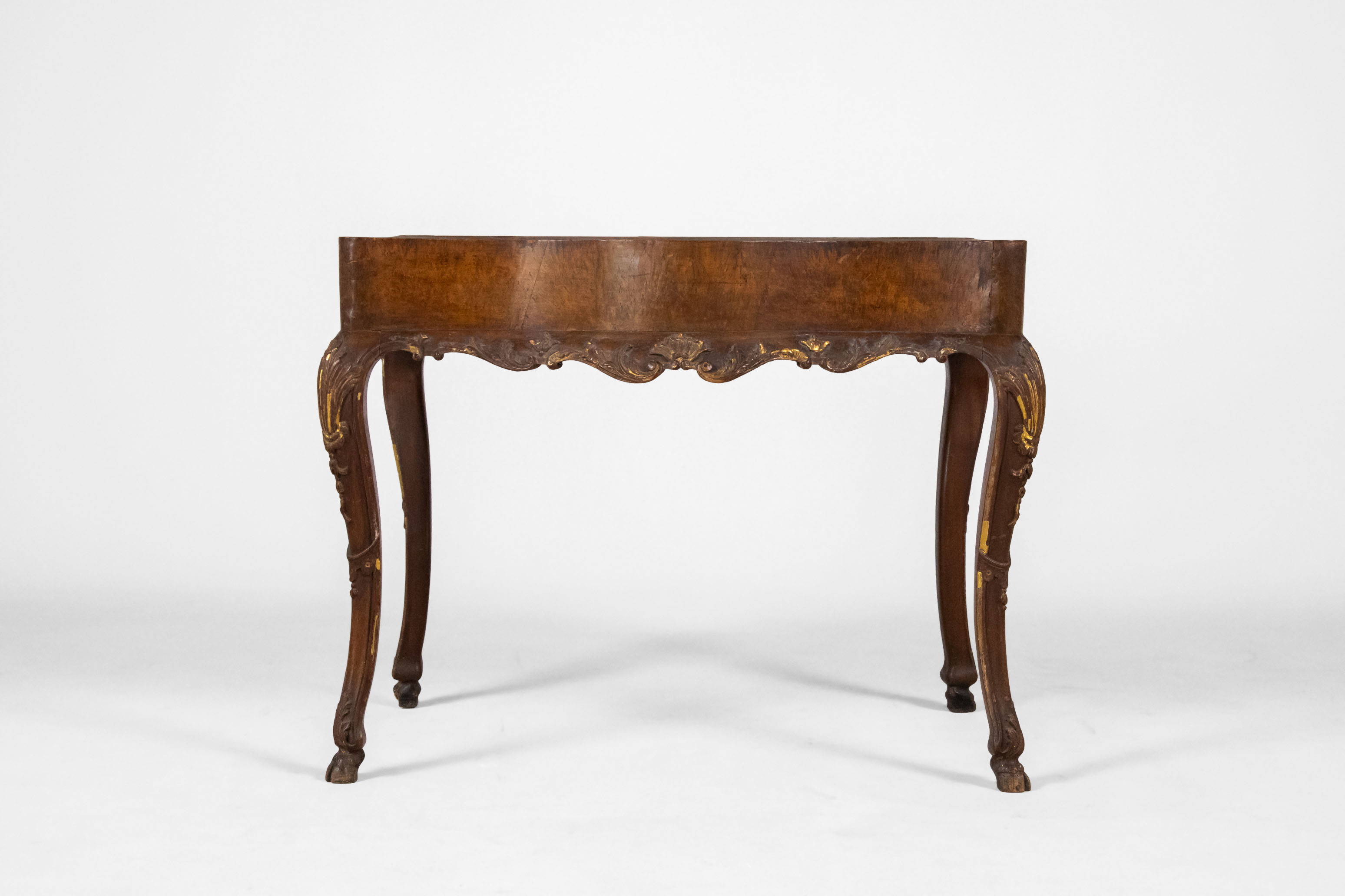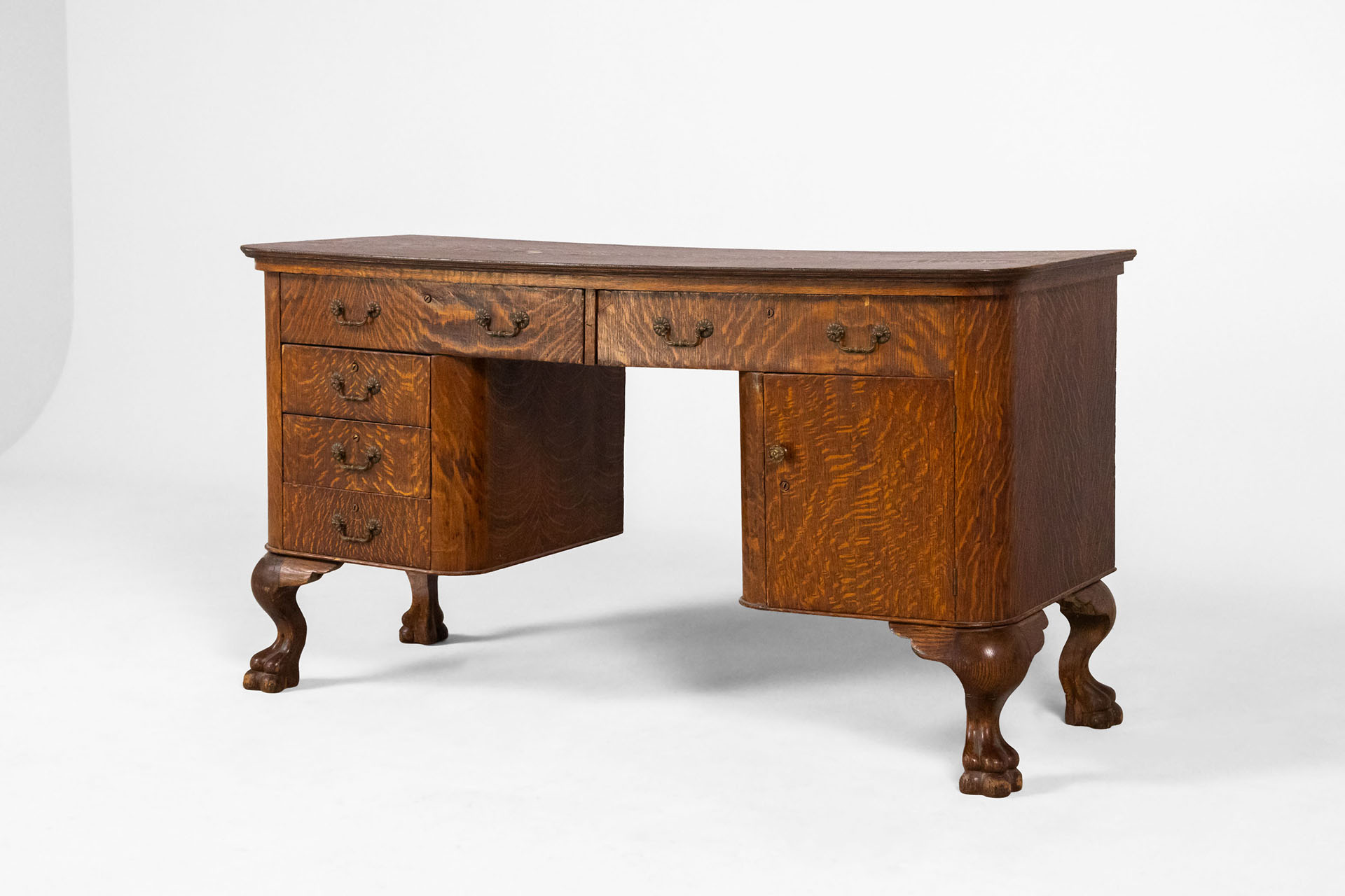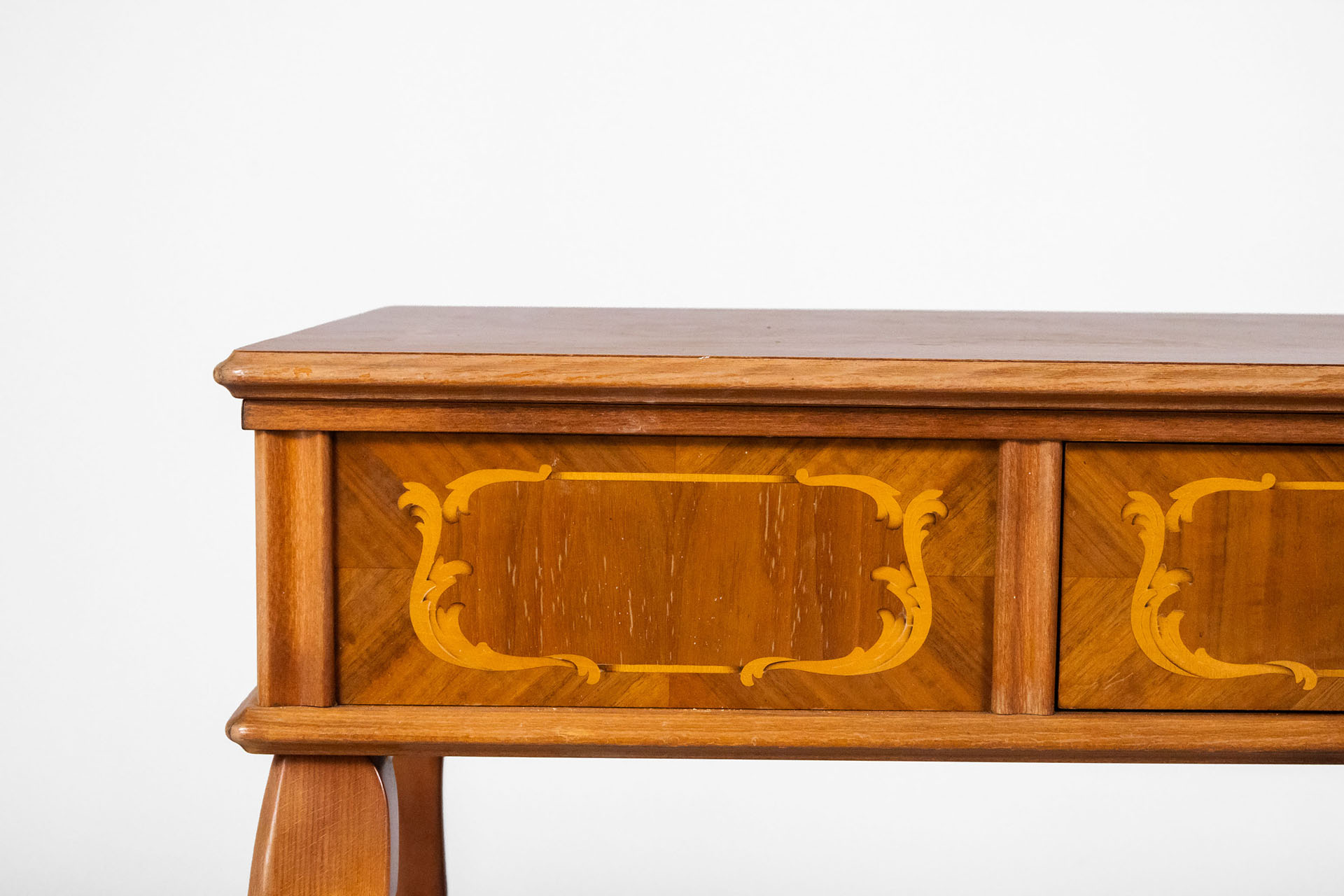 Klasszikus világosbarna íróasztal intarziás díszítéssel és ívelt lábakkal