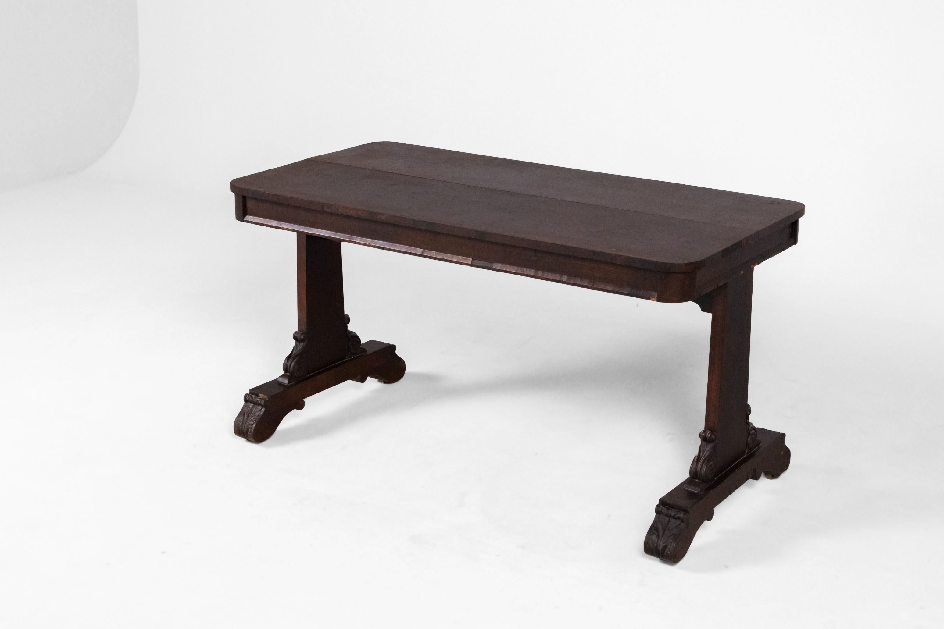 Elegáns, vintage stílusú íróasztal, amely masszív mahagóni anyagból készült. A bútor lekerekített sarkai és ívelt lábai klasszikus megjelenést kölcsönöznek, míg a finoman faragott díszítések a részletek iránti...