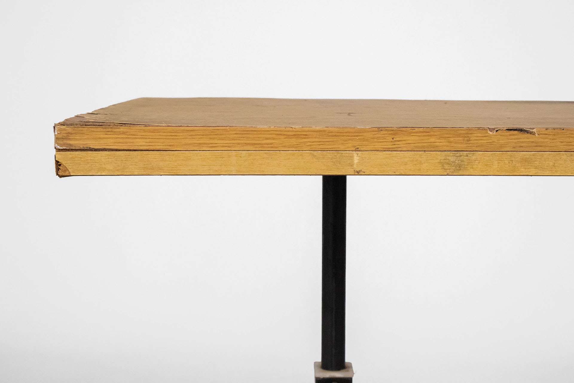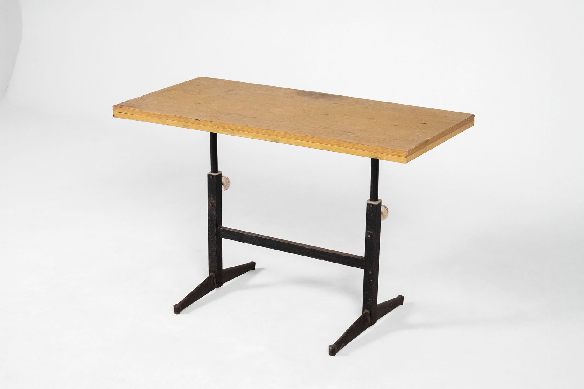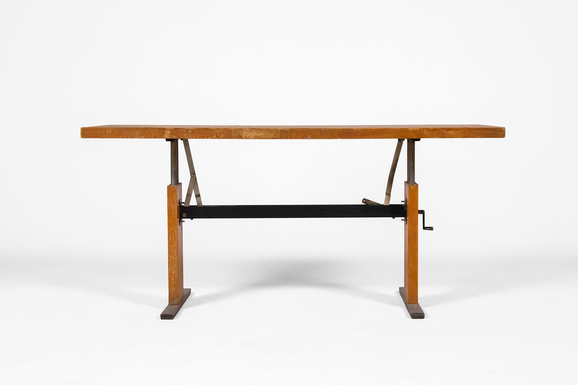 Állítható magasságú funkcionális íróasztal természetes fa asztallappal és fém lábakkal