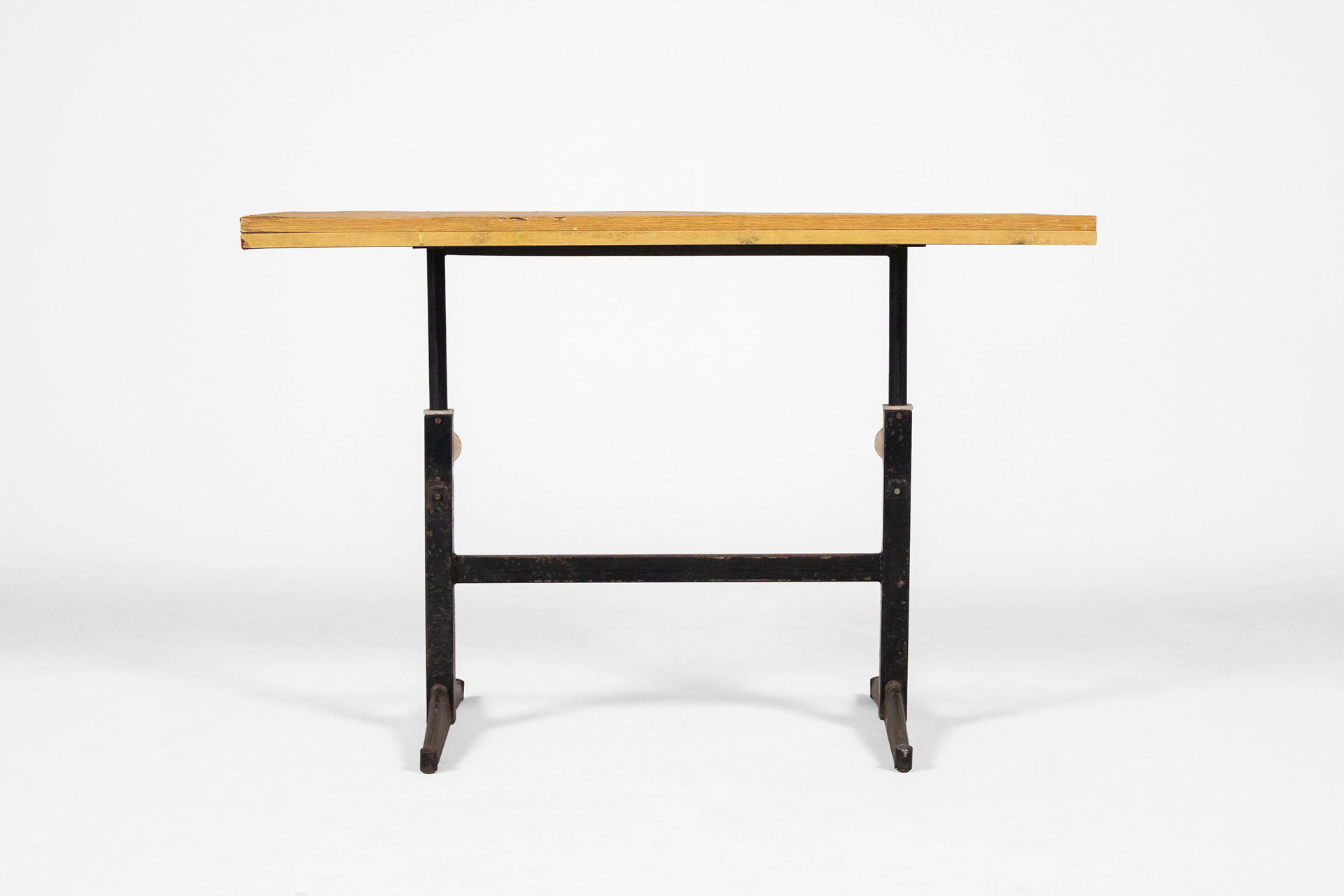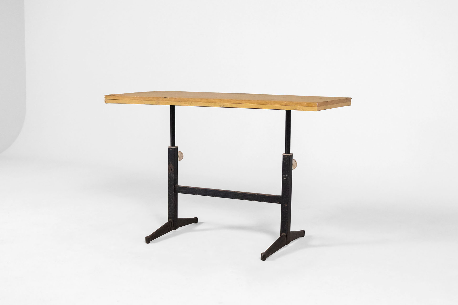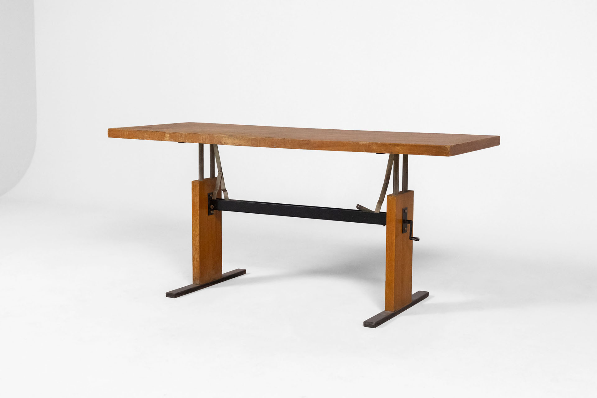 Állítható magasságú funkcionális íróasztal természetes fa asztallappal és fém lábakkal