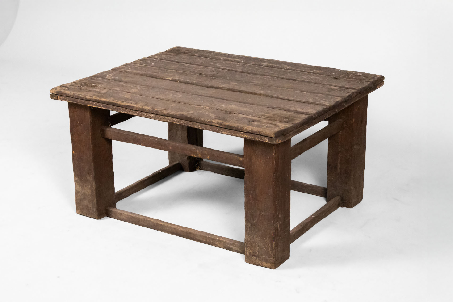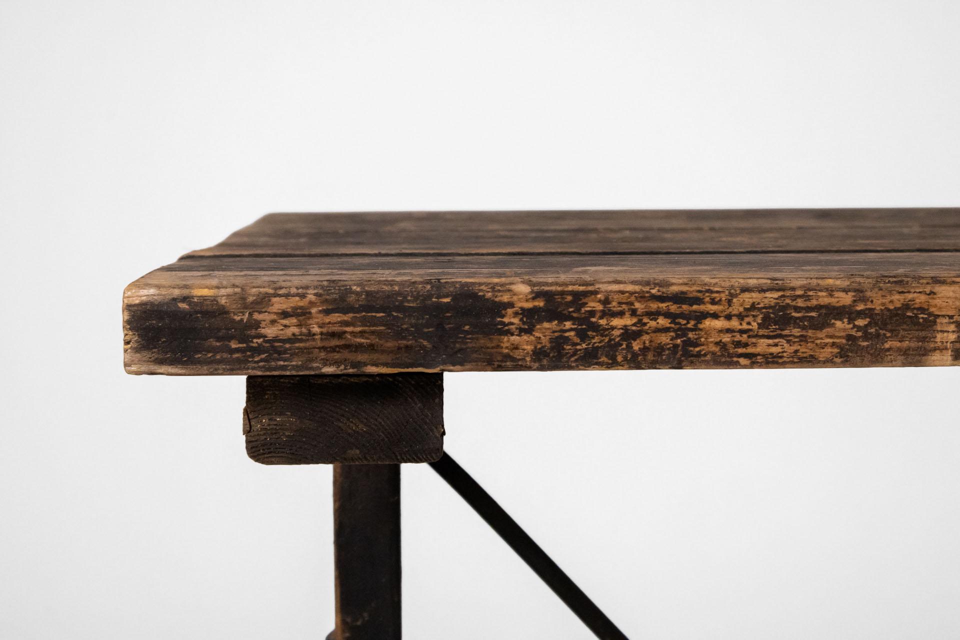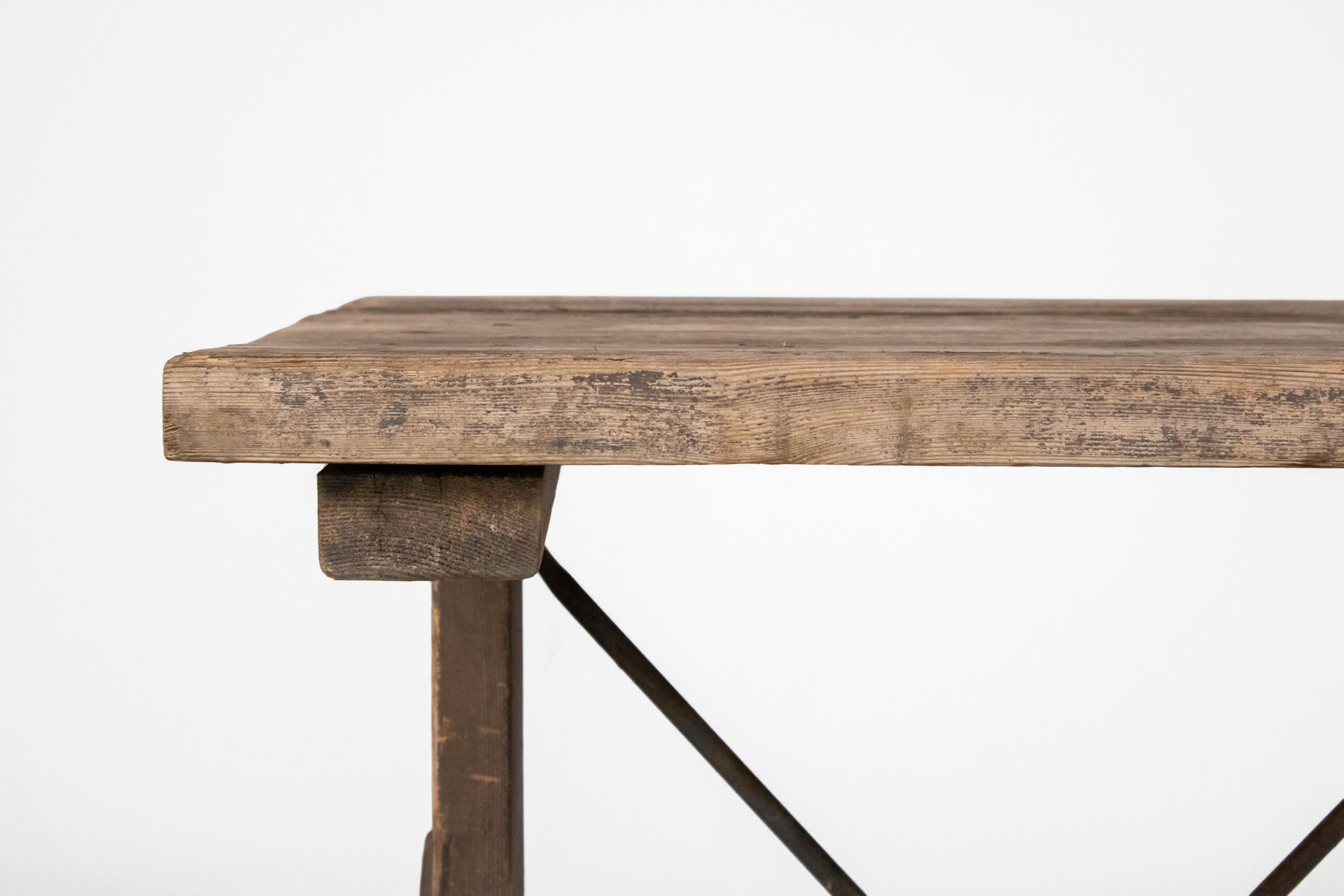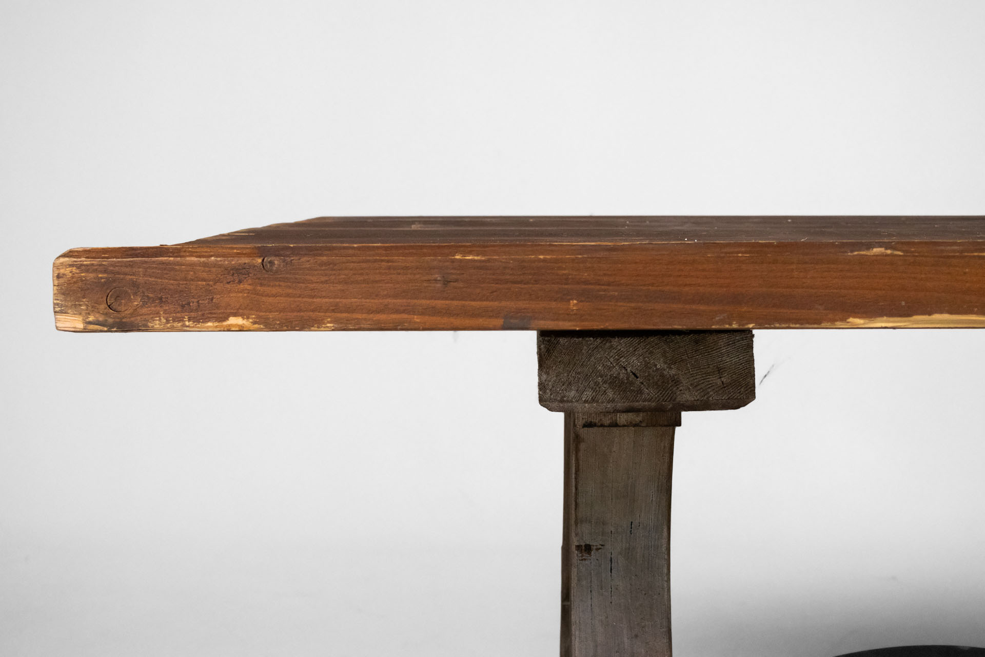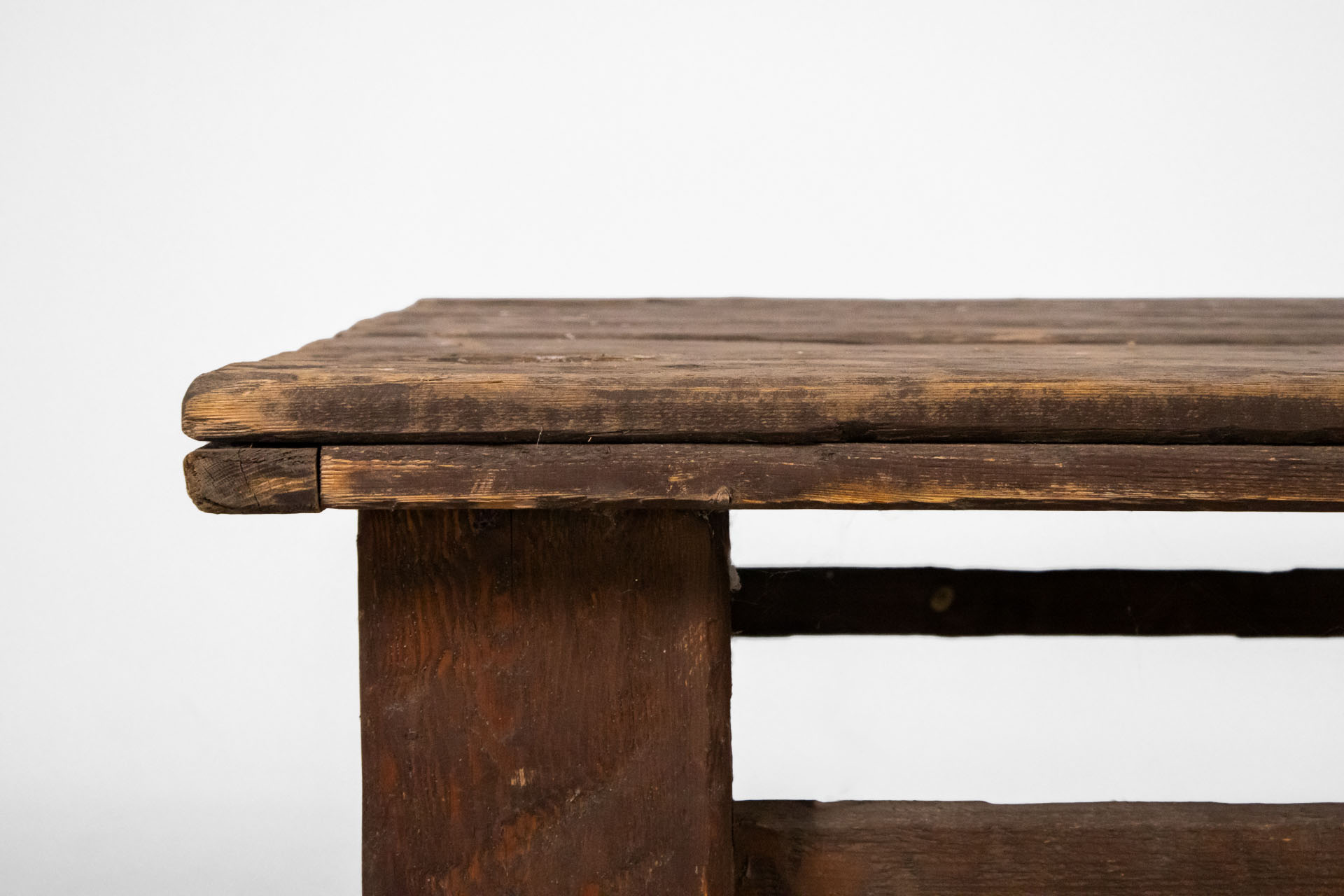 Rusztikus fa asztal merevített lábakkal és kopott felülettel
