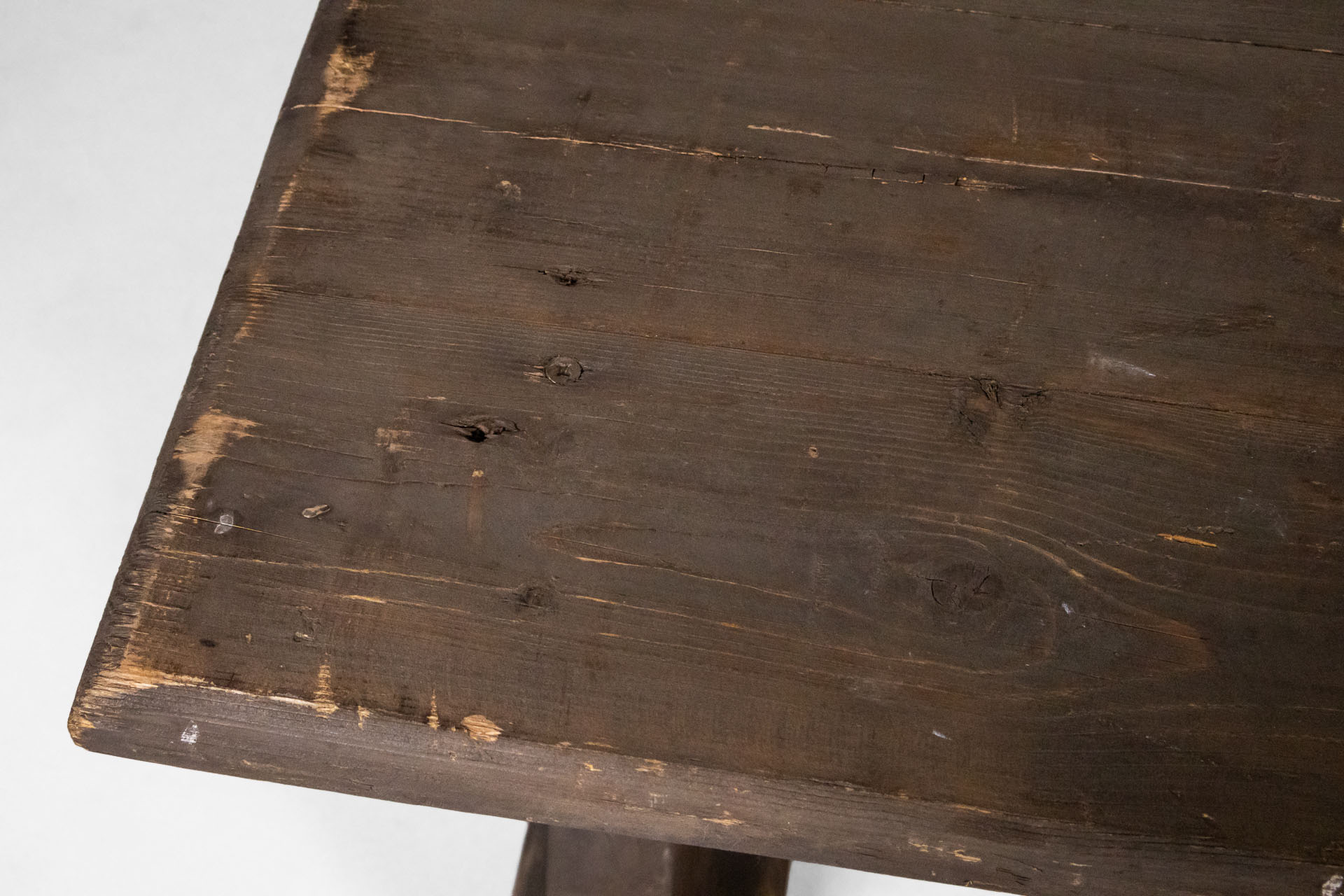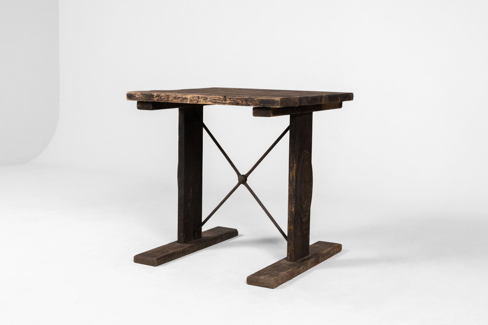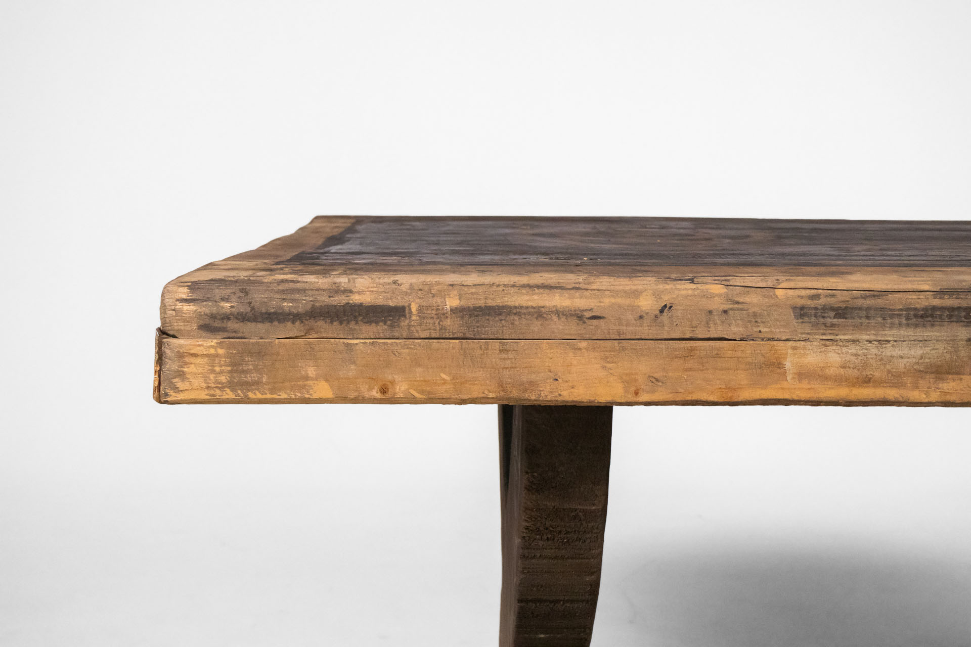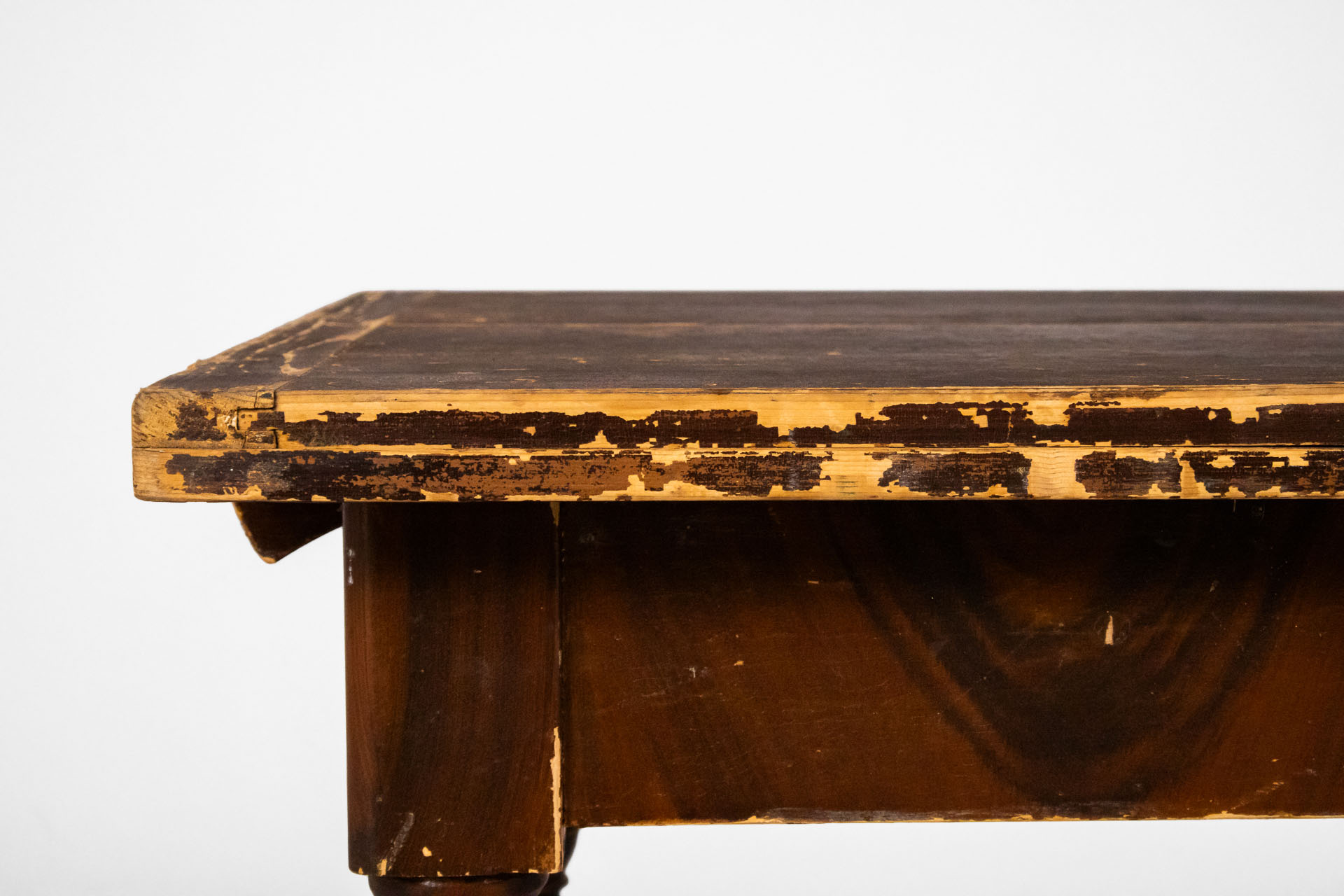 Rusztikus fa asztal merevített lábakkal és kopott felülettel