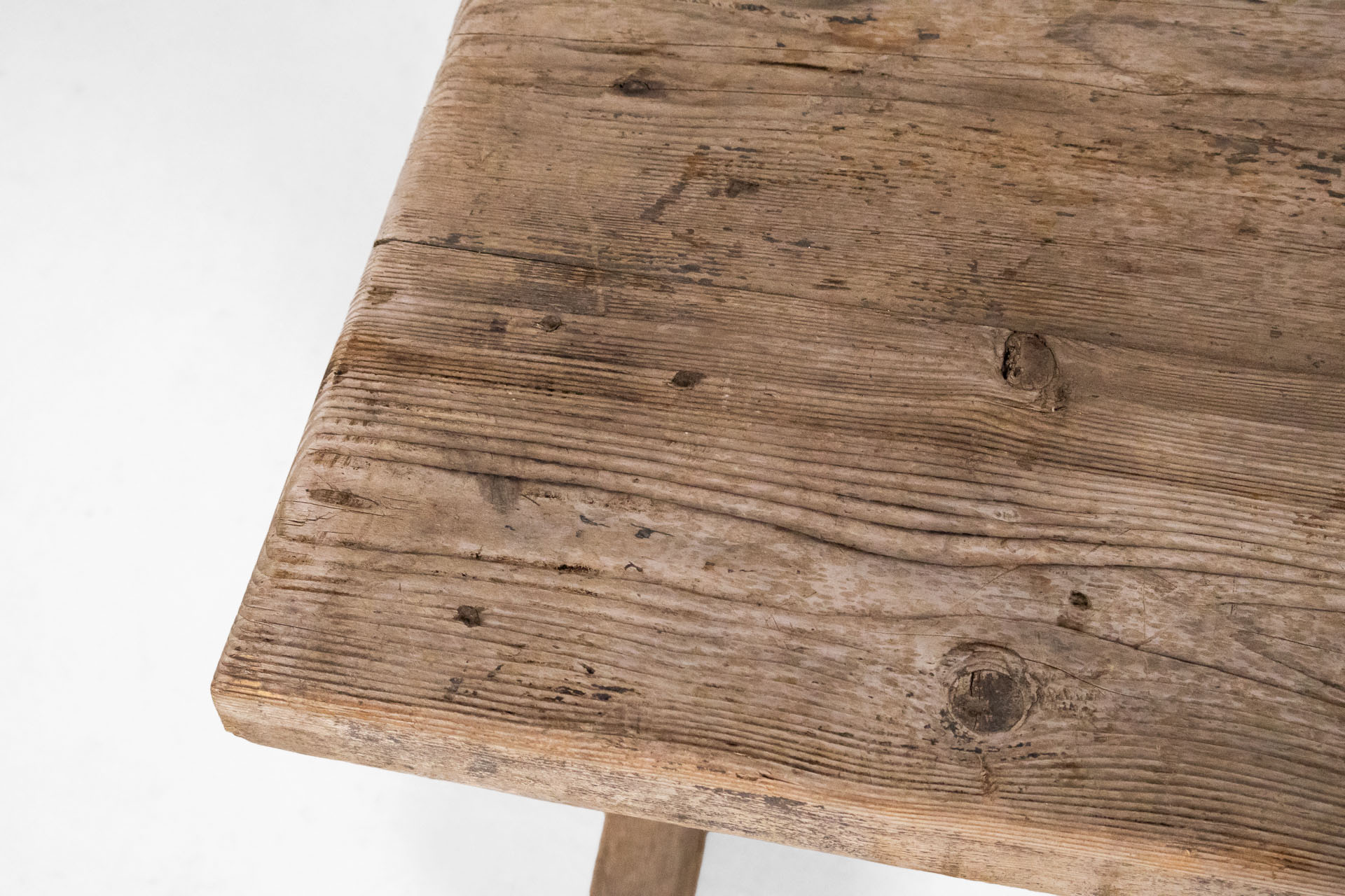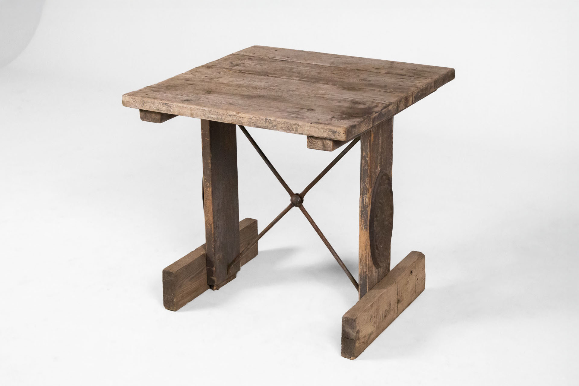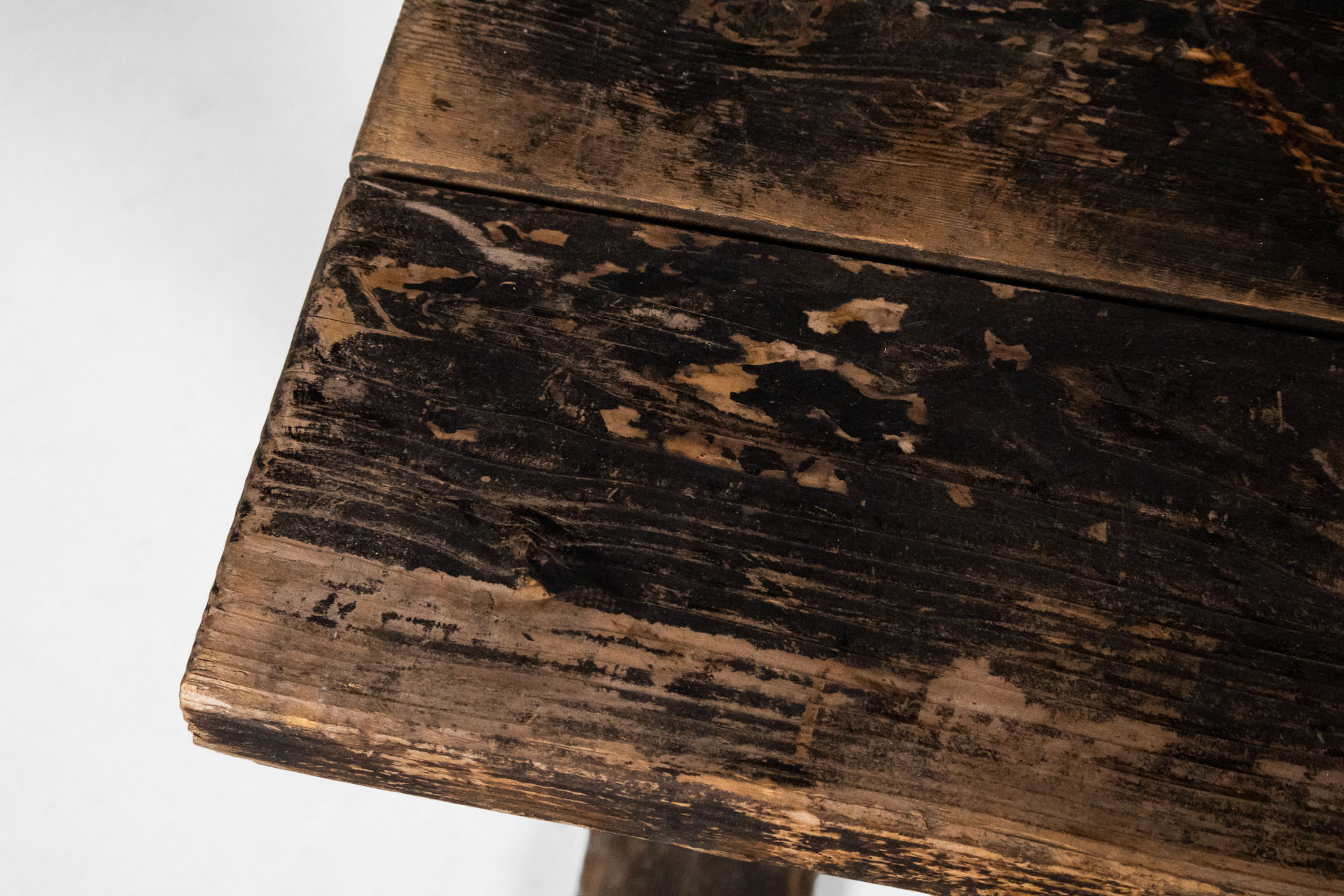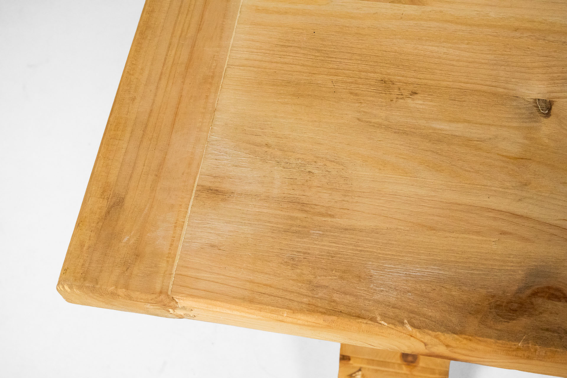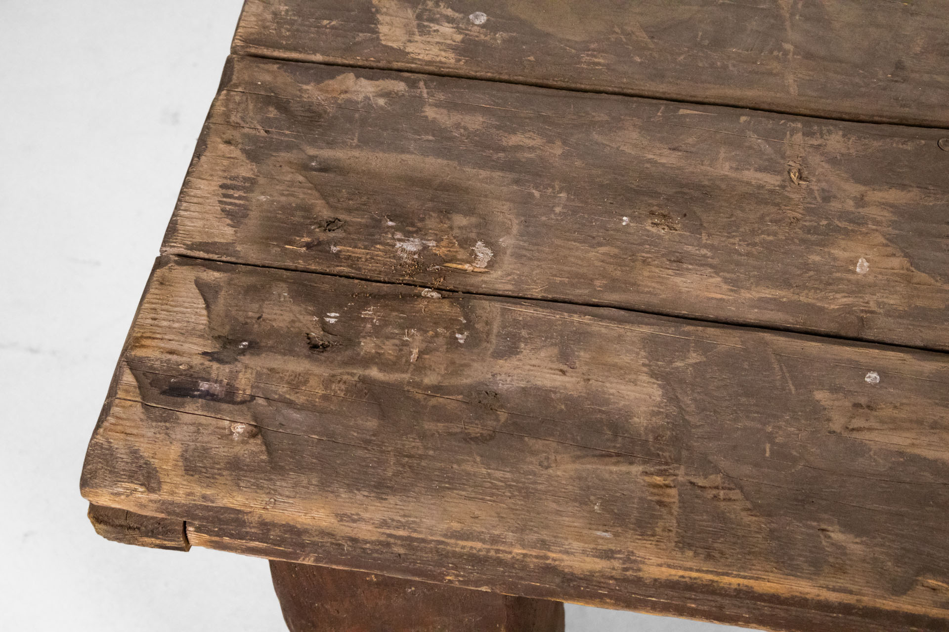 Rusztikus fa asztal merevített lábakkal és kopott felülettel