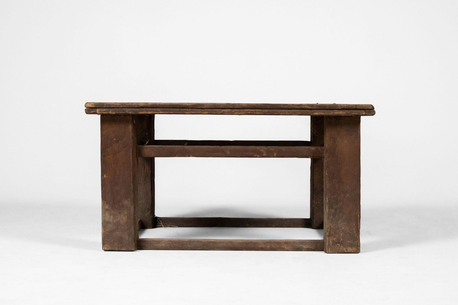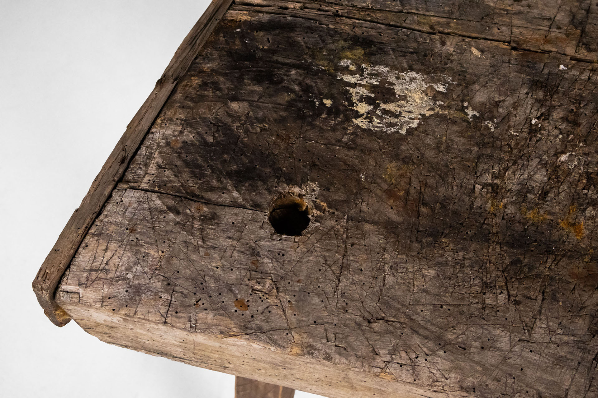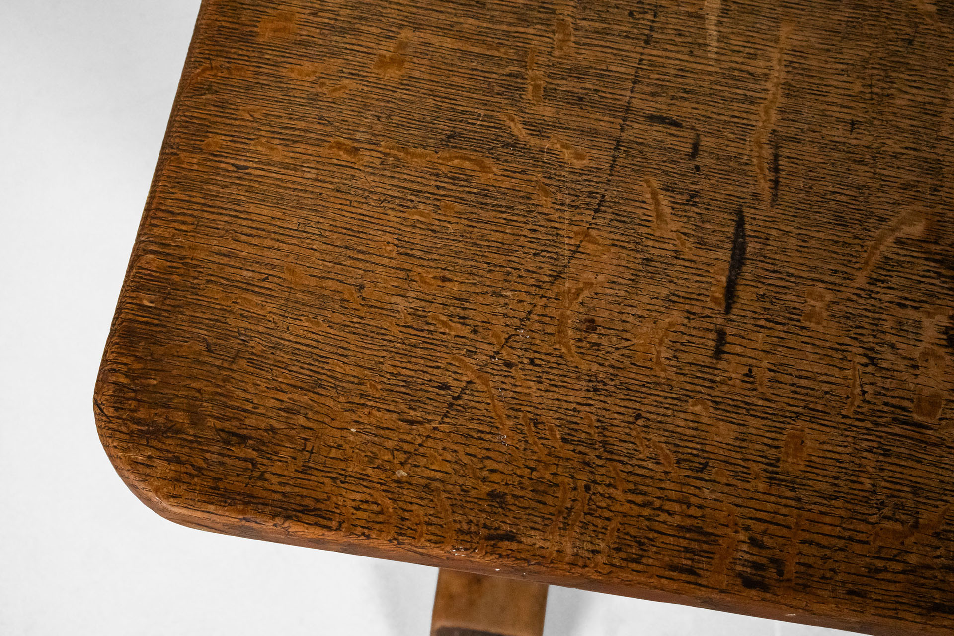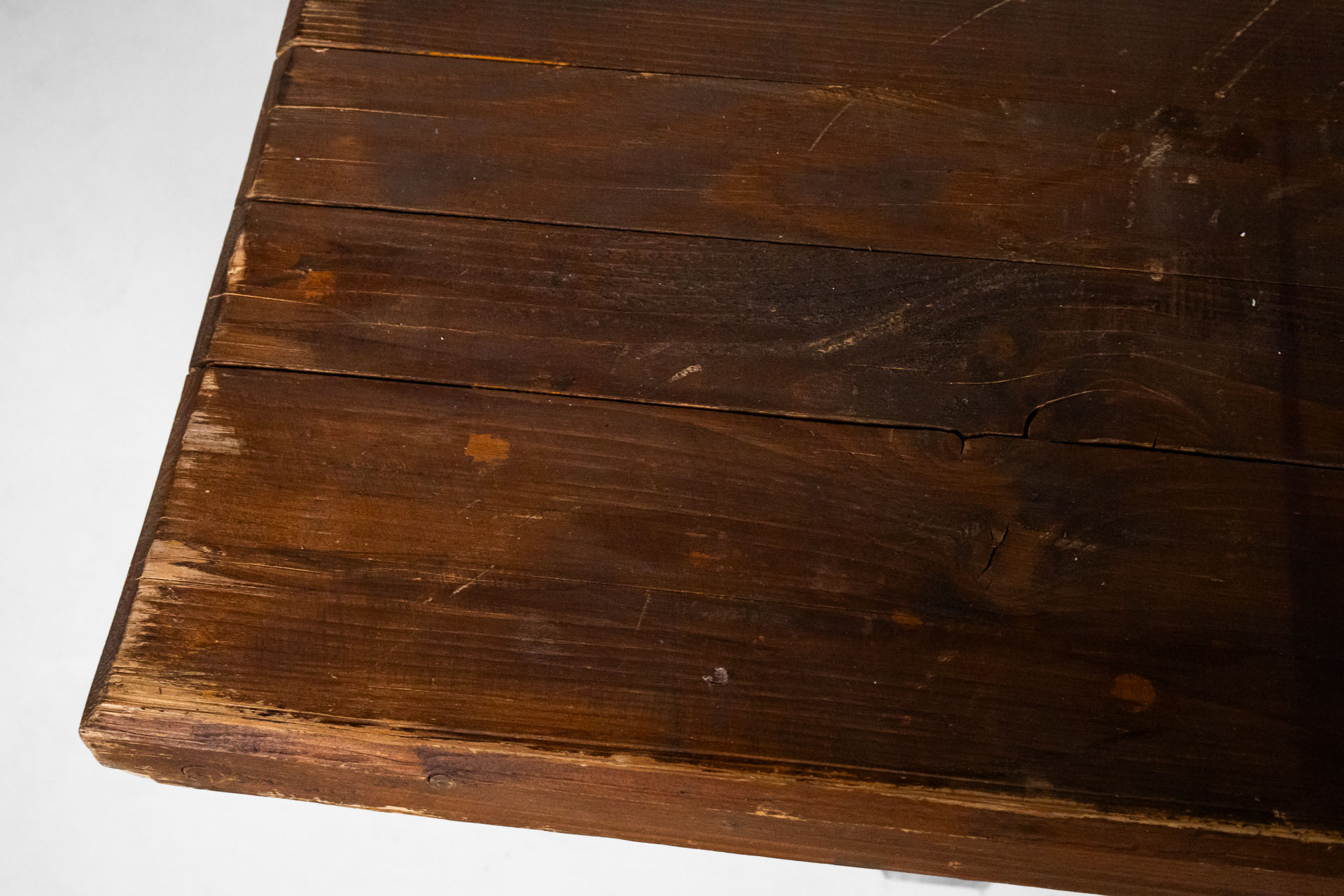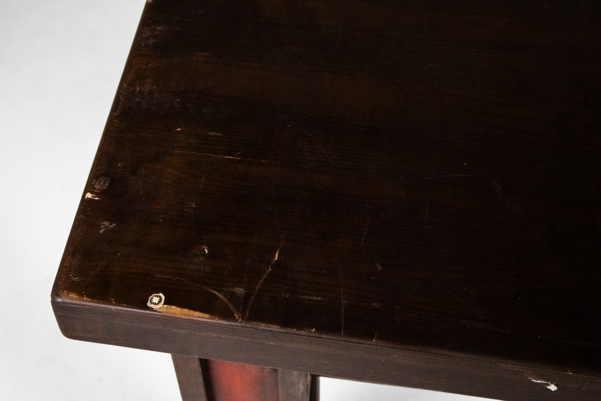Rusztikus fa asztal merevített lábakkal és kopott felülettel