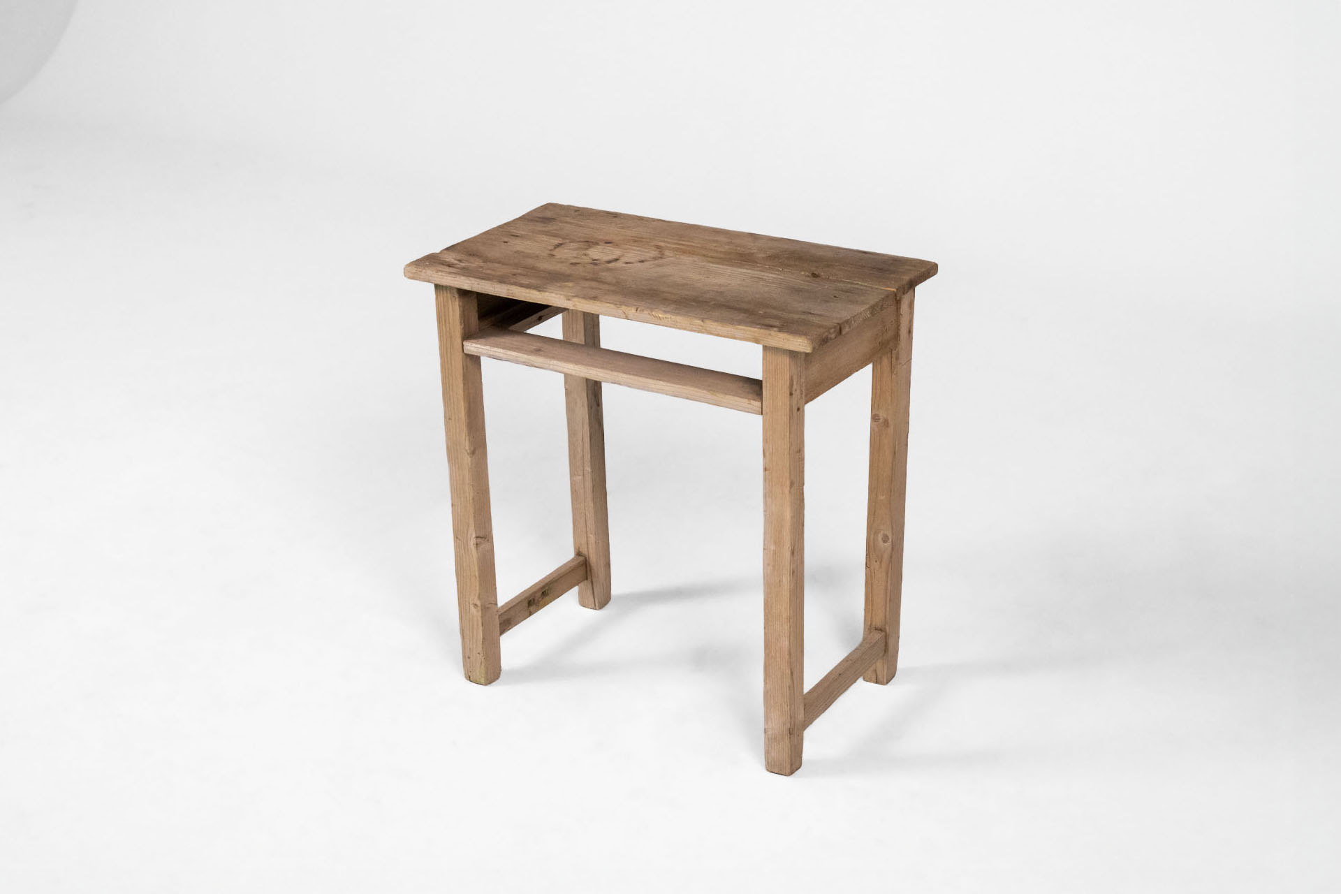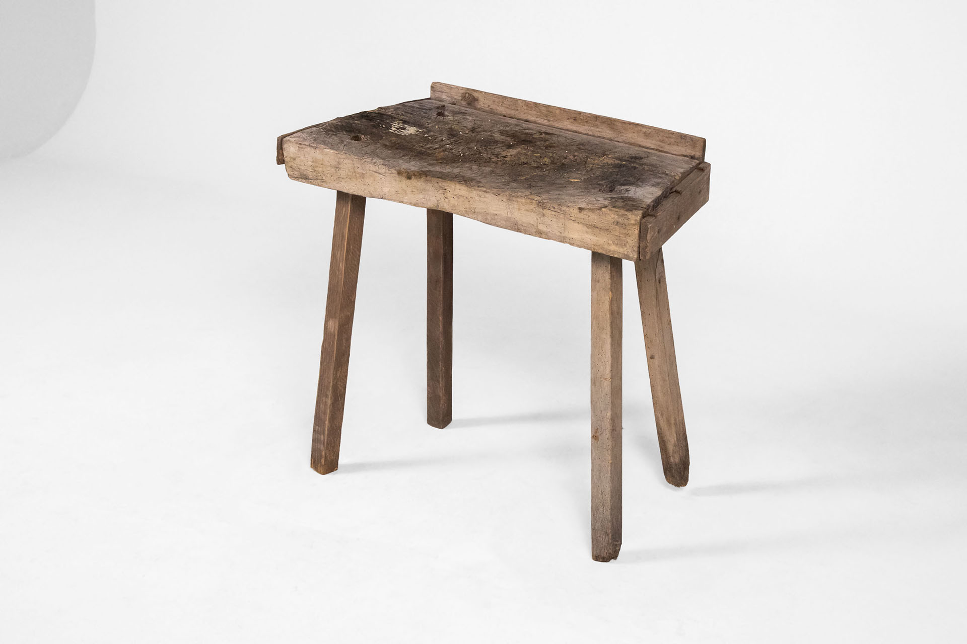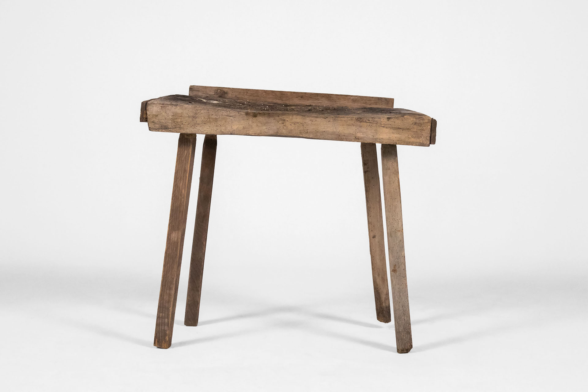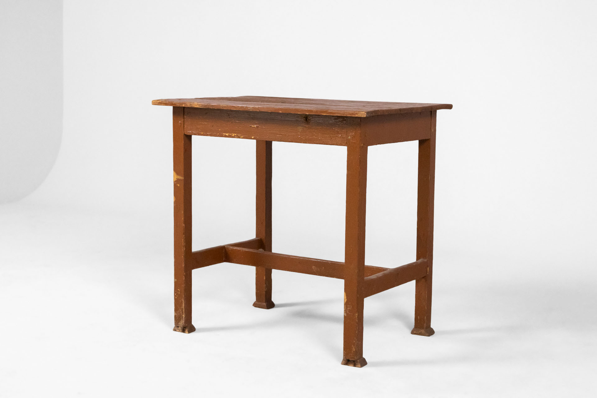 Rusztikus fa asztal merevített lábakkal és kopott felülettel