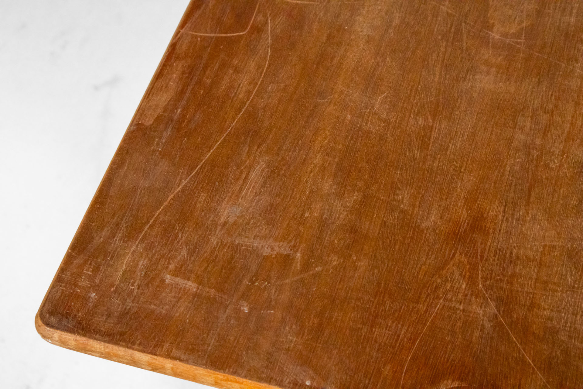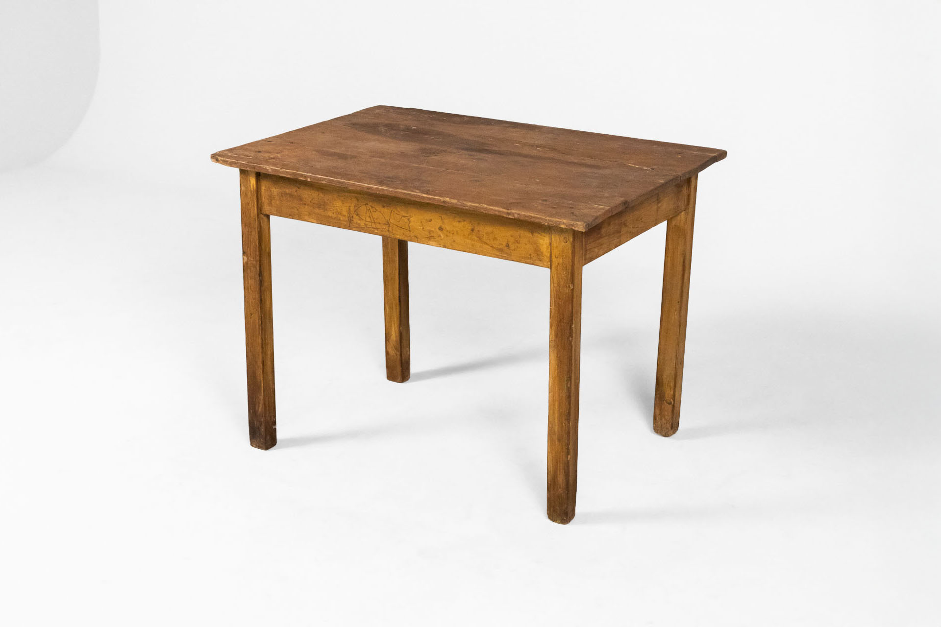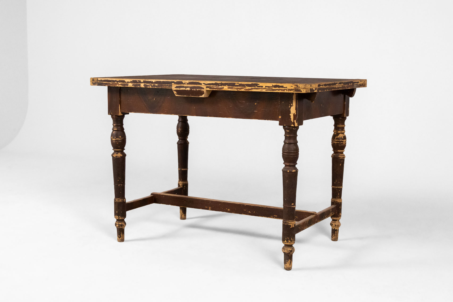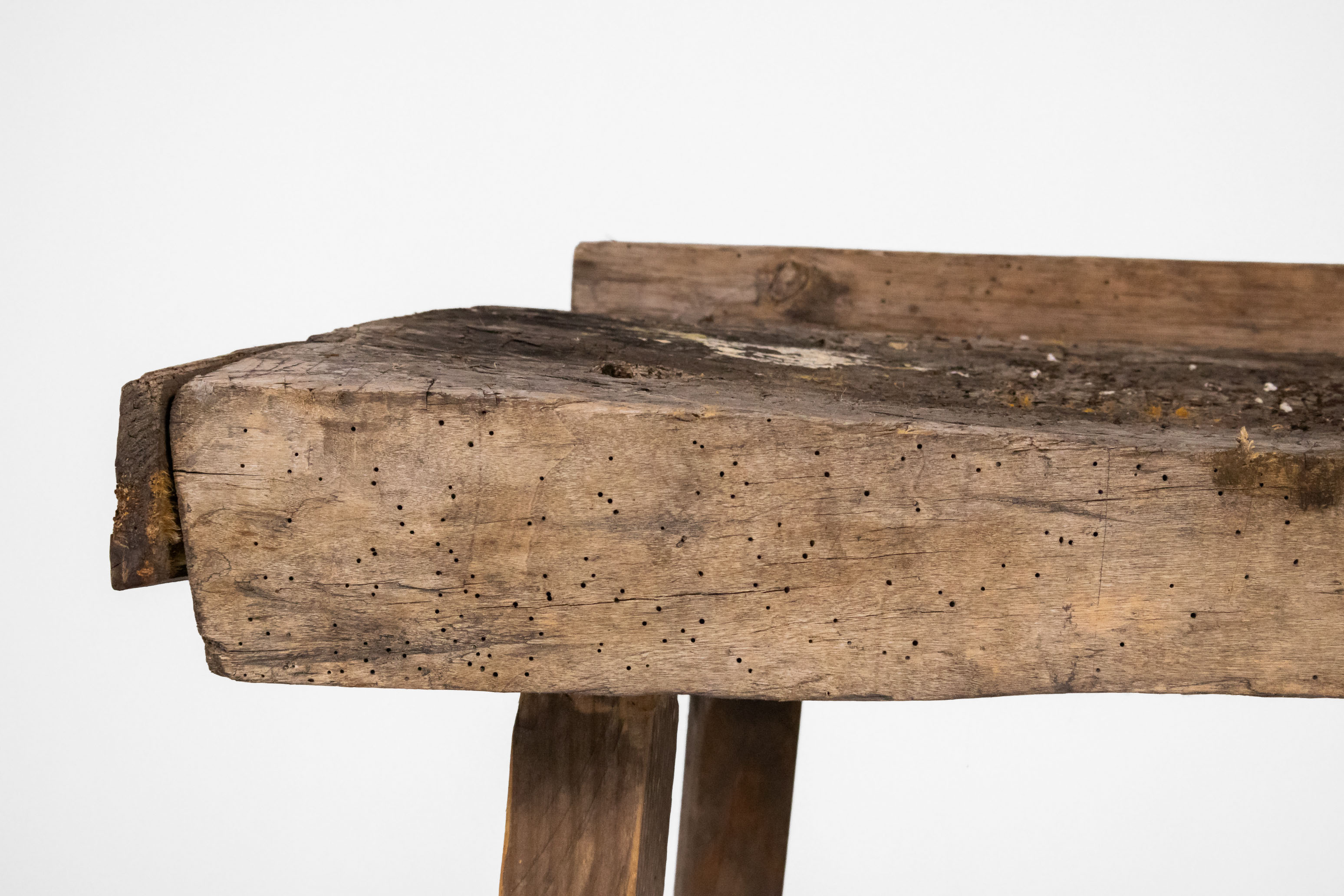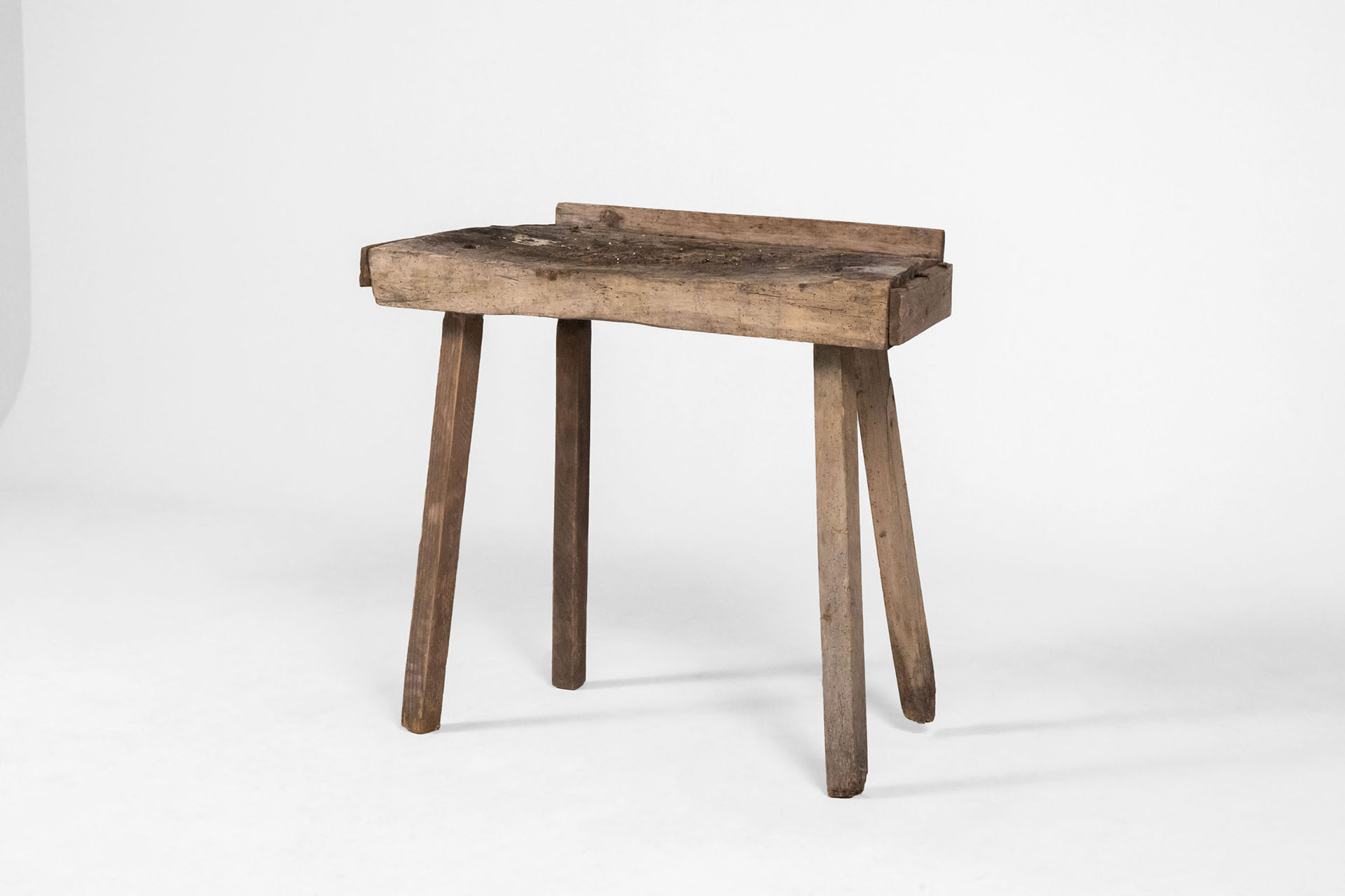 Rusztikus fa asztal merevített lábakkal és kopott felülettel