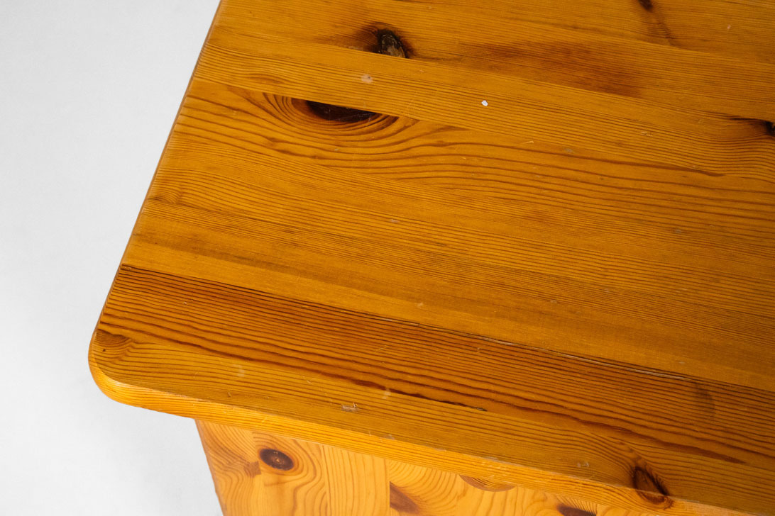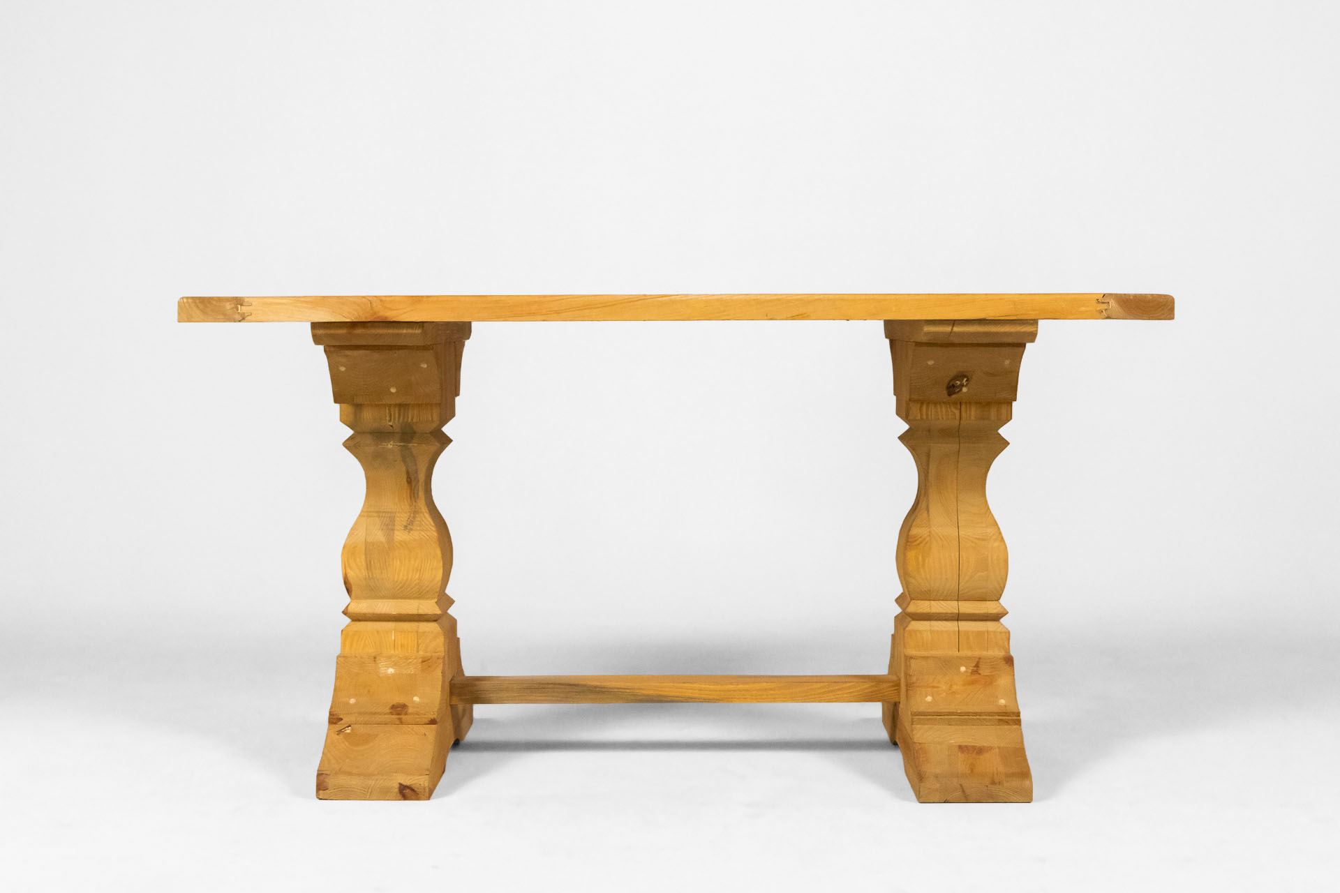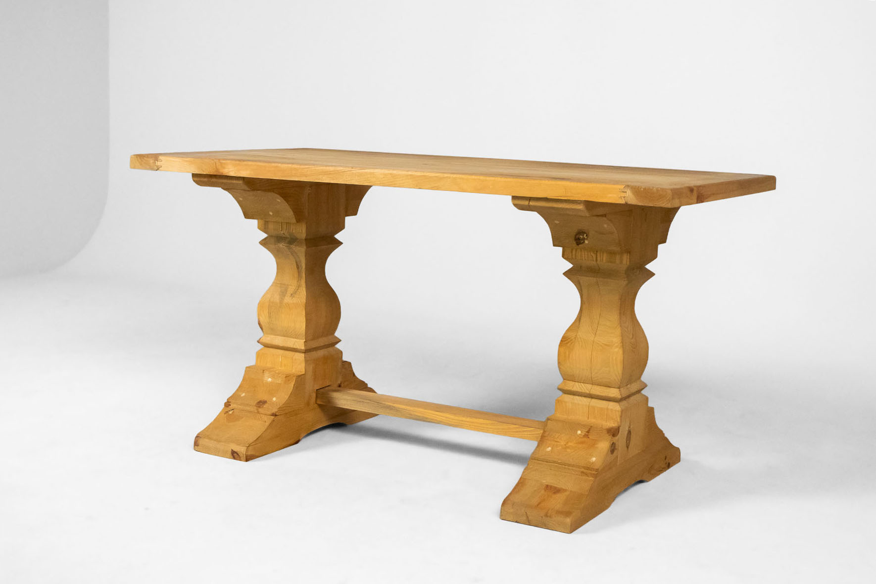 Masszív természetes fa étkezőasztal faragott lábazattal