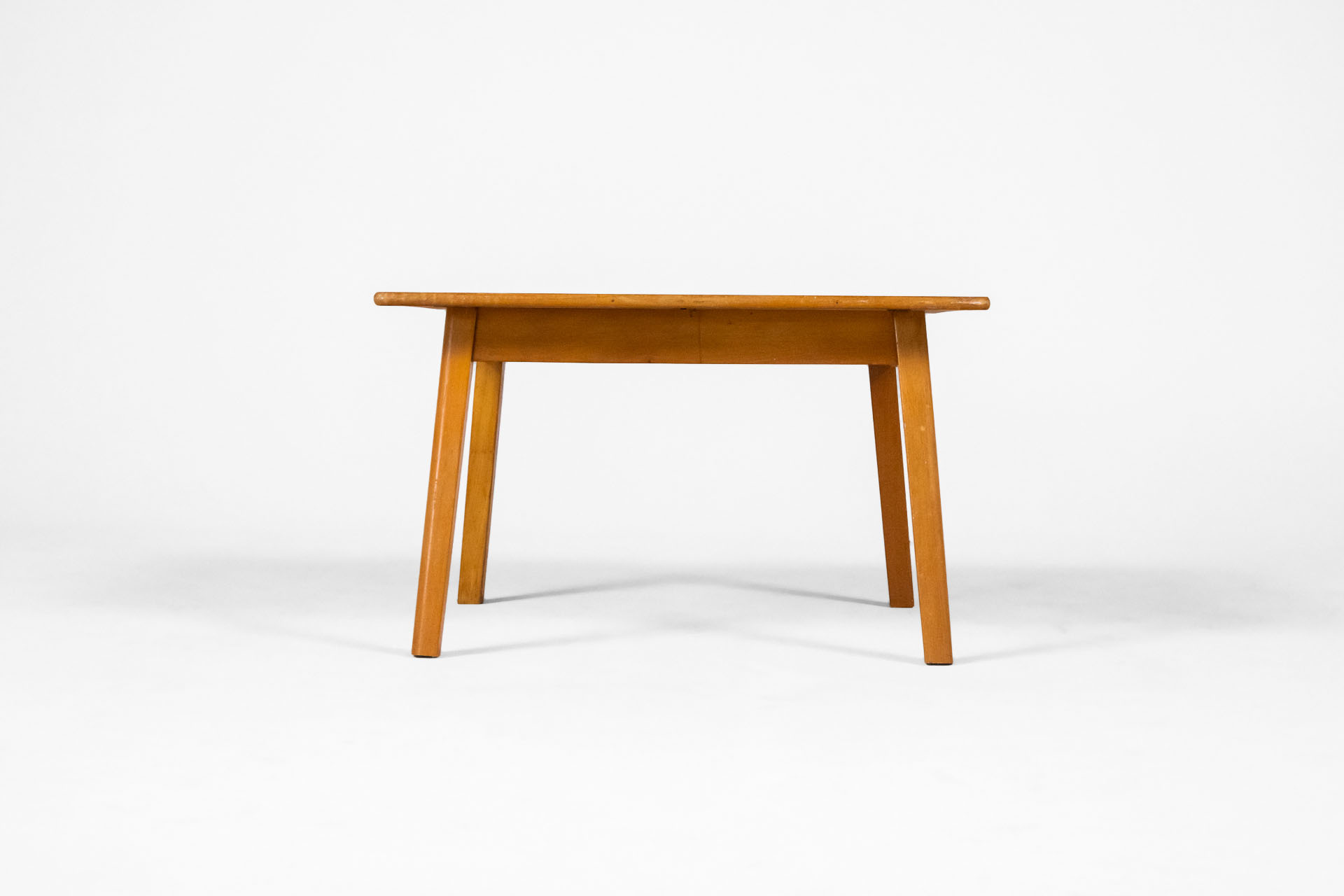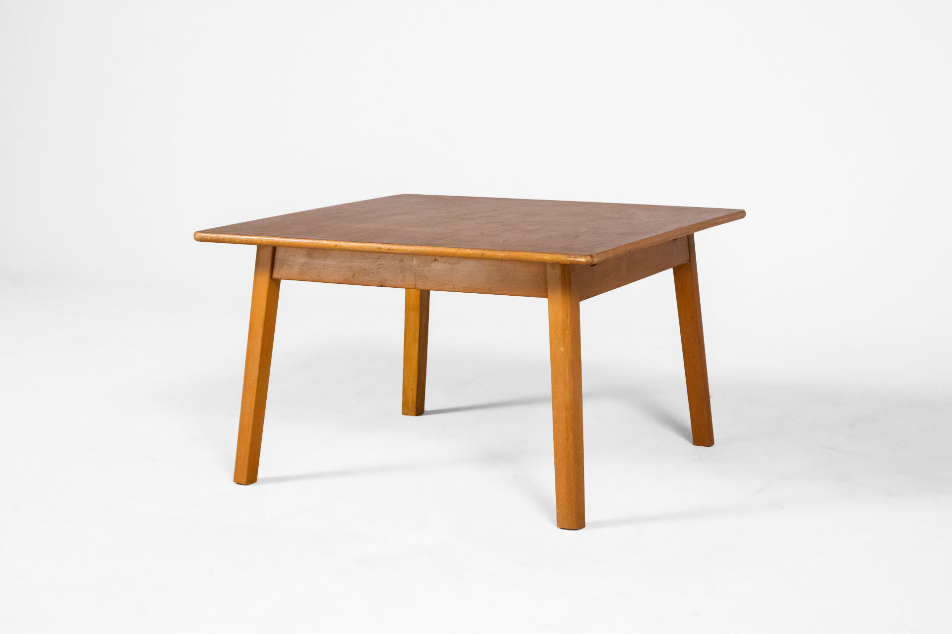 Minimalista stílusú, négyzet alakú dohányzóasztal, világosbarna színben, egyszerű vonalakkal és letisztult formával. A stabil lábazat és a masszív asztallap biztosítja a tartósságot és a funkcionalitást