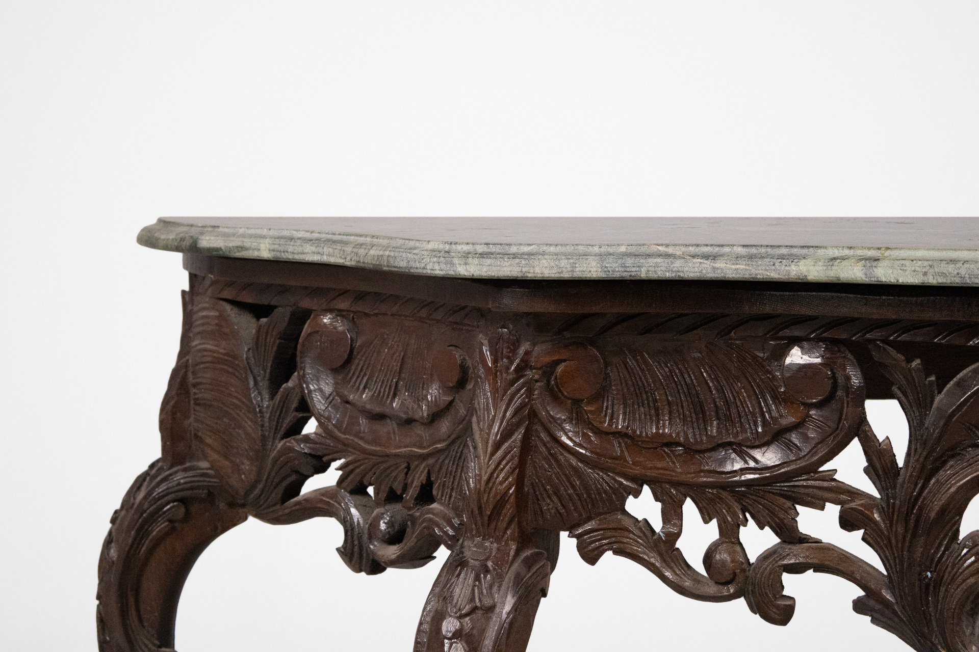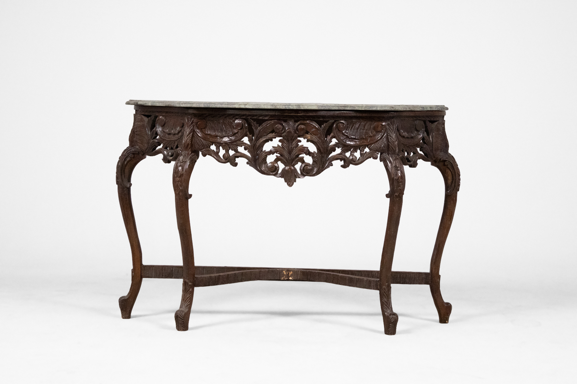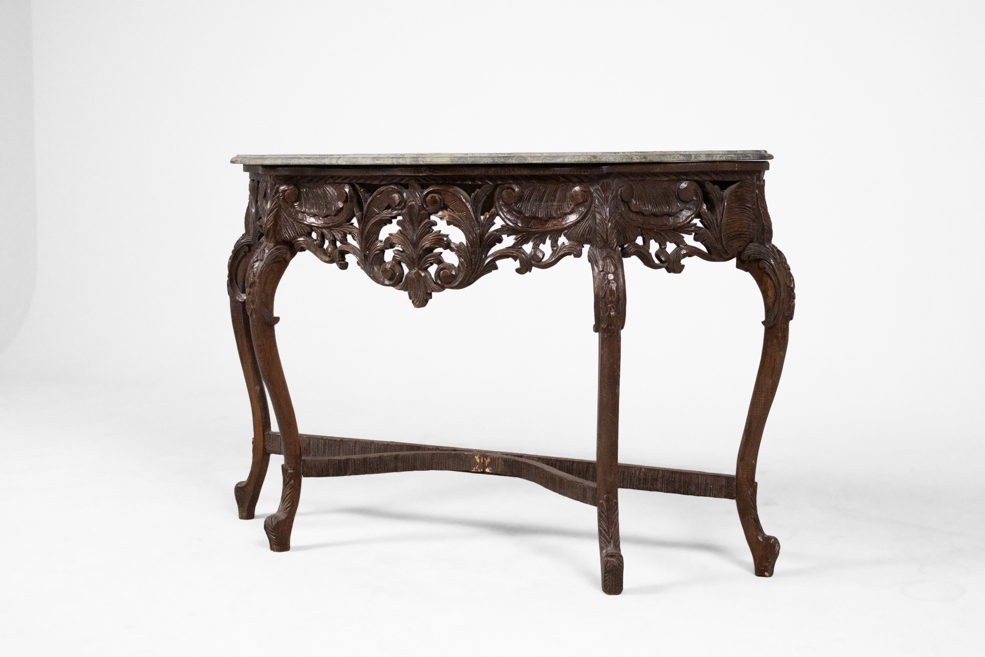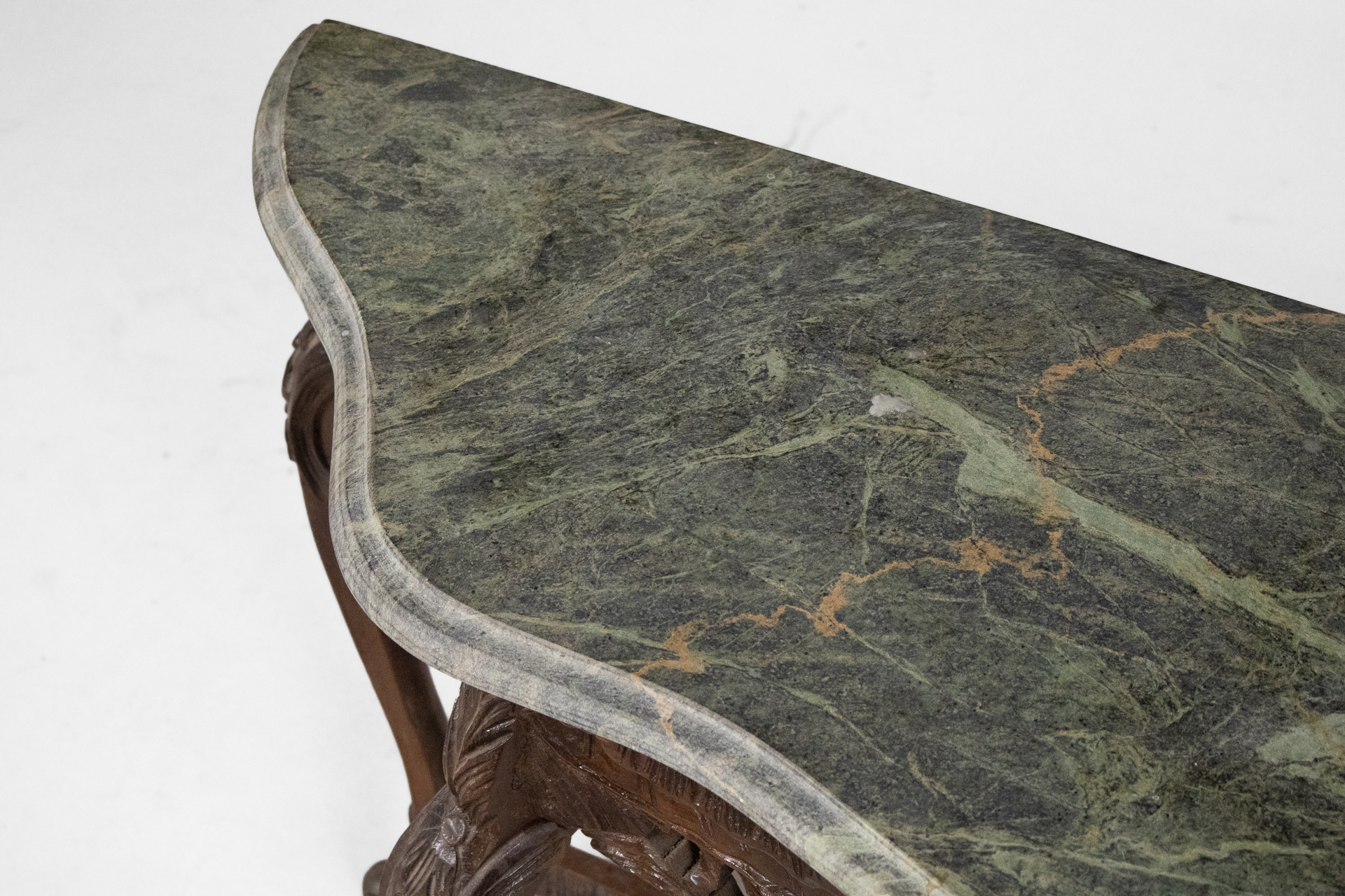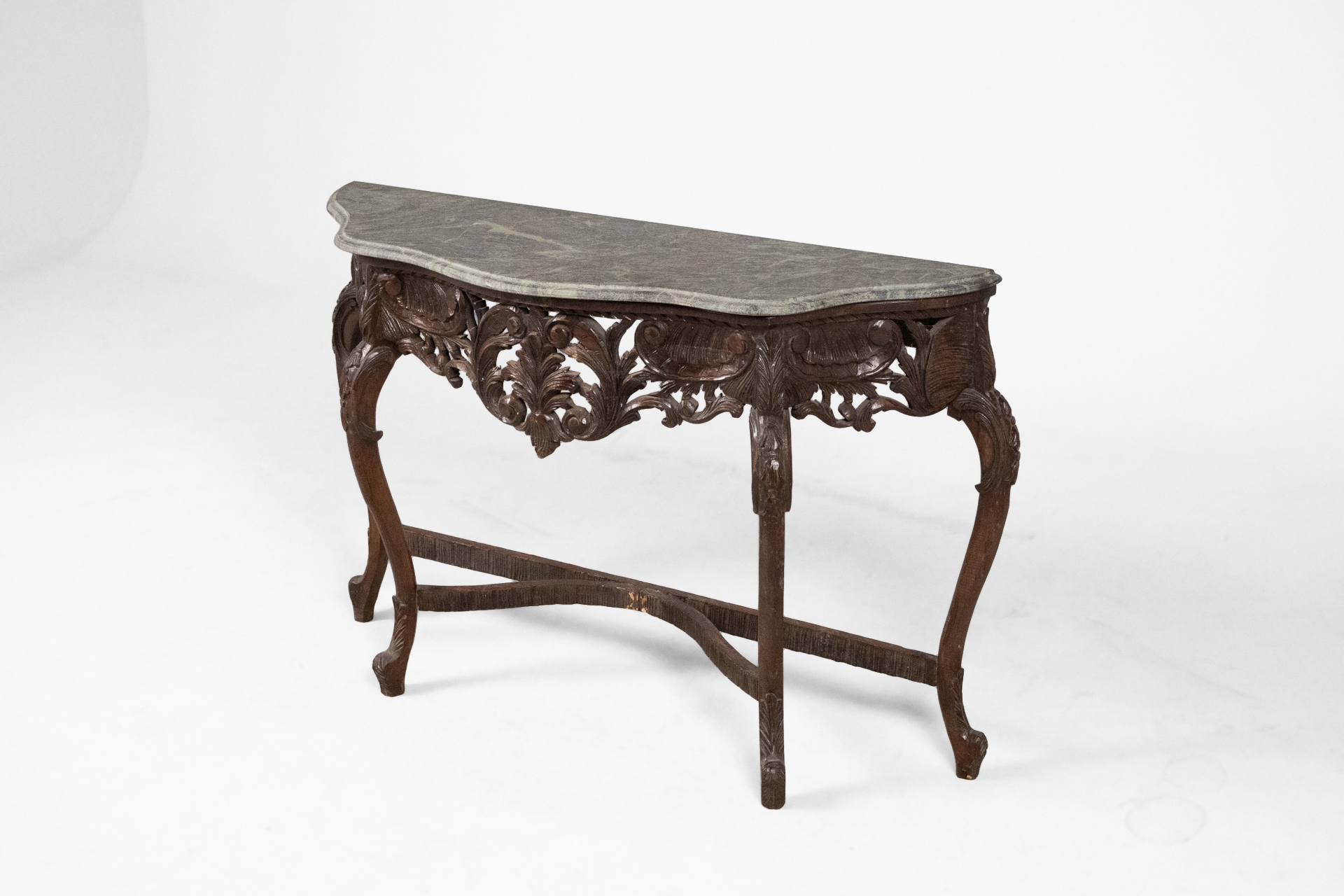 Díszített barokk konzolasztal 002 — 568 Fából készült antik konzolasztal sötétbarna színben elegáns barokk stílusban Méret: 130.0×43.0×89.0 Mennyiség: Összesen 1 db • Elérhető 1 db ♡ 🛒 Kosárba 📄 Adatlap