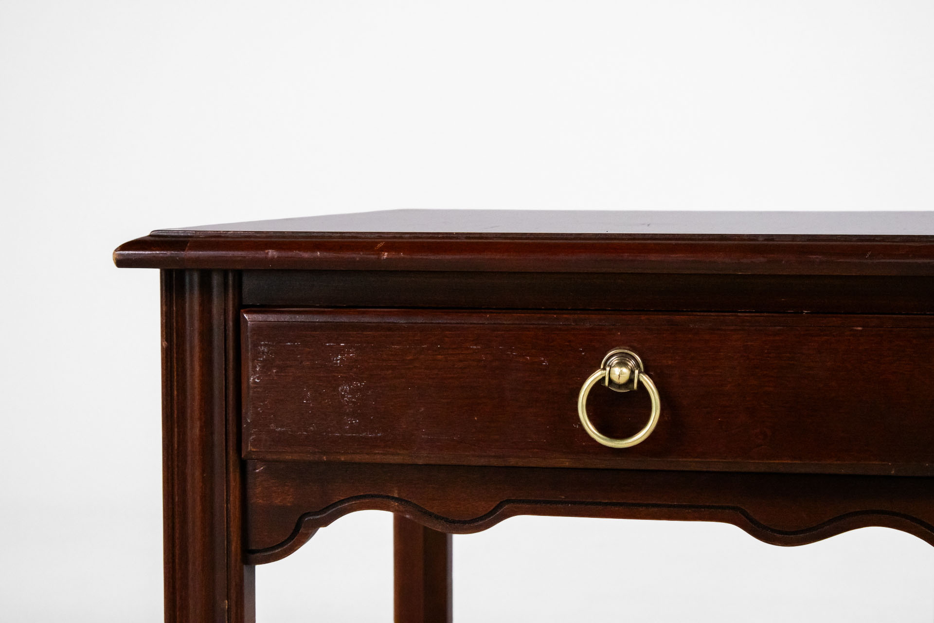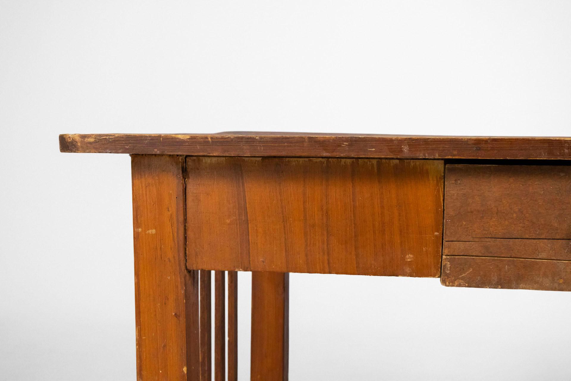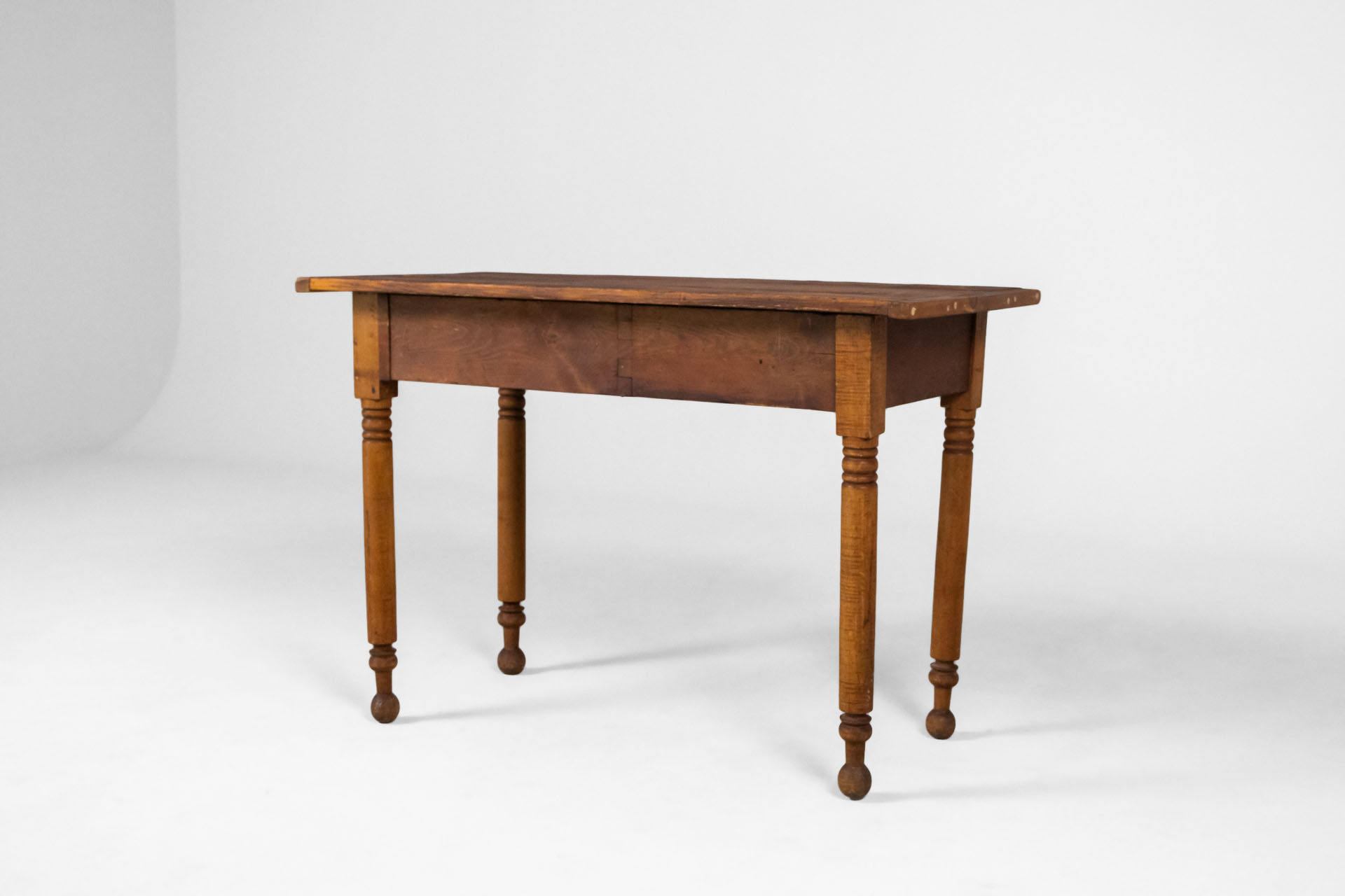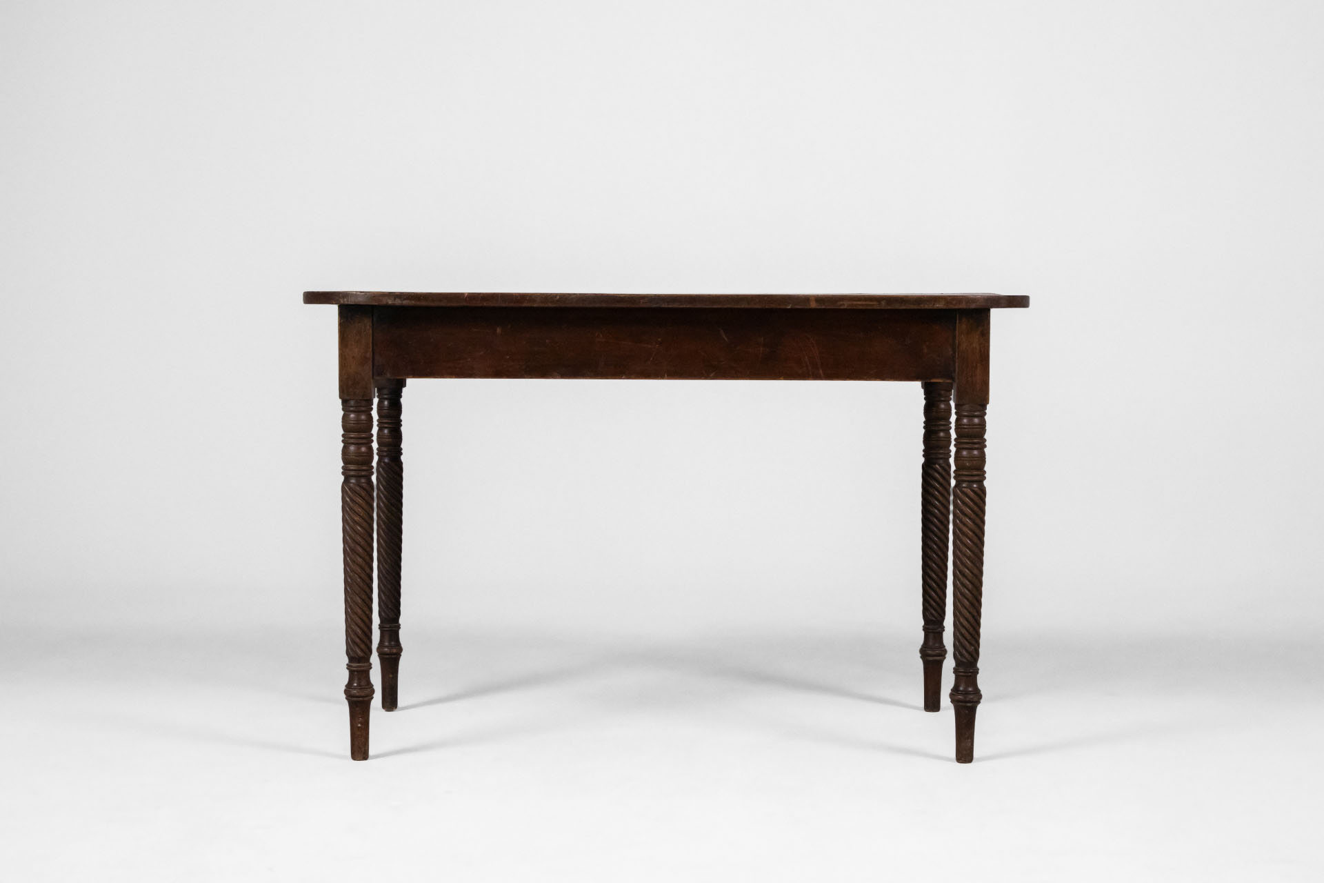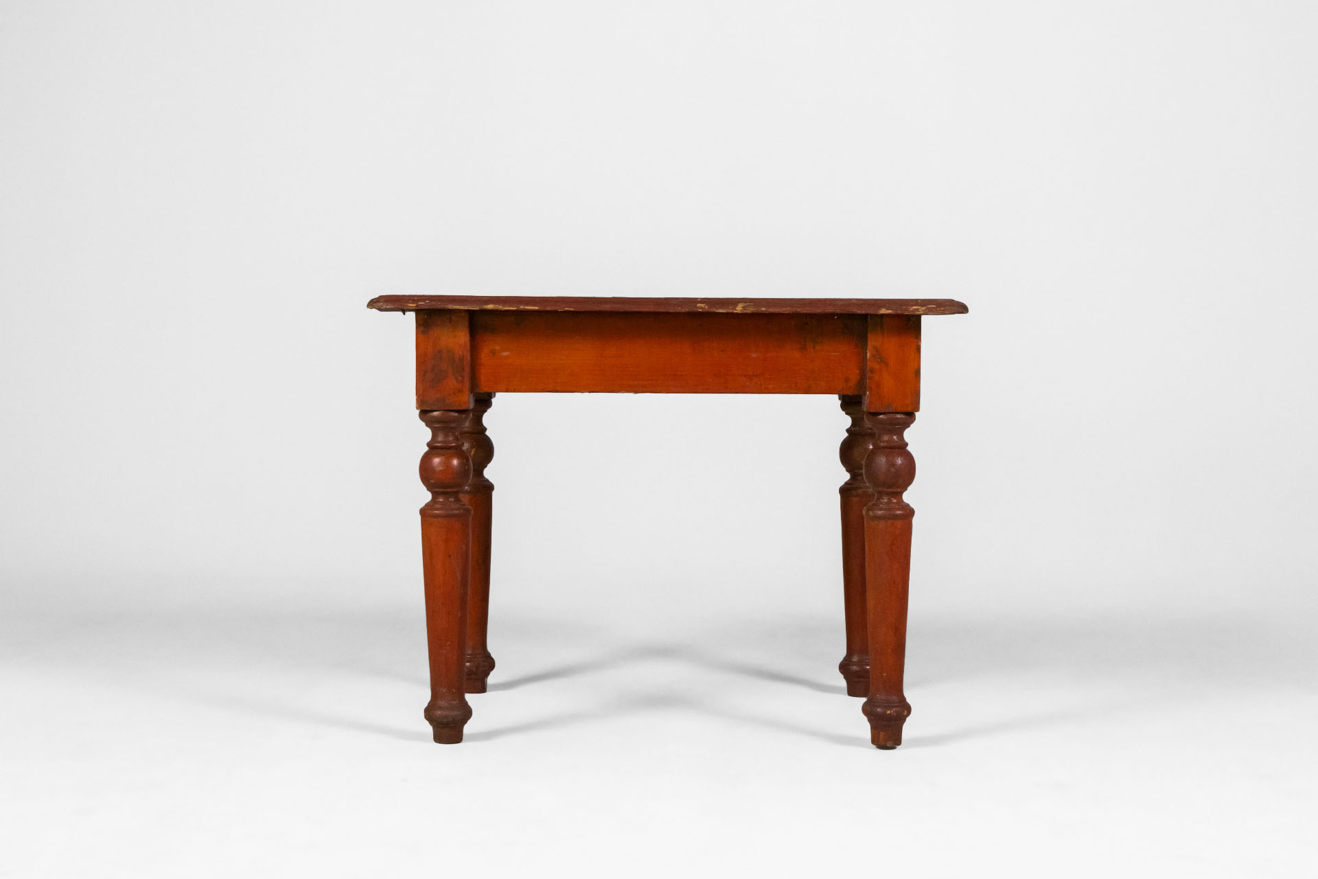 Klasszikus, antik stílusú fiókos asztal, amely elegáns ívelt lábakkal és egyszerű, de karakteres formával rendelkezik. A fiók praktikus tárolási lehetőséget kínál, míg a rusztikus megjelenés időtlen bájt kölcsönöz a térnek
