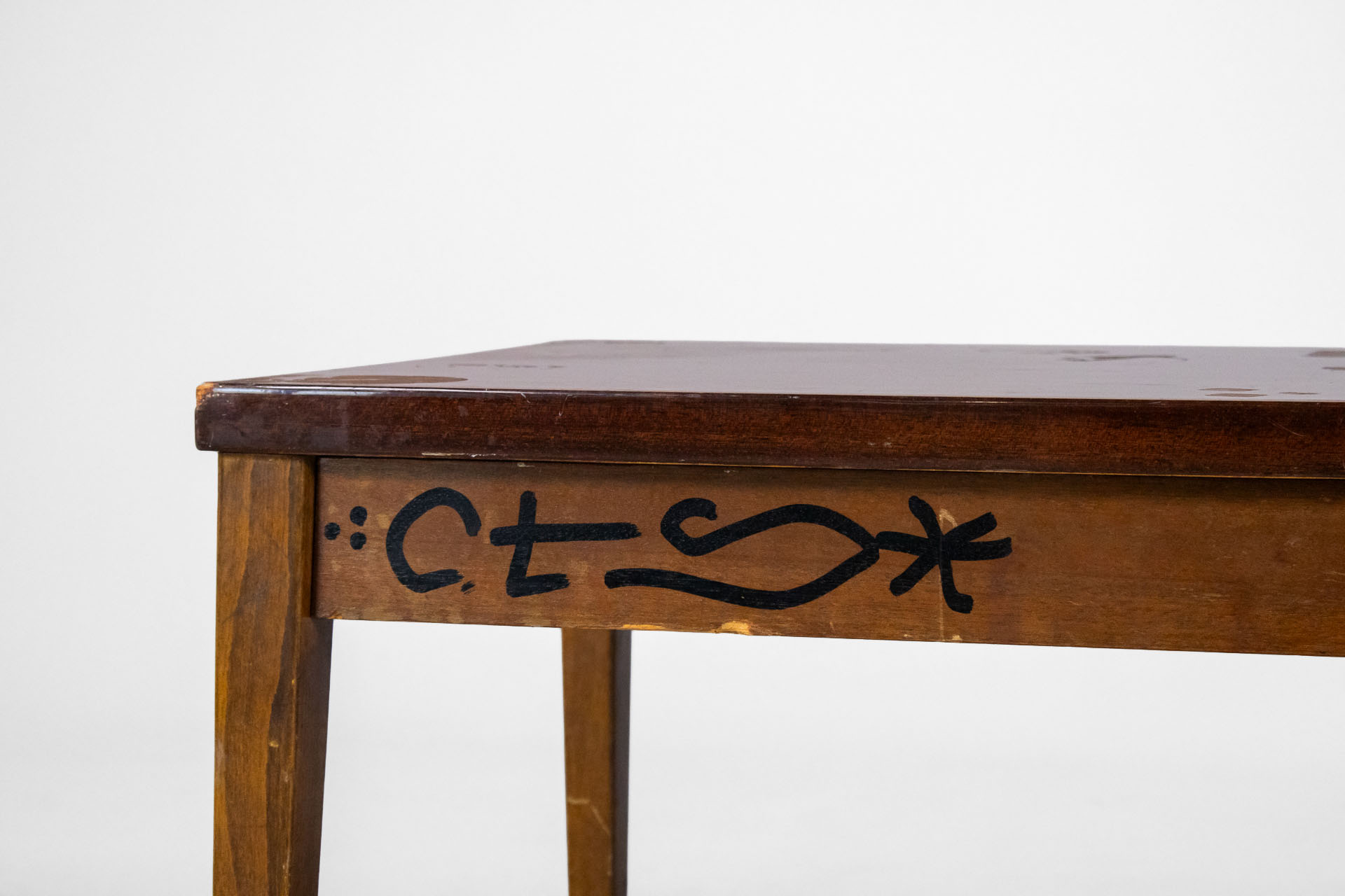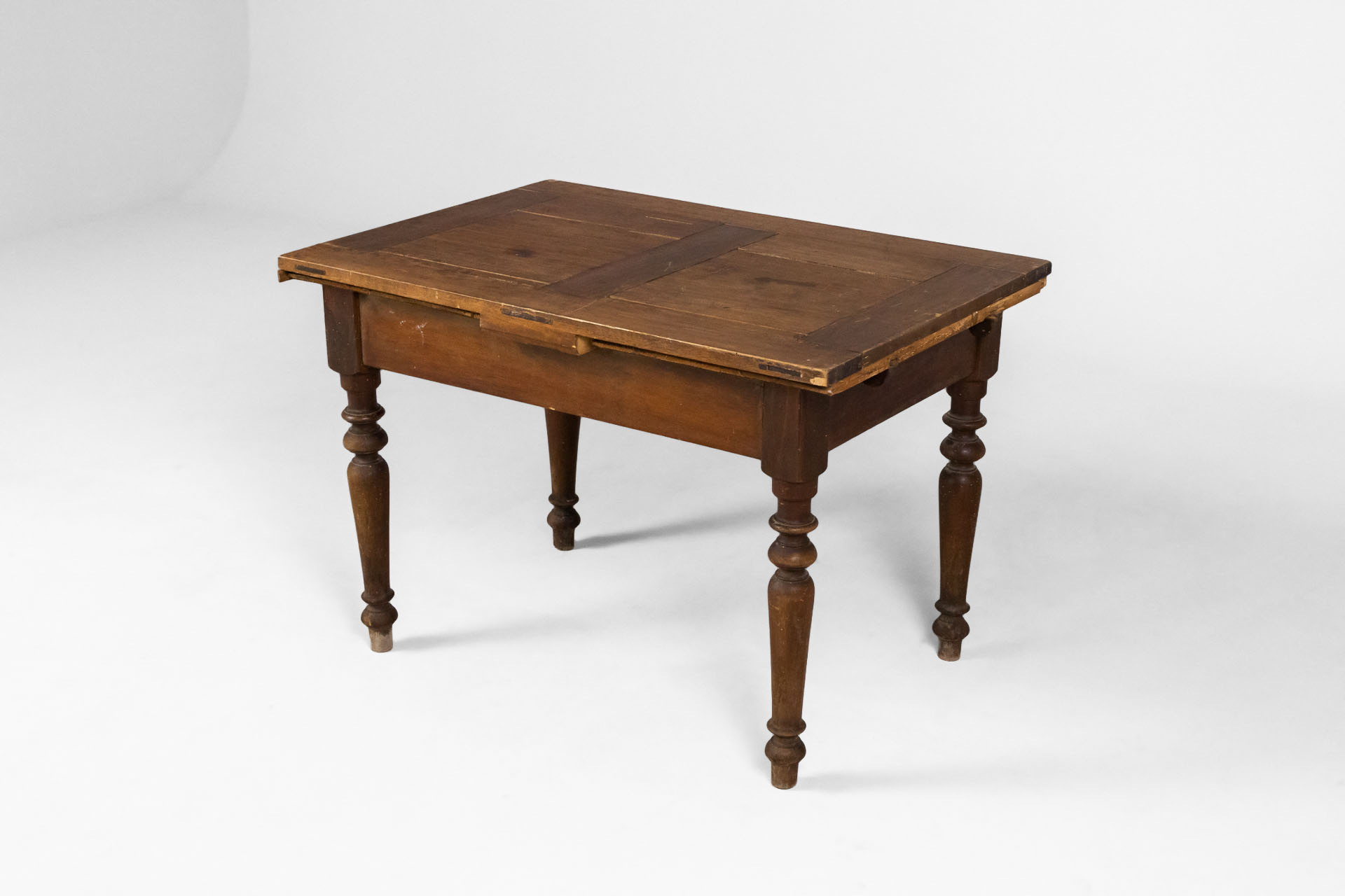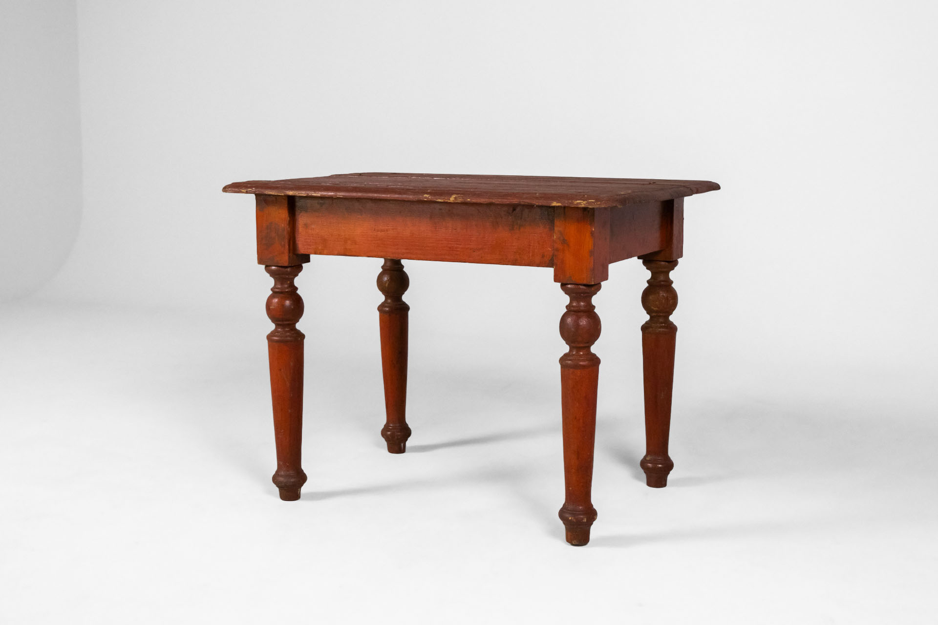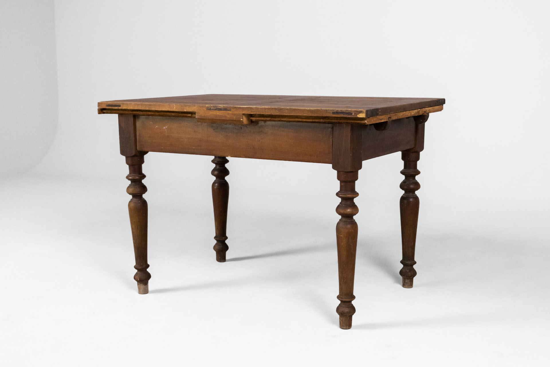 Klasszikus, rusztikus stílusú, négyzet alakú fa asztal, masszív, esztergált lábakkal és egyszerű, de elegáns kialakítással. Az asztallap enyhén kopott, ami időtlen karaktert kölcsönöz neki, ideális választás...