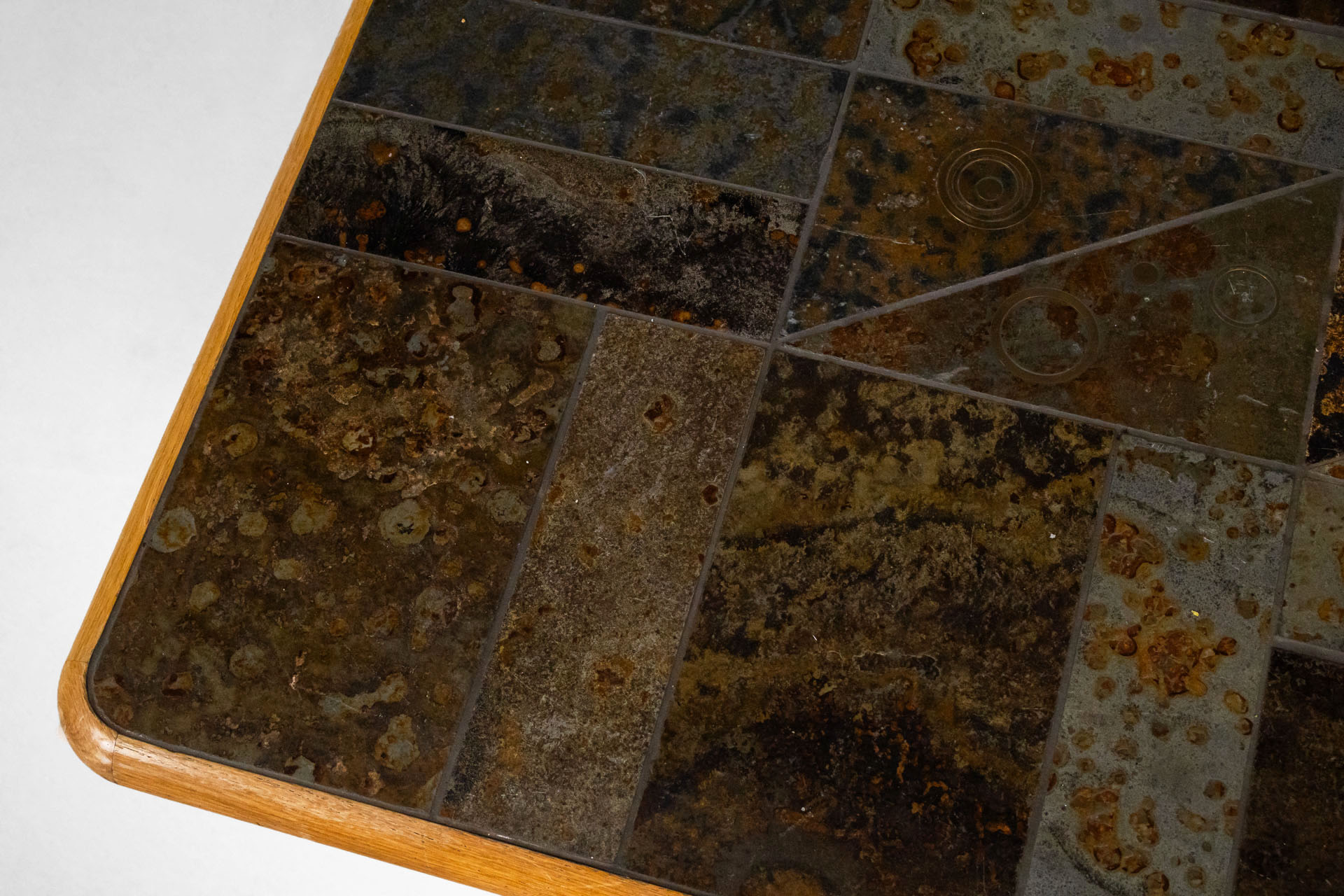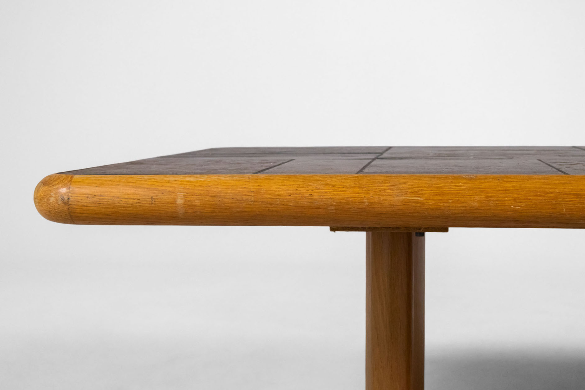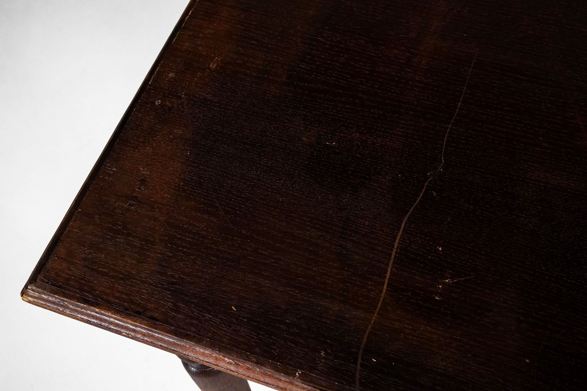 Stílusos, négyzet alakú dohányzóasztal, masszív tölgyfából készült, díszített asztallappal és elegáns ívelt lábakkal, amely modern és klasszikus enteriőrökben egyaránt megállja a helyét