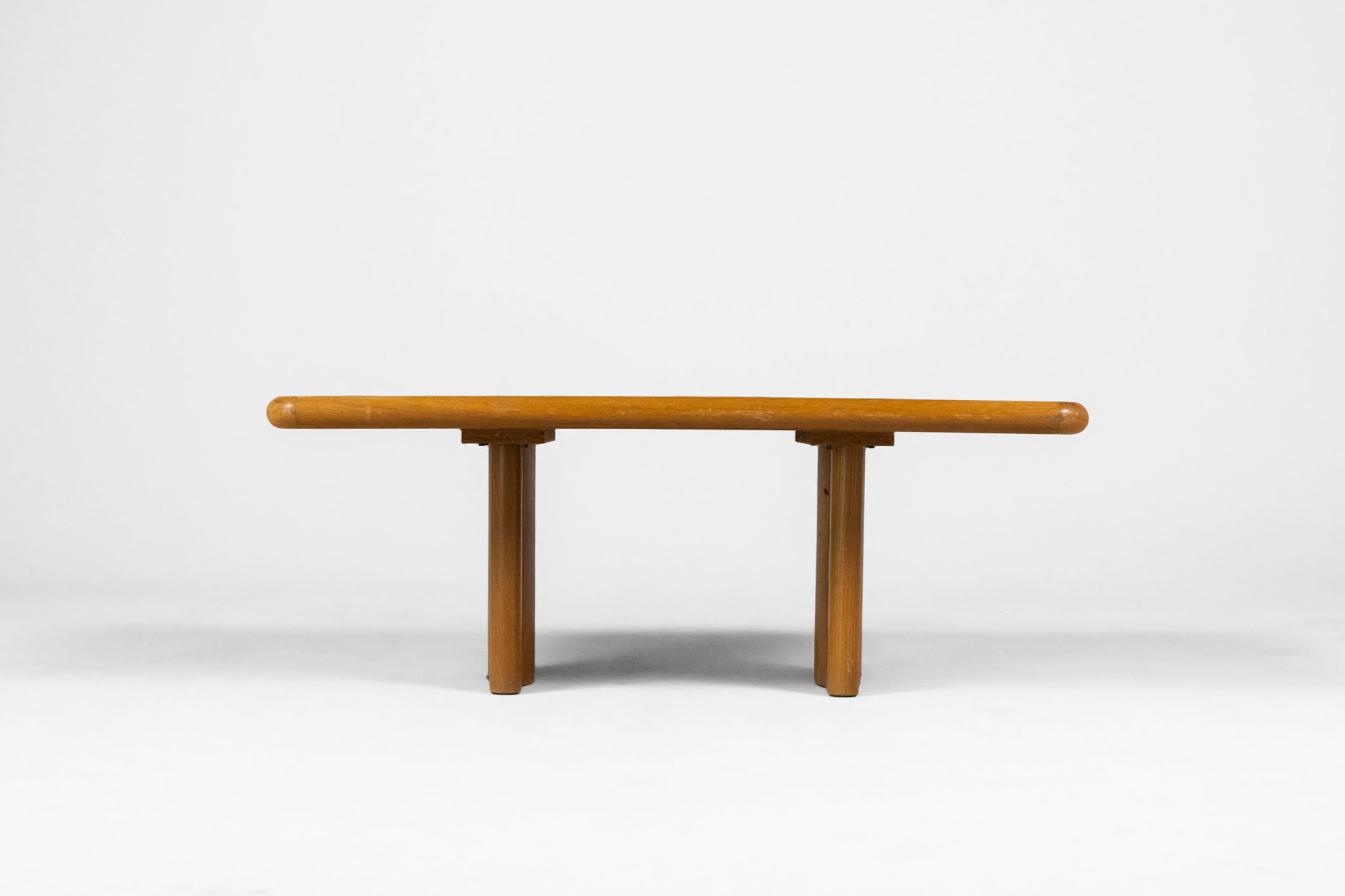 Egyszerű, de elegáns dizájnnal rendelkező, kerekített sarkú fa asztal, masszív lábakkal és rusztikus megjelenéssel. Ideális választás étkezőkbe vagy stúdiókba, ahol a vintage stílus dominál