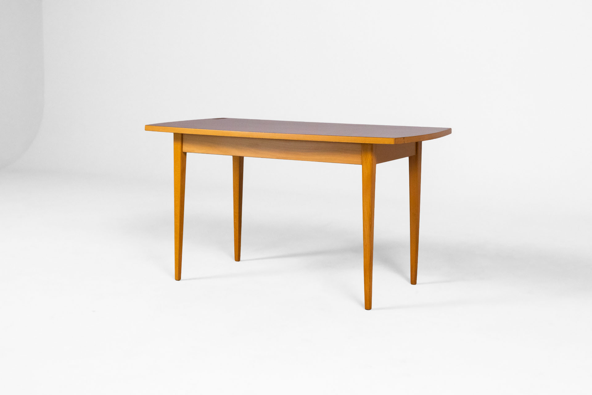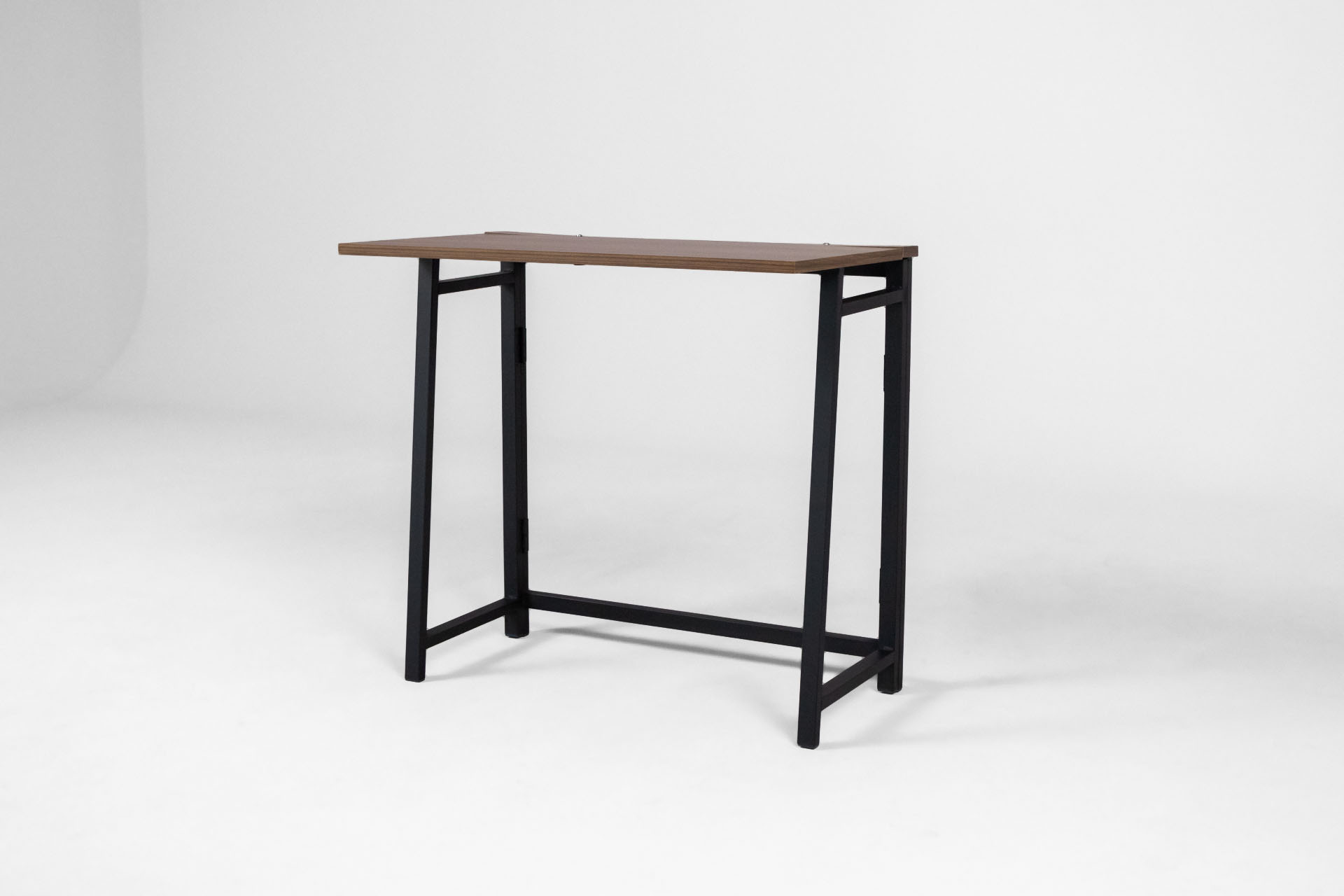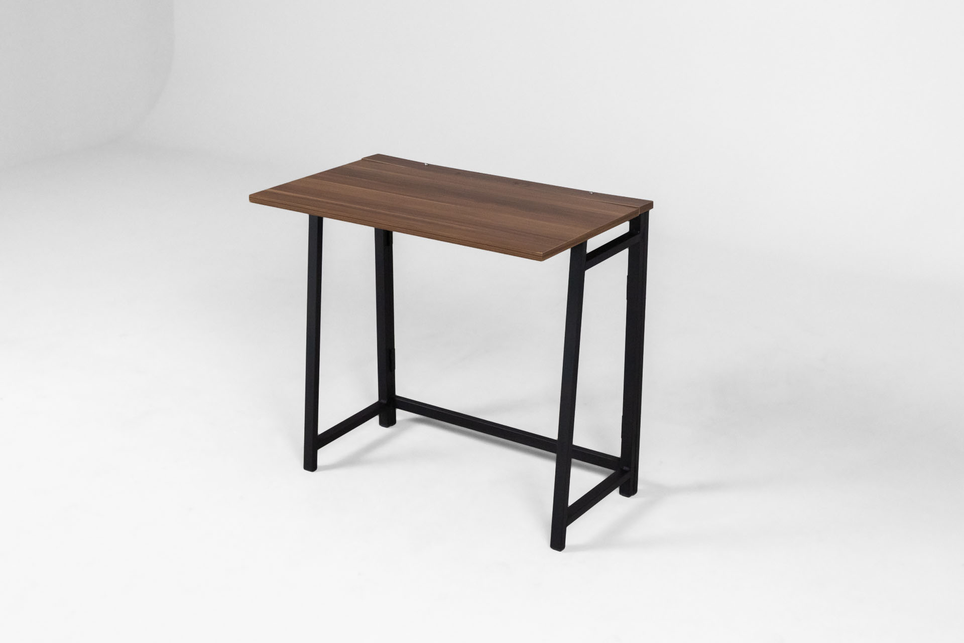 Minimalista stílusú, praktikus íróasztal, amely ötvözi a fém és a fa elemeket. A sima, sötétbarna asztallap és a fekete fém lábak modern megjelenést kölcsönöznek, ideális választás otthoni irodákhoz vagy tanulósarkokhoz