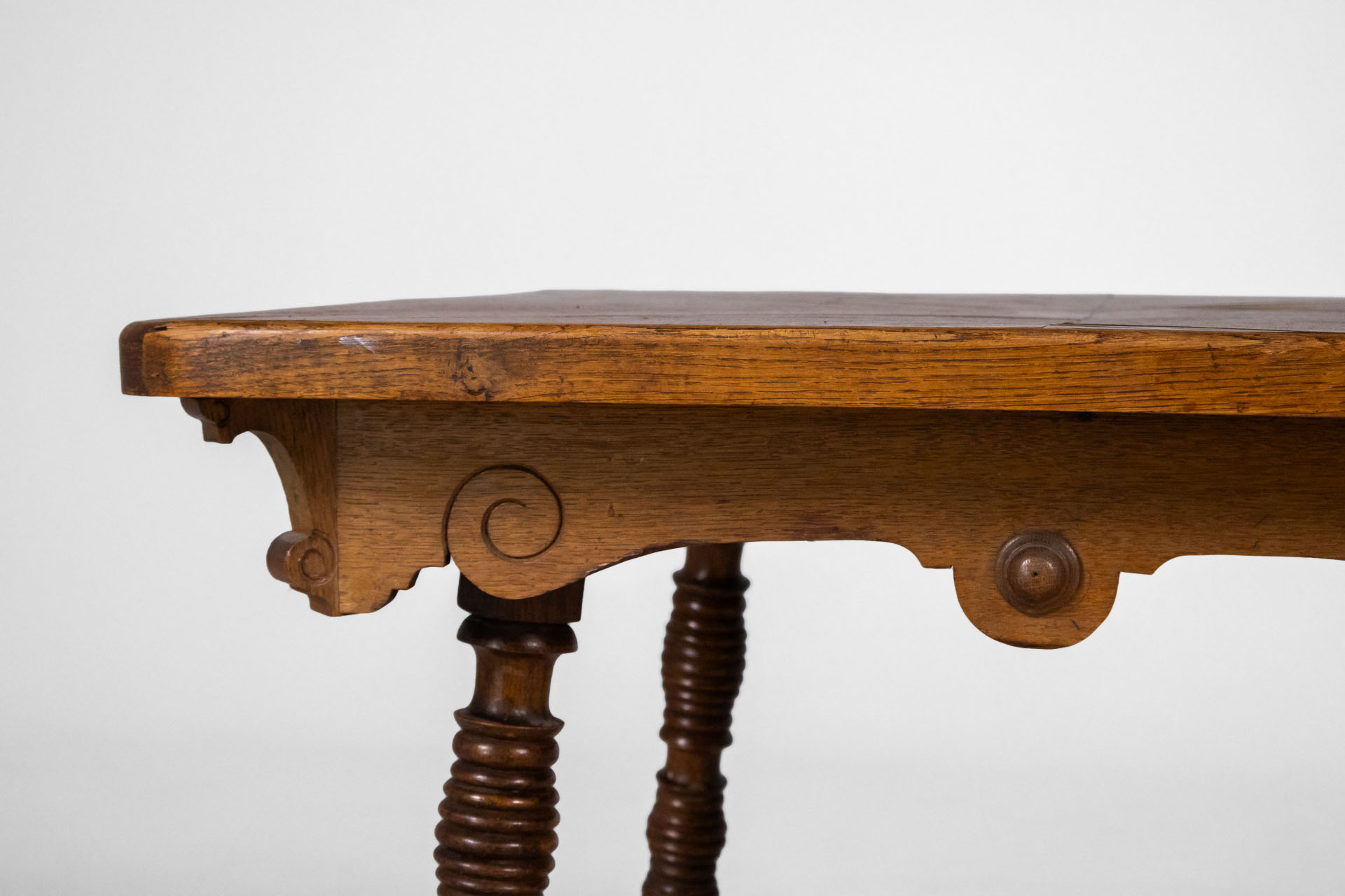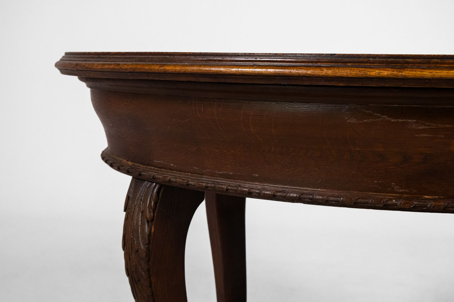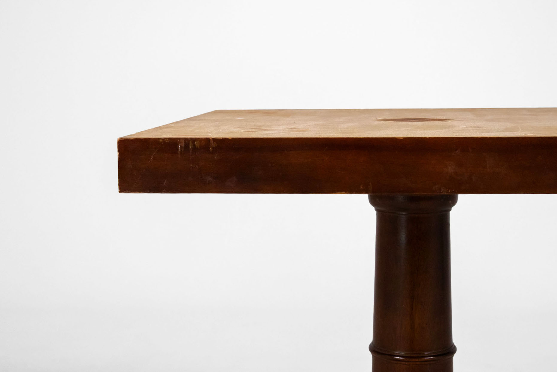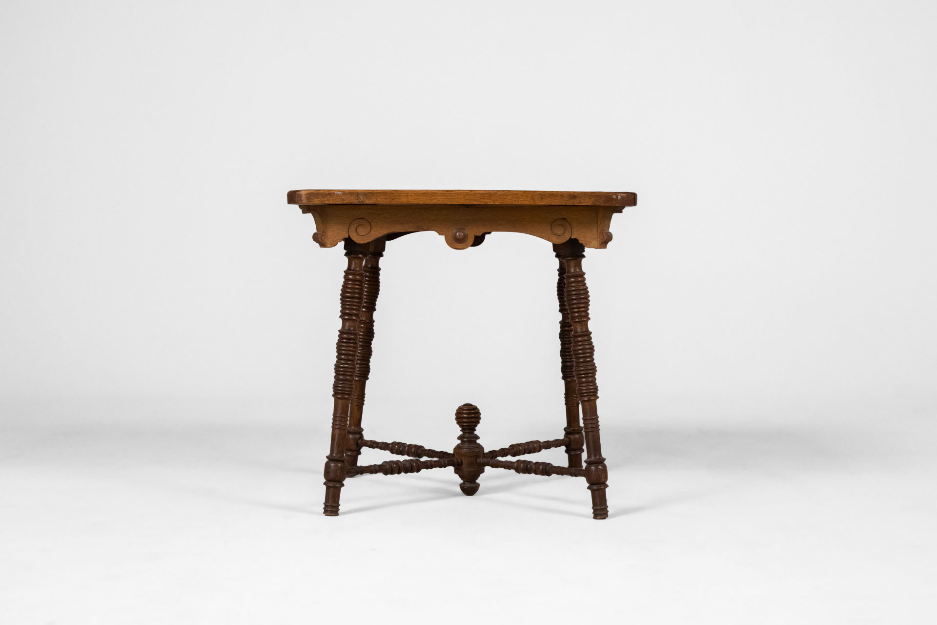 Elegáns asztal faragott lábakkal és díszes középső támasztékkal