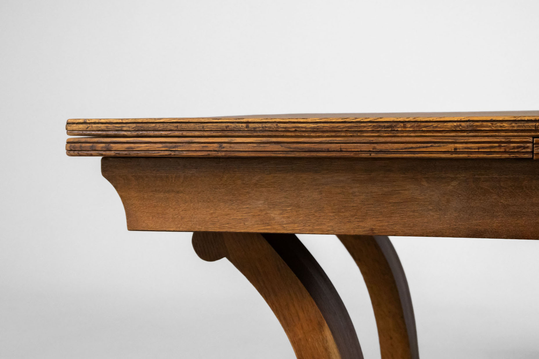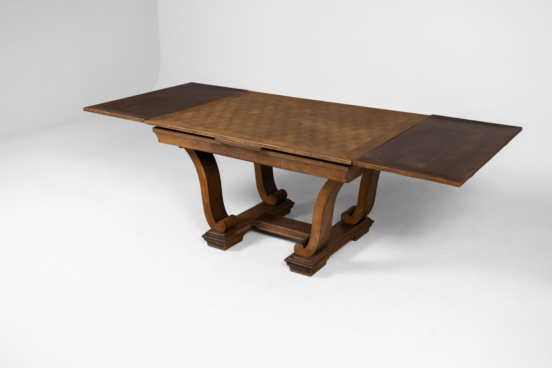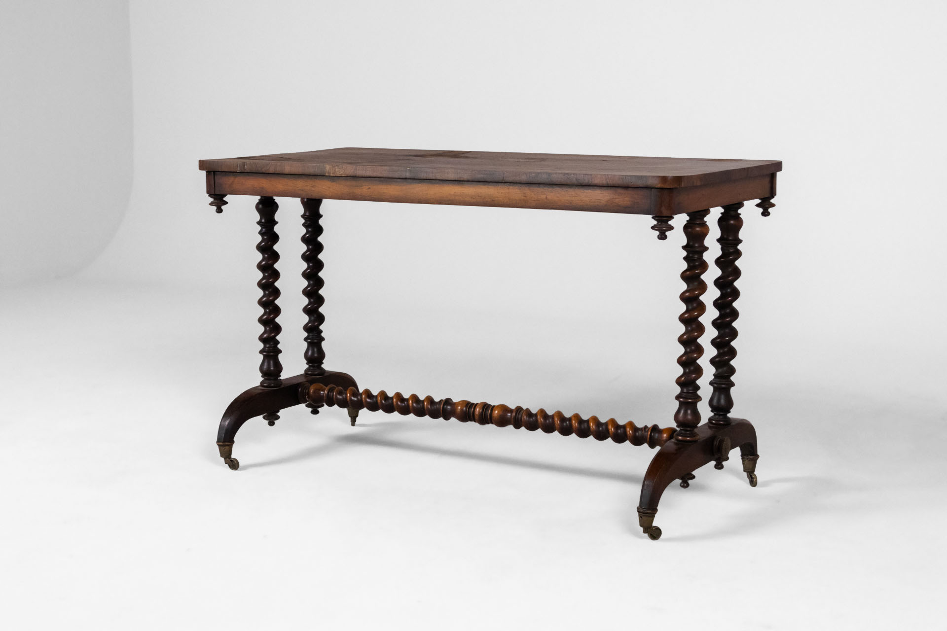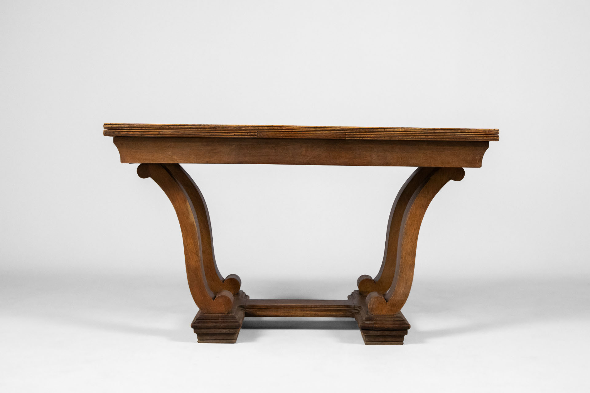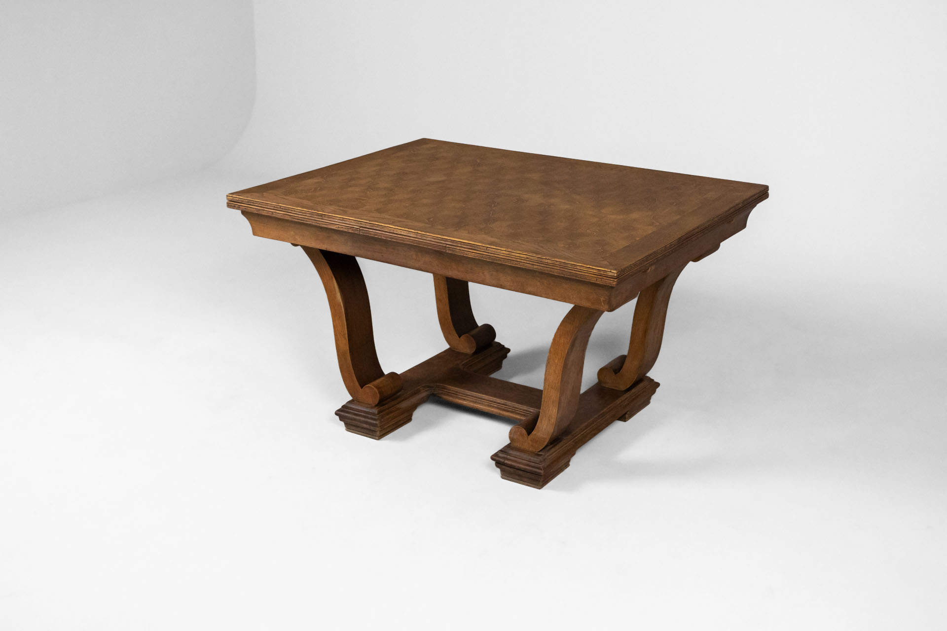Elegáns asztal faragott lábakkal és díszes középső támasztékkal