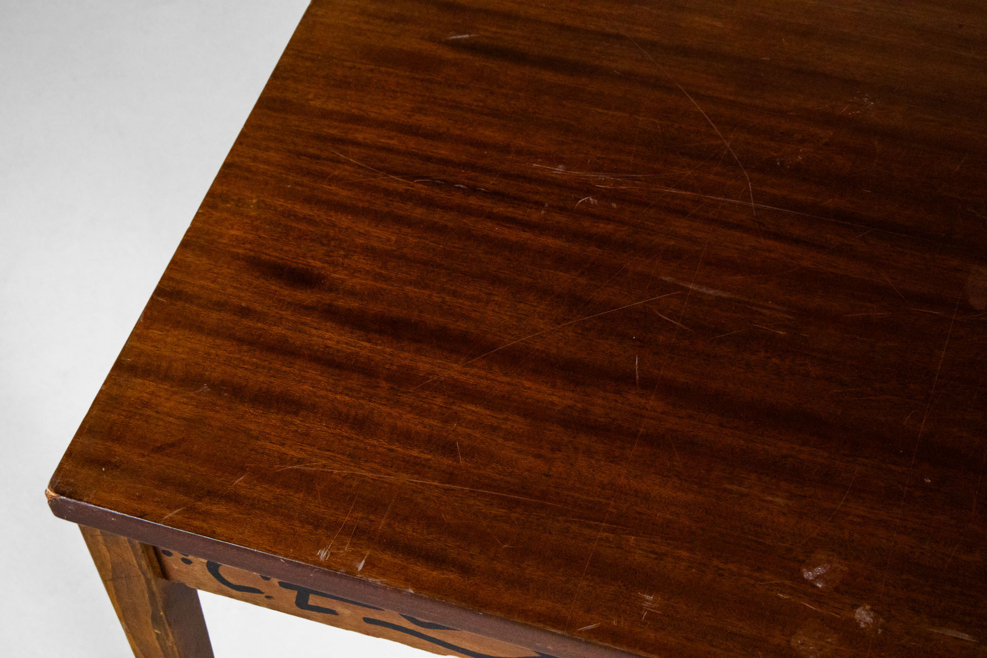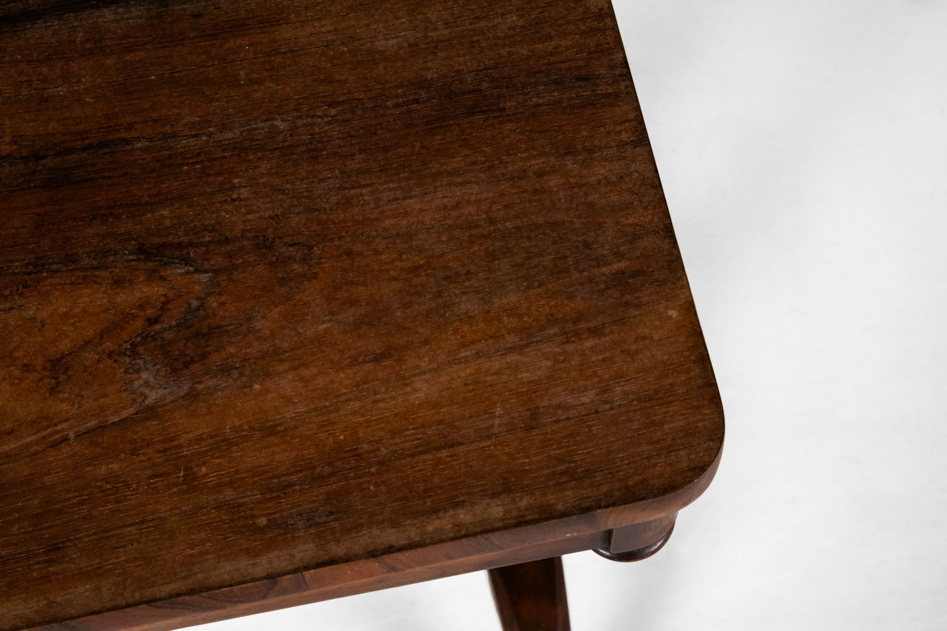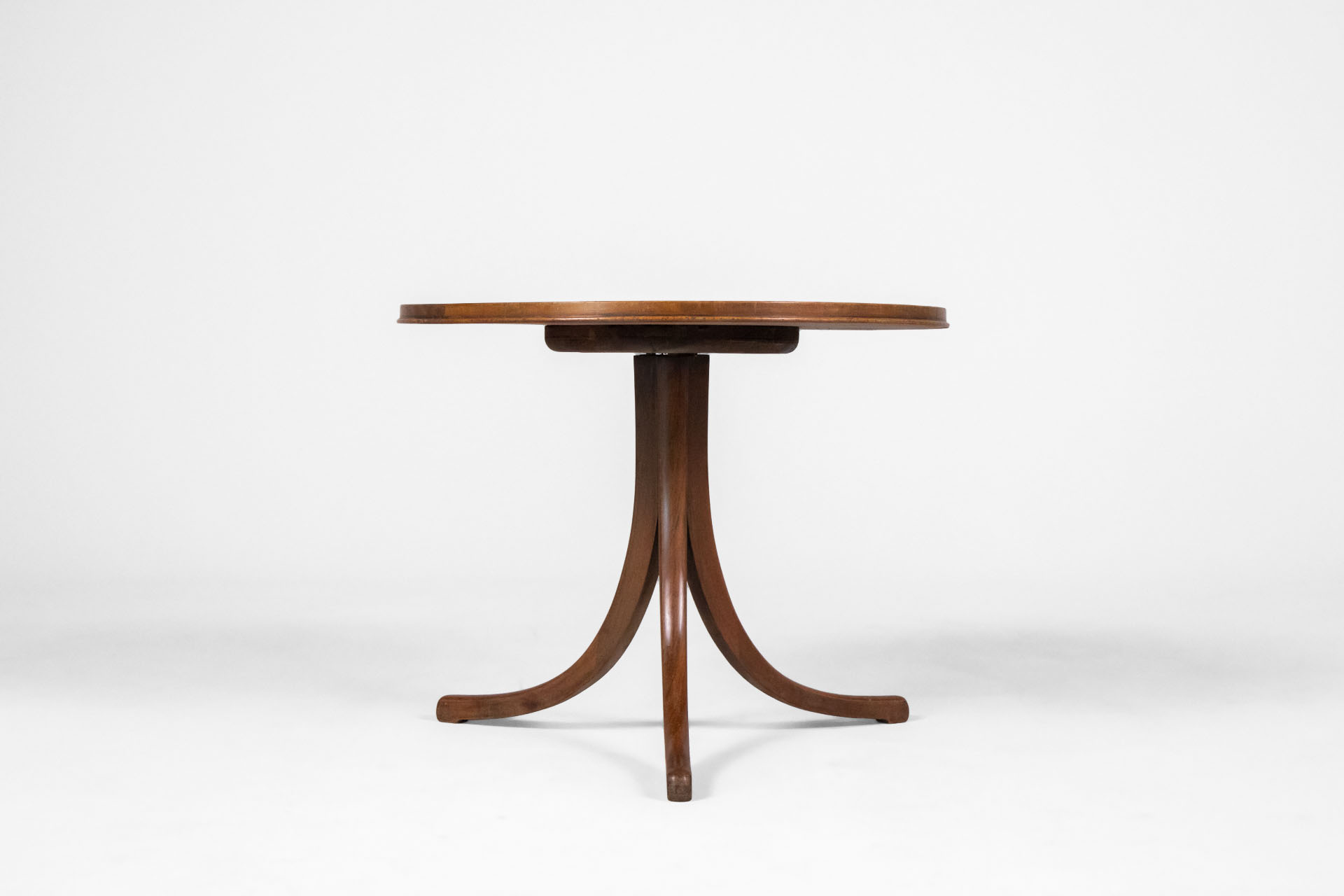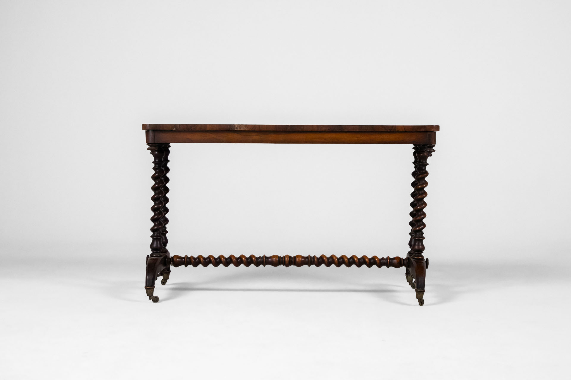 Elegáns asztal faragott lábakkal és díszes középső támasztékkal