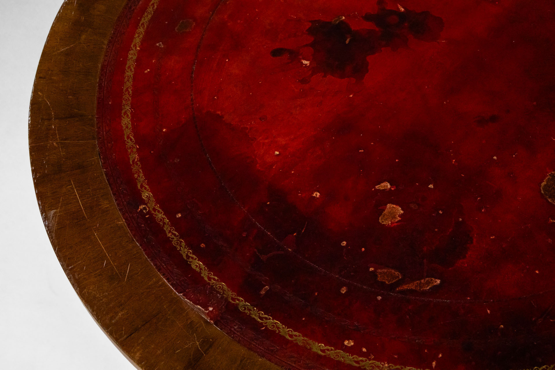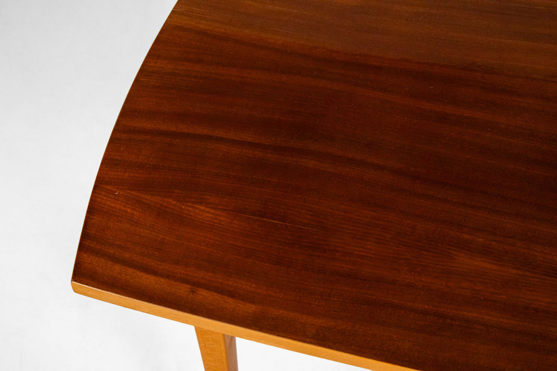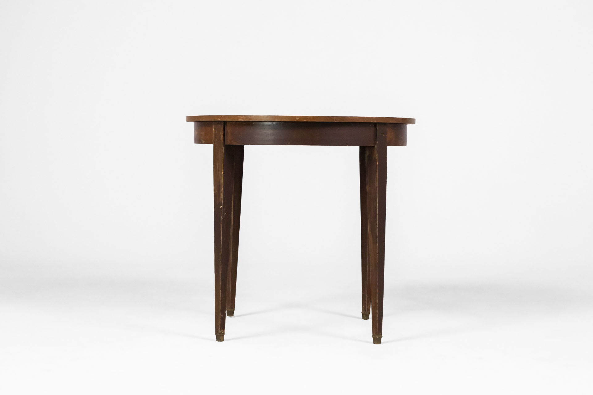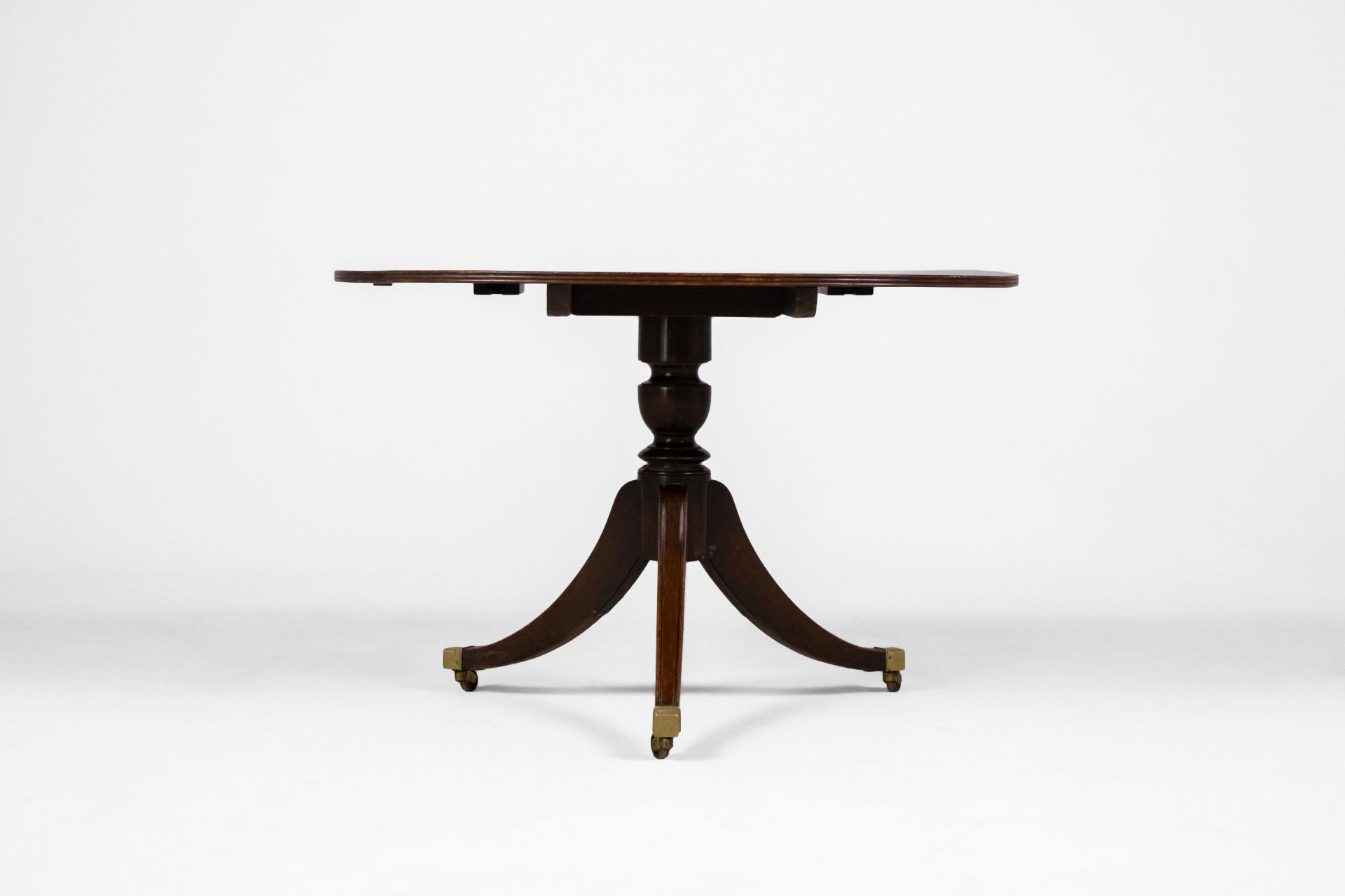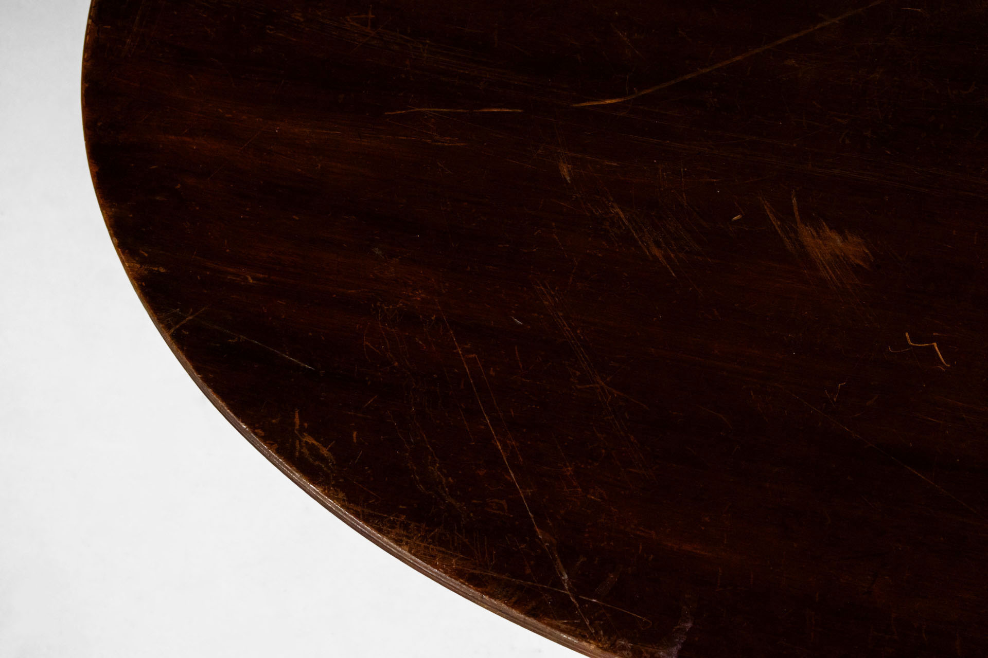 Elegáns, klasszikus stílusú, ovális formájú asztal, masszív központi lábazattal és ívelt lábakkal