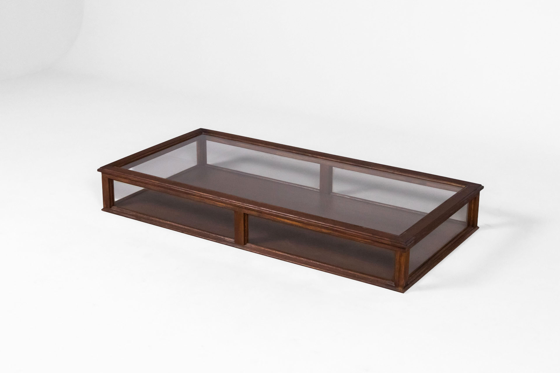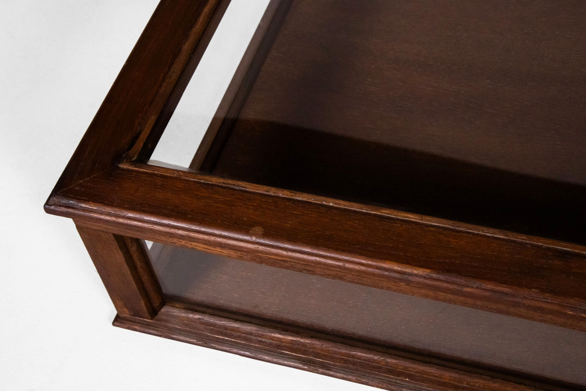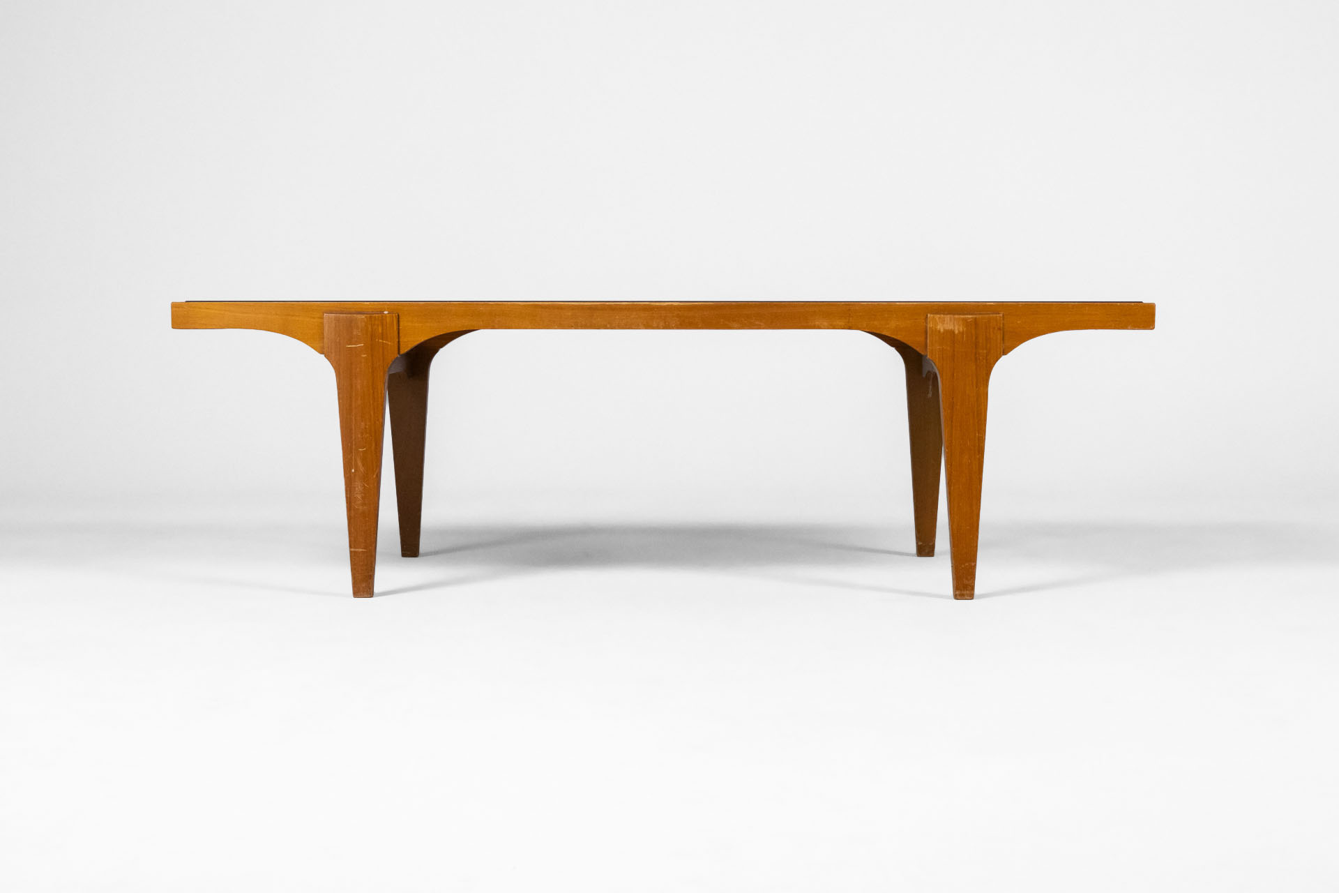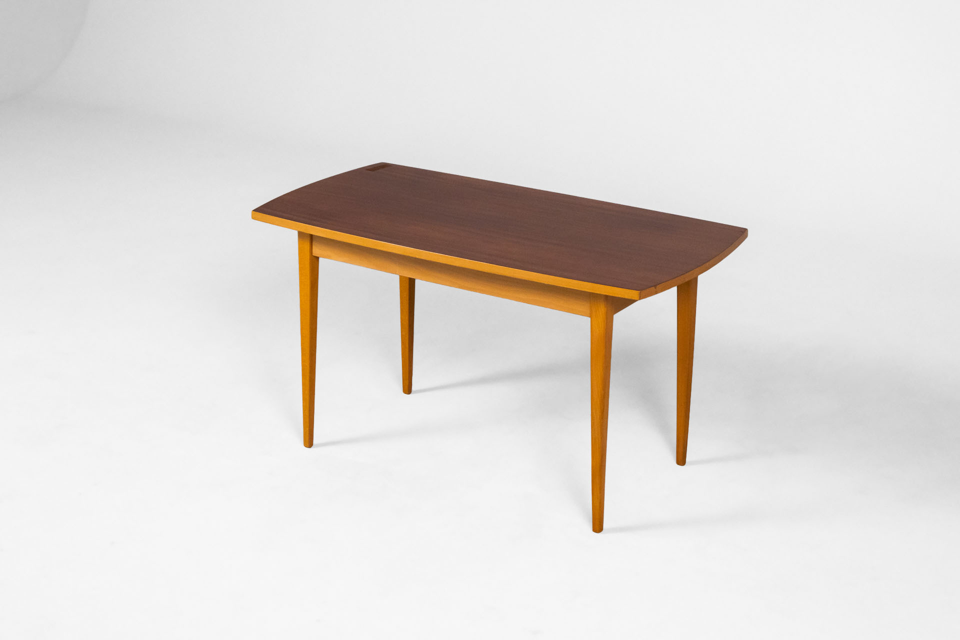 Modern dohányzóasztal világos fa kerettel és sötét üveg asztallappal