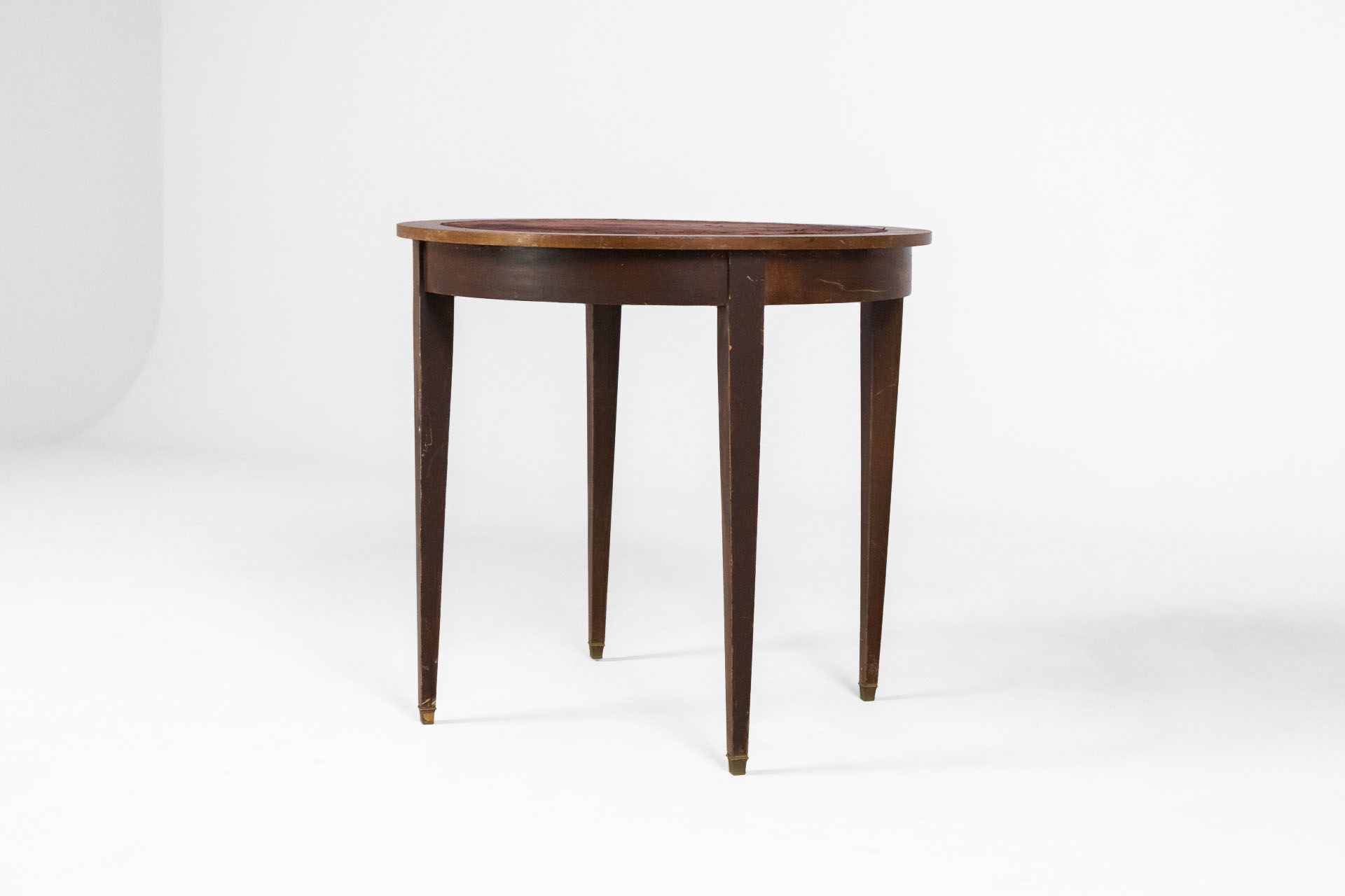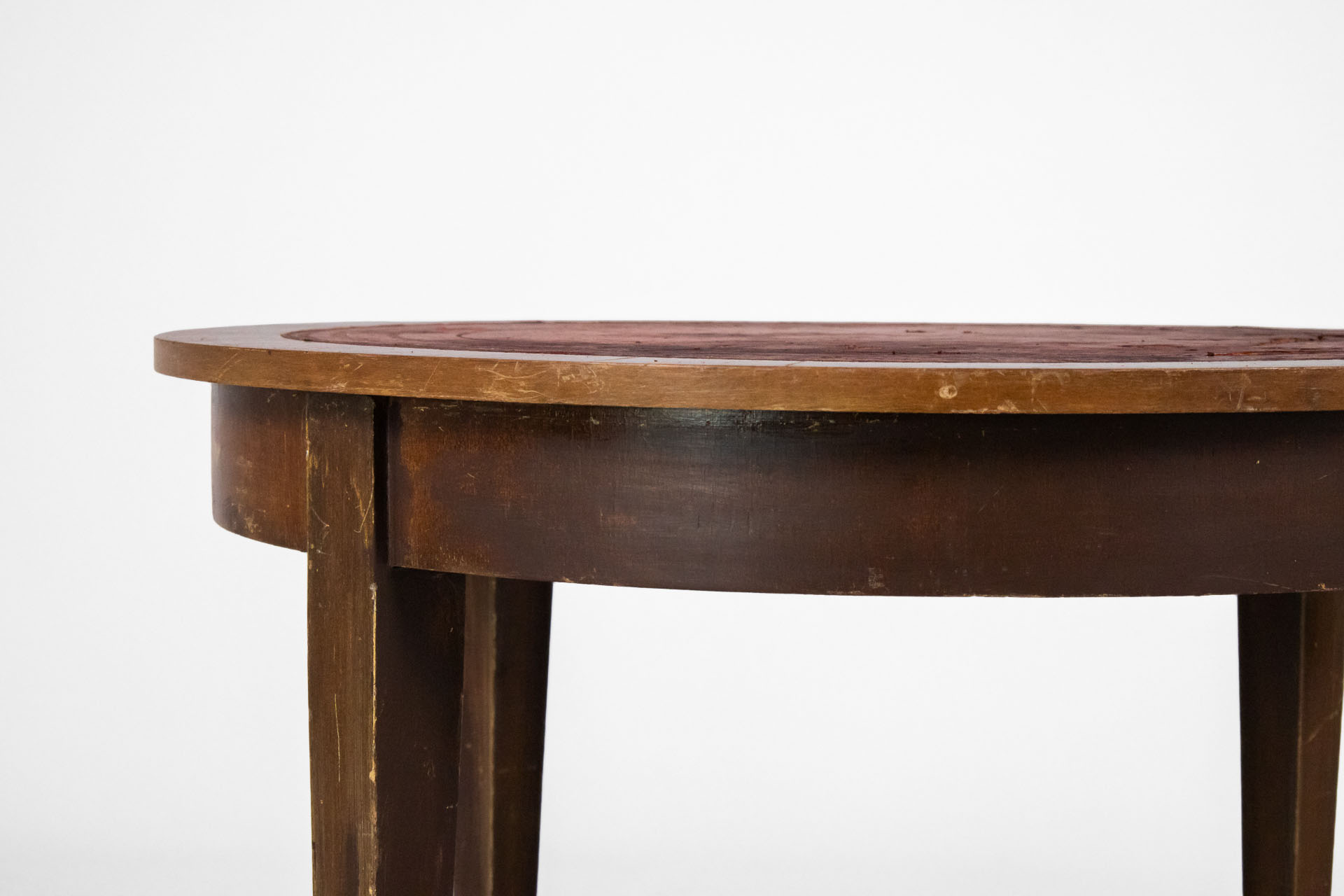 Klasszikus stílusú, kerek dohányzóasztal, amely elegáns megjelenésével és letisztult formájával bármely enteriőr dísze lehet. A sötétbarna fa szerkezet és a vöröses árnyalatú asztallap harmonikus összhangot teremt,...