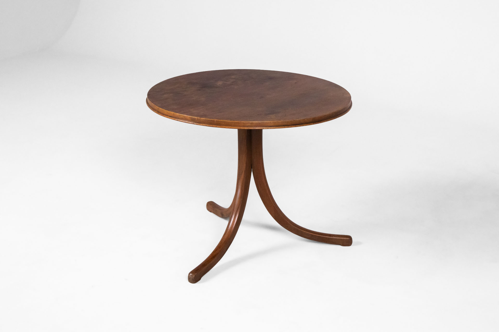 Egyszerű, de elegáns kerek dohányzóasztal, amely masszív fa anyagból készült. A sima, természetes felület és a lekerekített asztallap harmonikus megjelenést kölcsönöz, míg a három ívelt láb stabilitást biztosít....