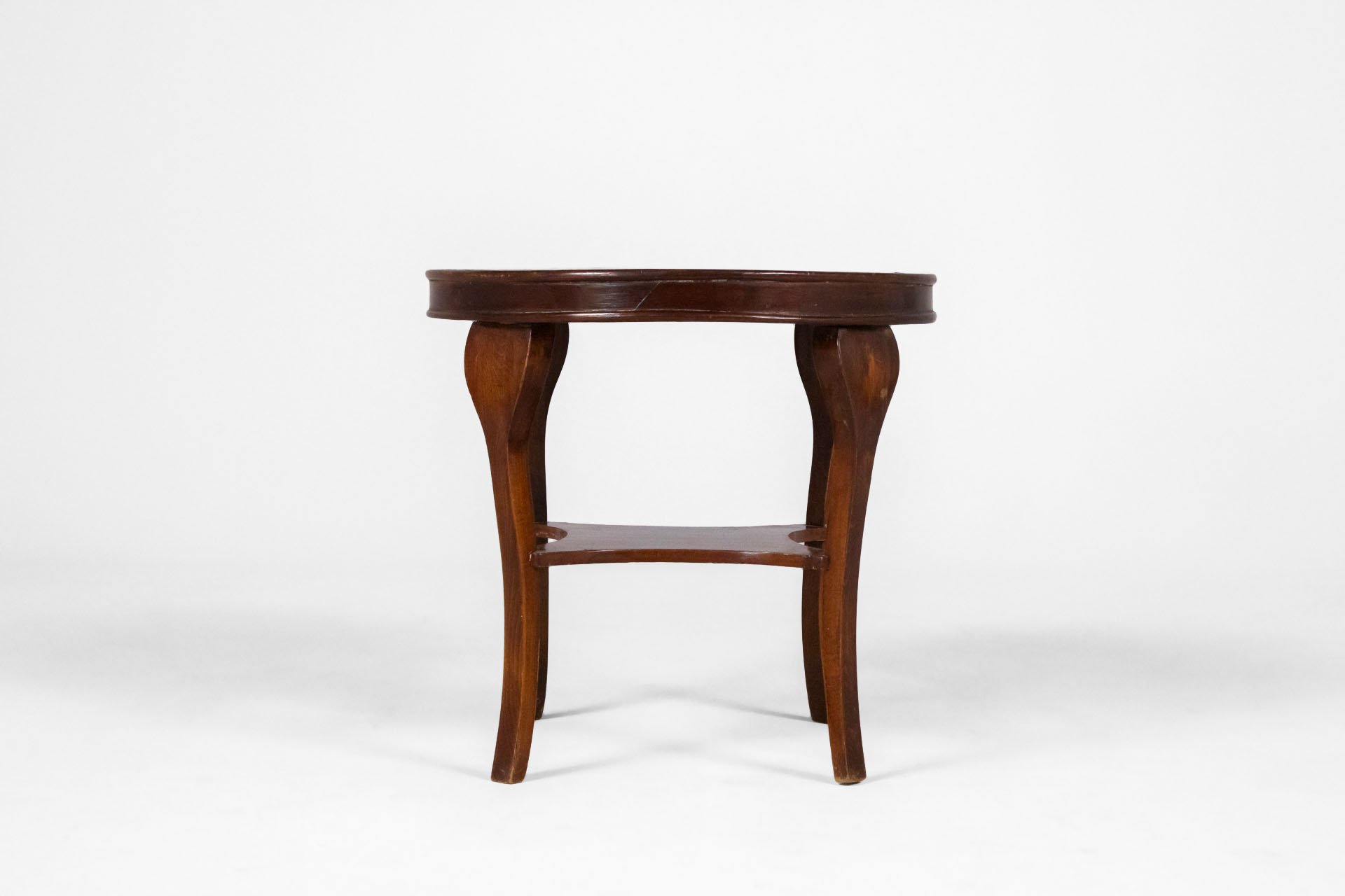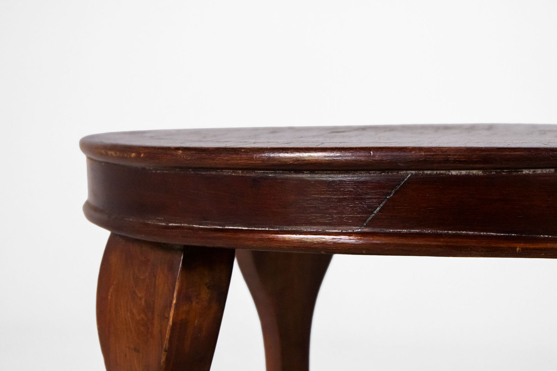 Elegáns, klasszikus stílusú, kerek formájú dohányzóasztal, masszív lábazattal és ívelt lábakkal, amely időtlen megjelenést kölcsönöz bármely enteriőrnek. Az asztallap sima felülete és a finoman kidolgozott részletek...