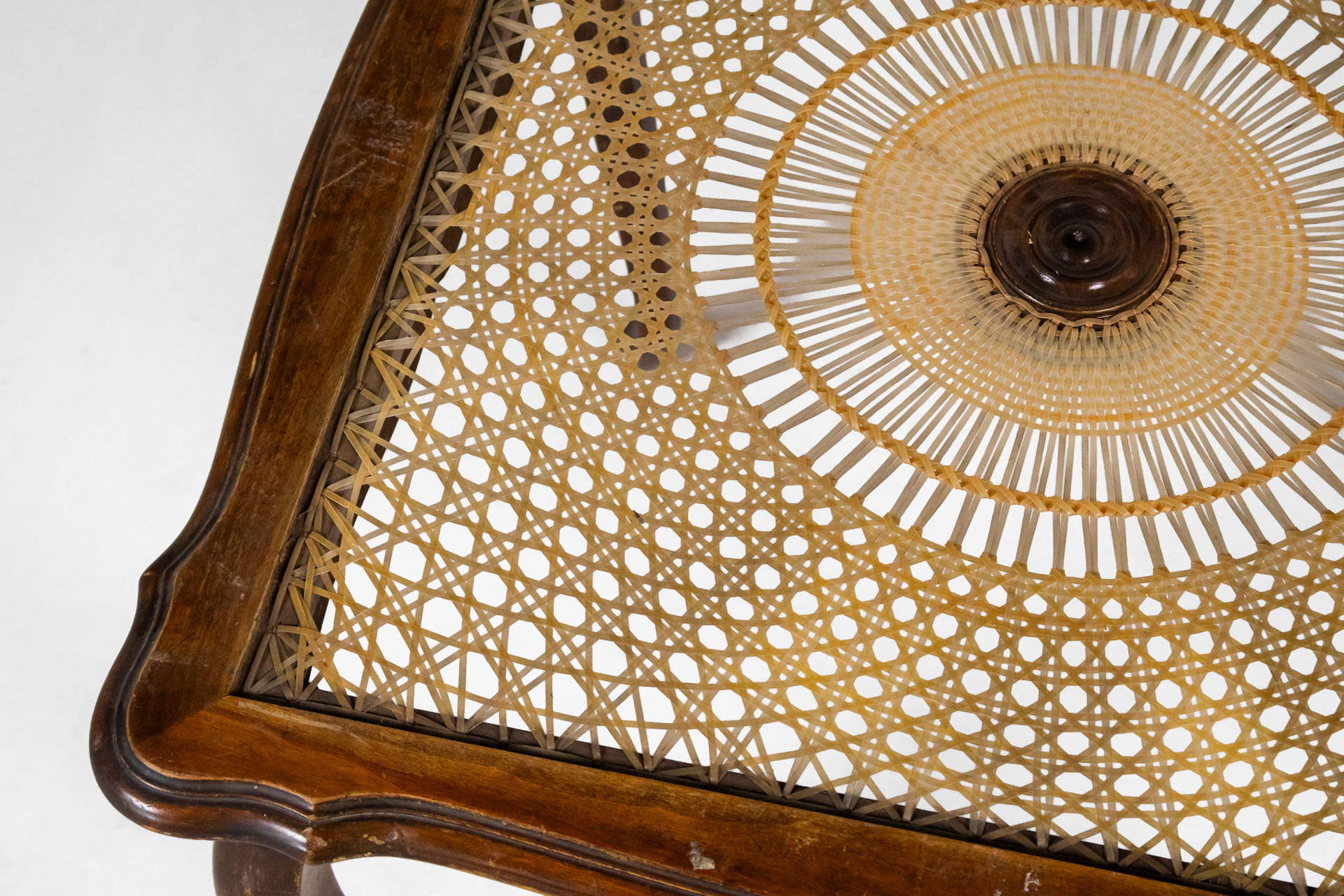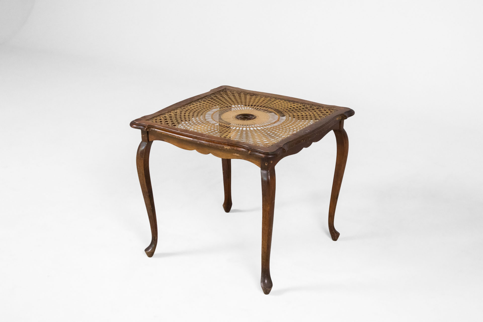 Elegáns, vintage stílusú, négyzetes formájú dohányzóasztal, amely rattan betéttel és ívelt lábakkal rendelkezik, tökéletes kiegészítője lehet bármely klasszikus vagy modern enteriőrnek. Az asztal masszív fa kerete és...