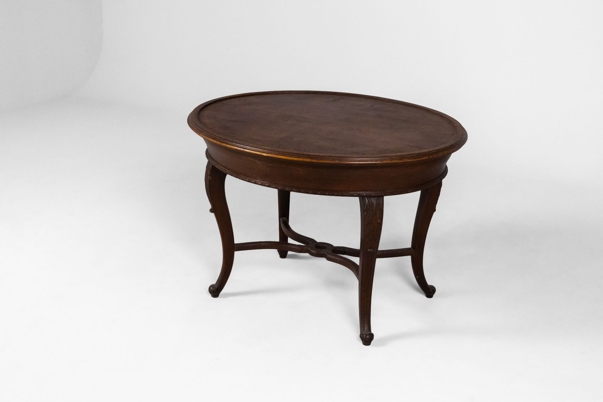 Elegáns, klasszikus stílusú, ovális formájú dohányzóasztal, masszív központi lábazattal és kecsesen ívelt lábakkal, amely időtlen megjelenést kölcsönöz bármely enteriőrnek. Az asztallap sima felülete és a finoman...