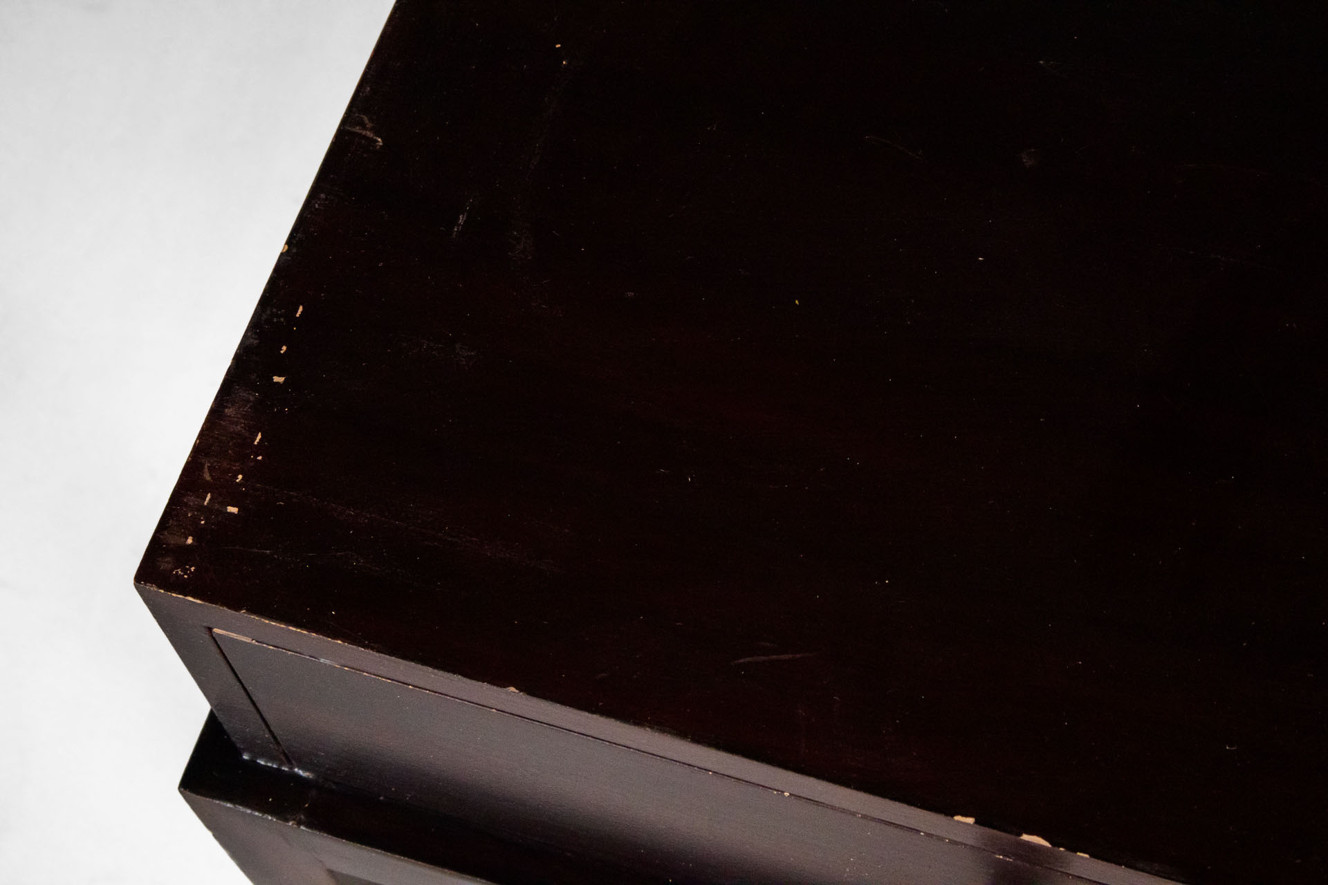 Elegáns, klasszikus stílusú éjjeli szekrény, amely masszív mahagóni anyagból készült. A szekrény egyszerű, de ízléses formája és sötétbarna színe meleg hangulatot teremt a hálószobában. A fiók arany színű fogantyúval...