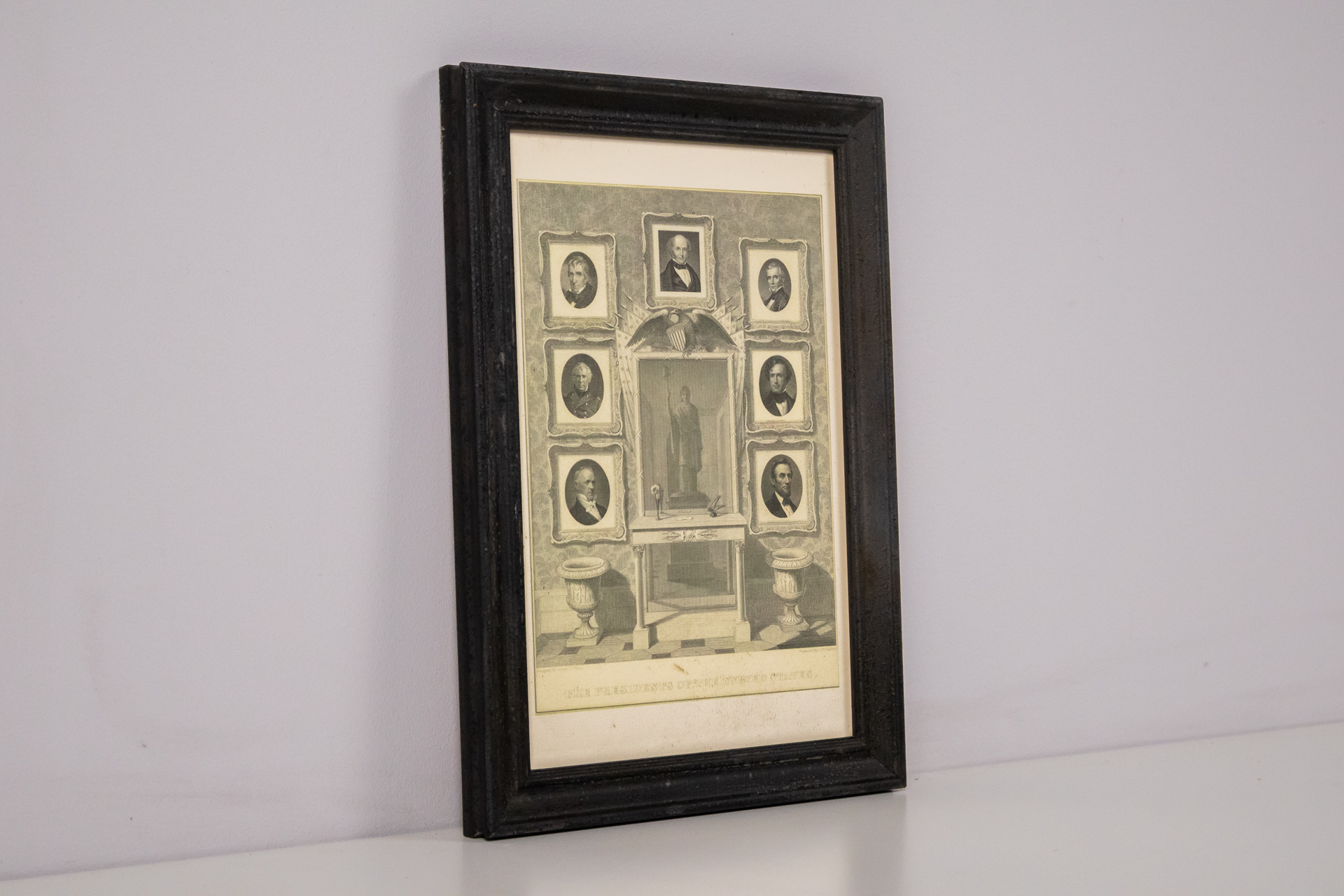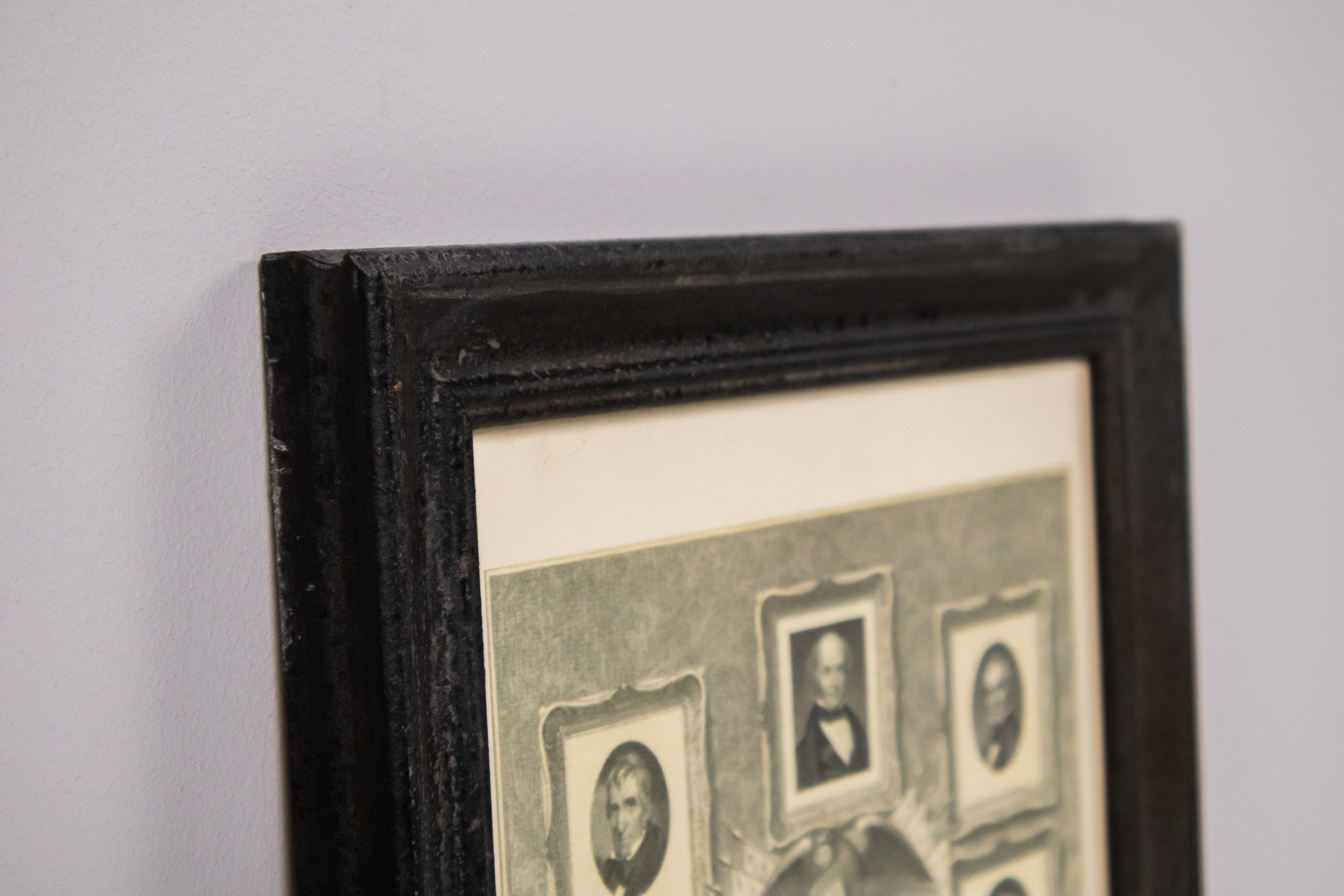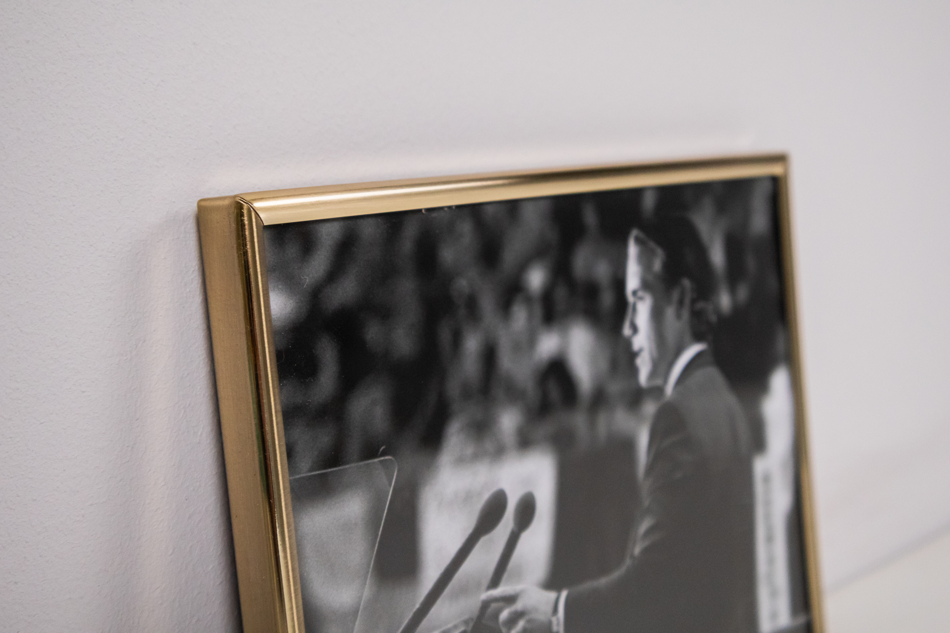 Fekete-fehér politikai portré aranykeretben