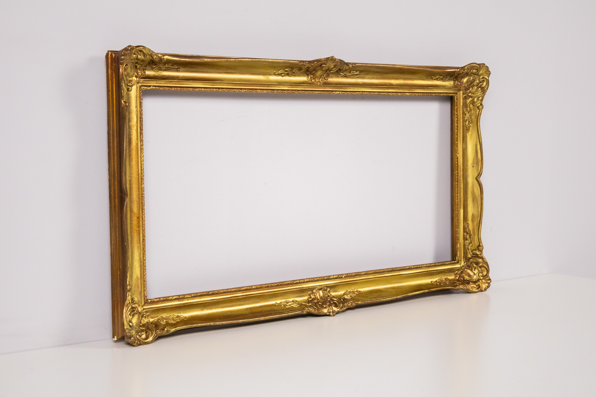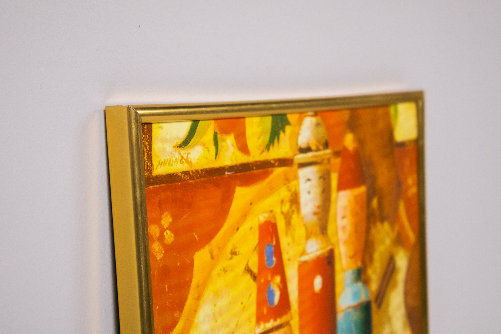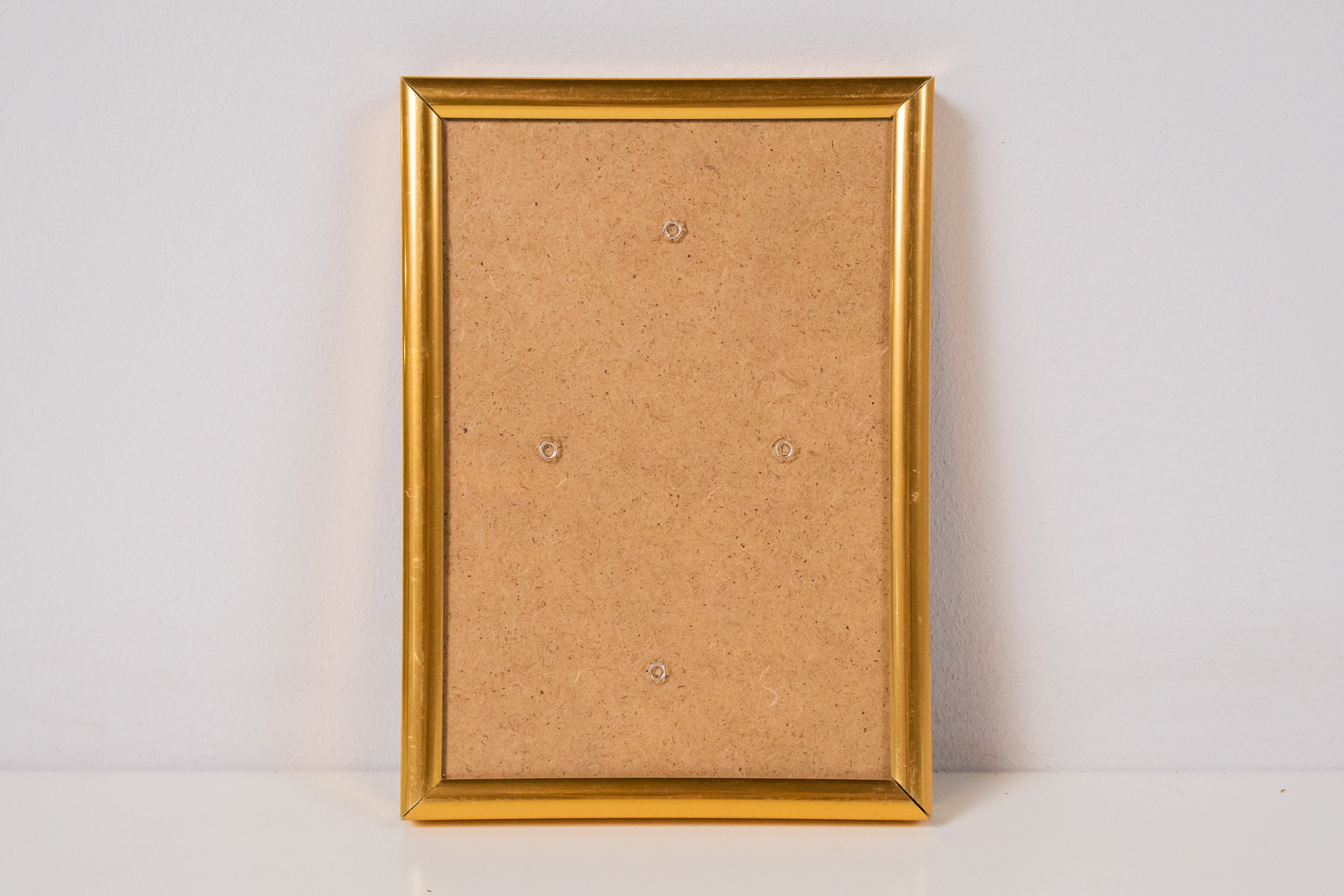 Egyszerű, aranyozott fa keret, sima felülettel és letisztult vonalakkal. A keret hátoldala sima, karton anyagból készült, négy rögzítő ponttal ellátva, amelyek lehetővé teszik a kép könnyű cseréjét. A keret állapota...