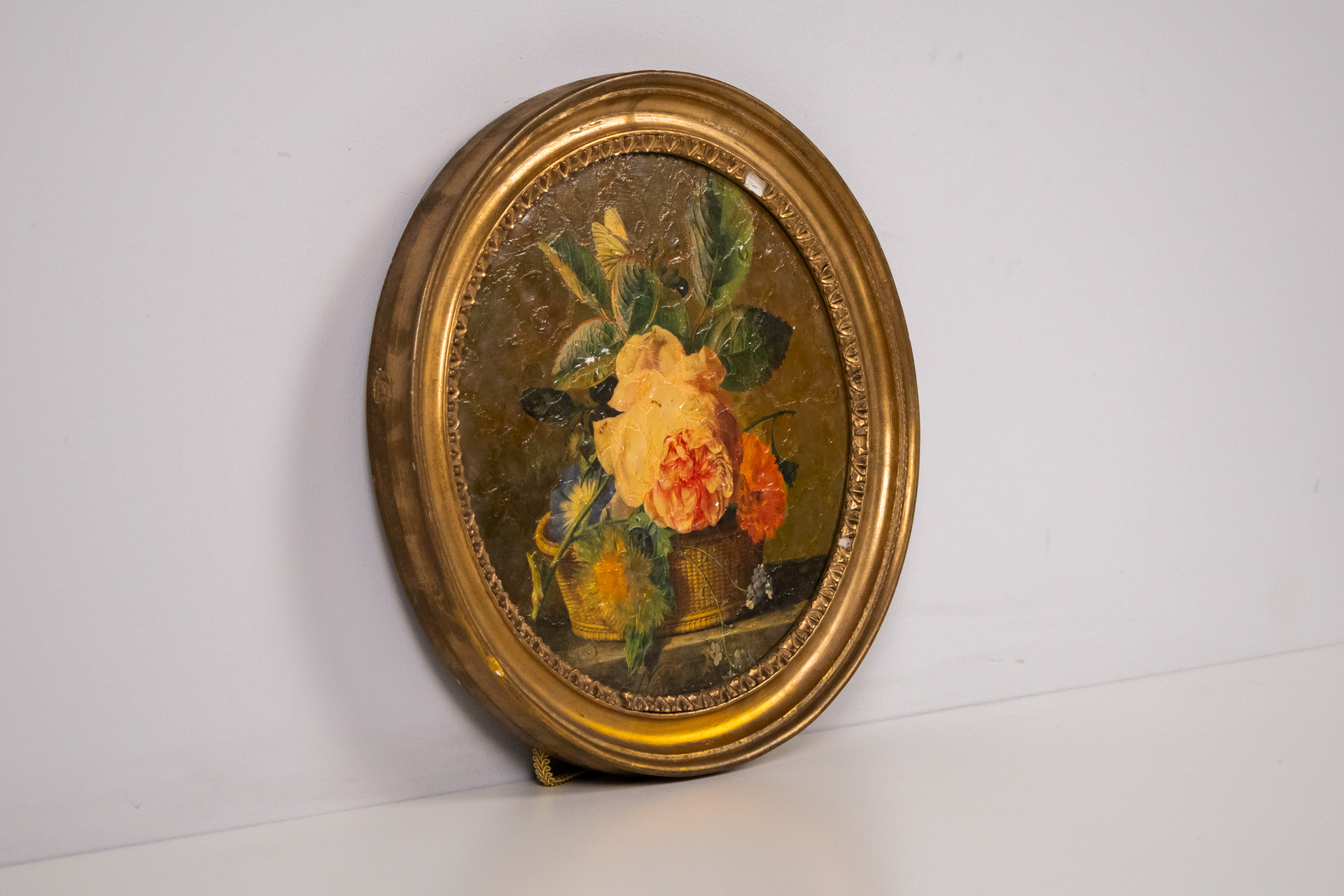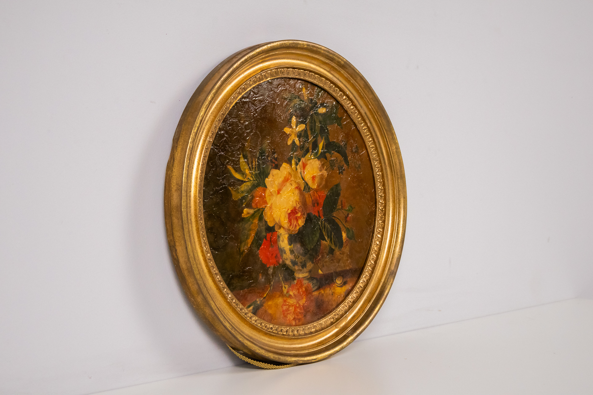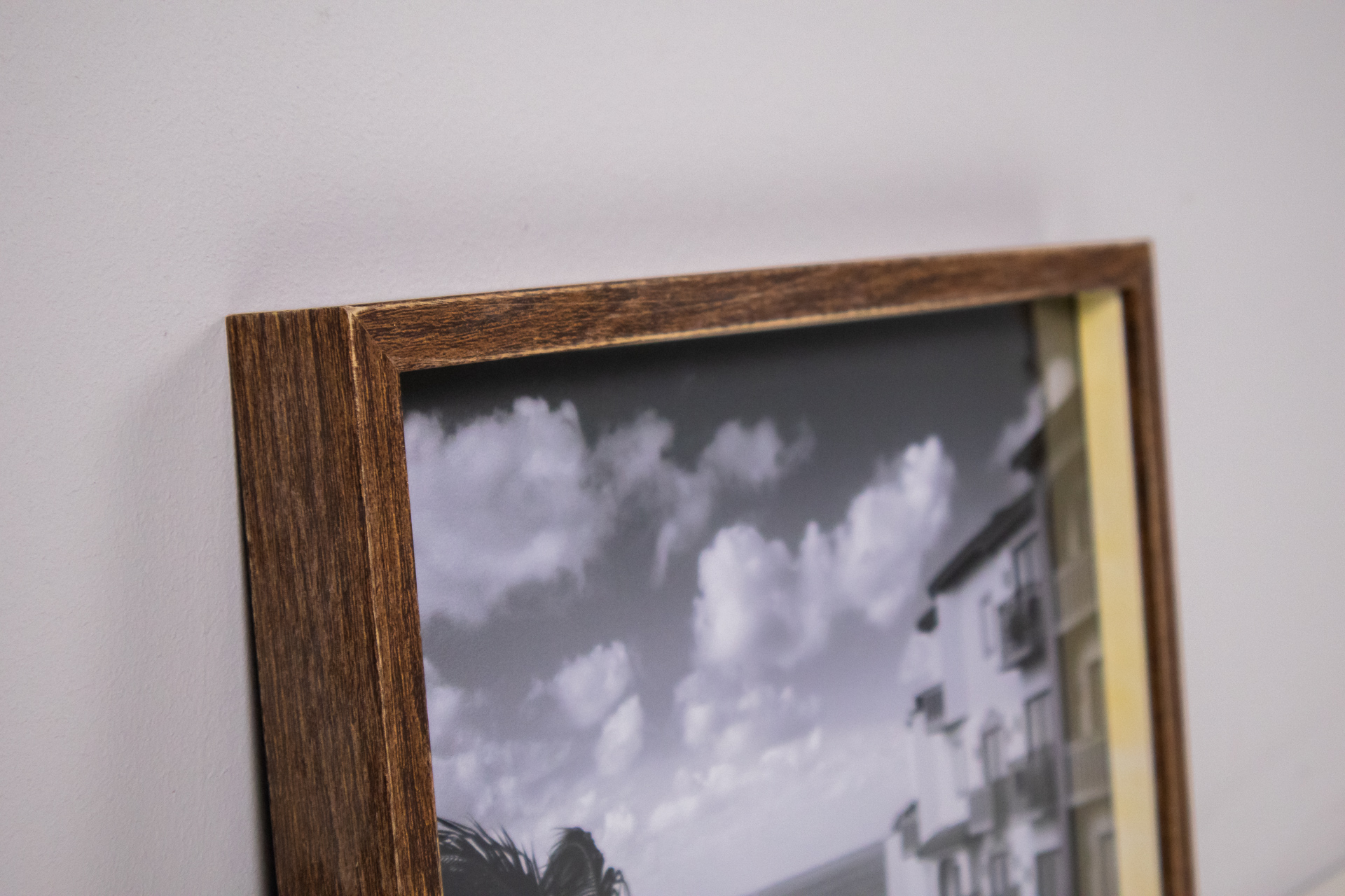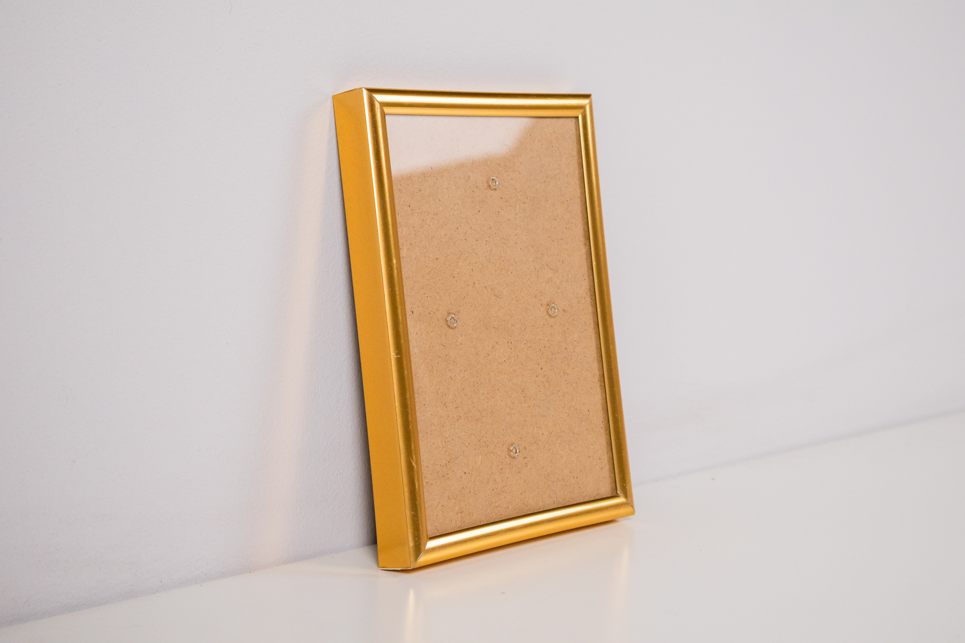 Egyszerű, aranyozott fa keret, sima felülettel és letisztult vonalakkal. A keret hátoldala sima, karton anyagból készült, négy rögzítő ponttal ellátva, amelyek lehetővé teszik a kép könnyű cseréjét. A keret állapota...