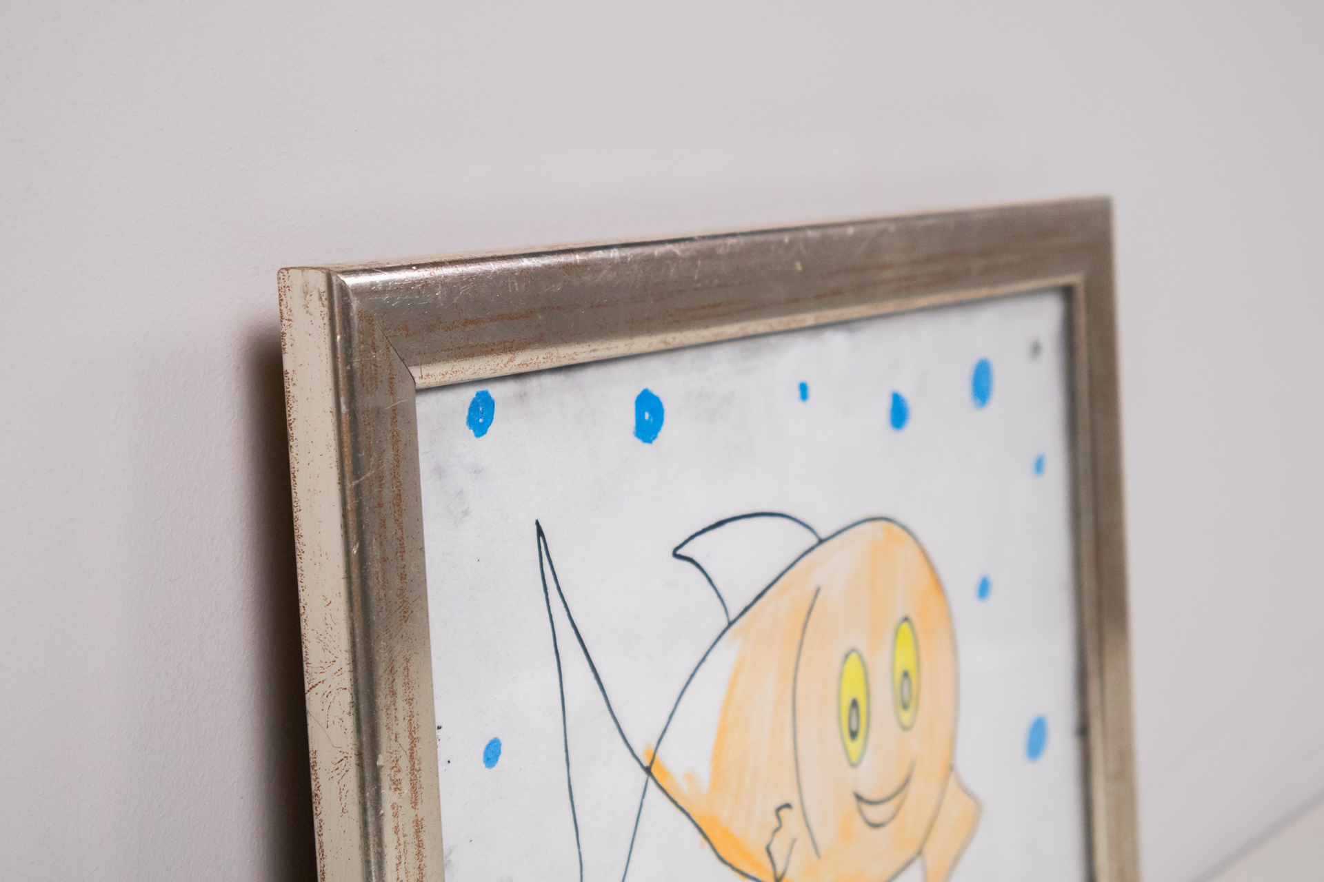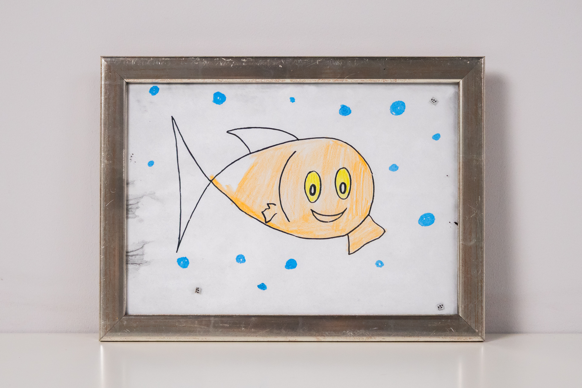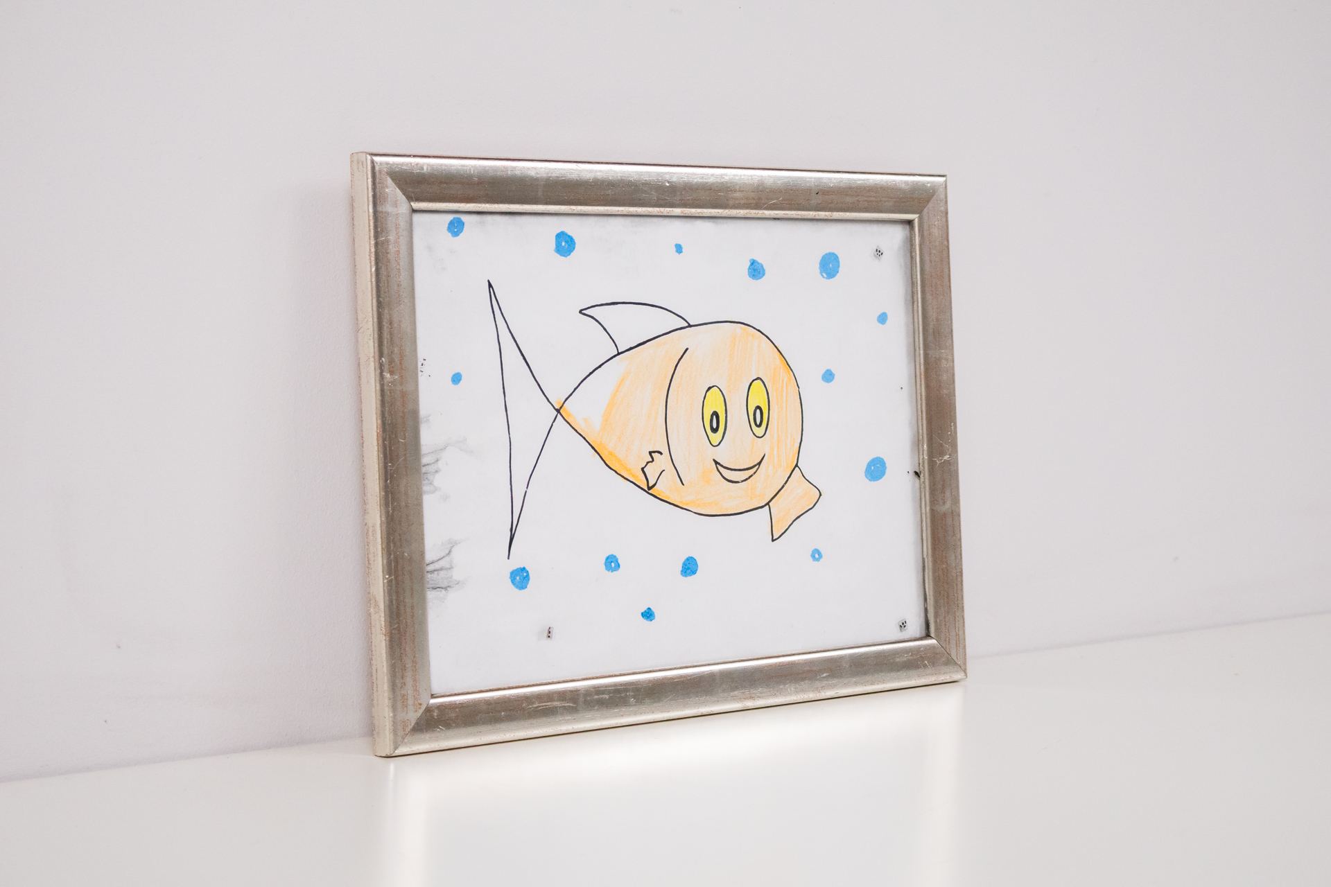 Gyerekrajz halacskáról ezüstkeretben