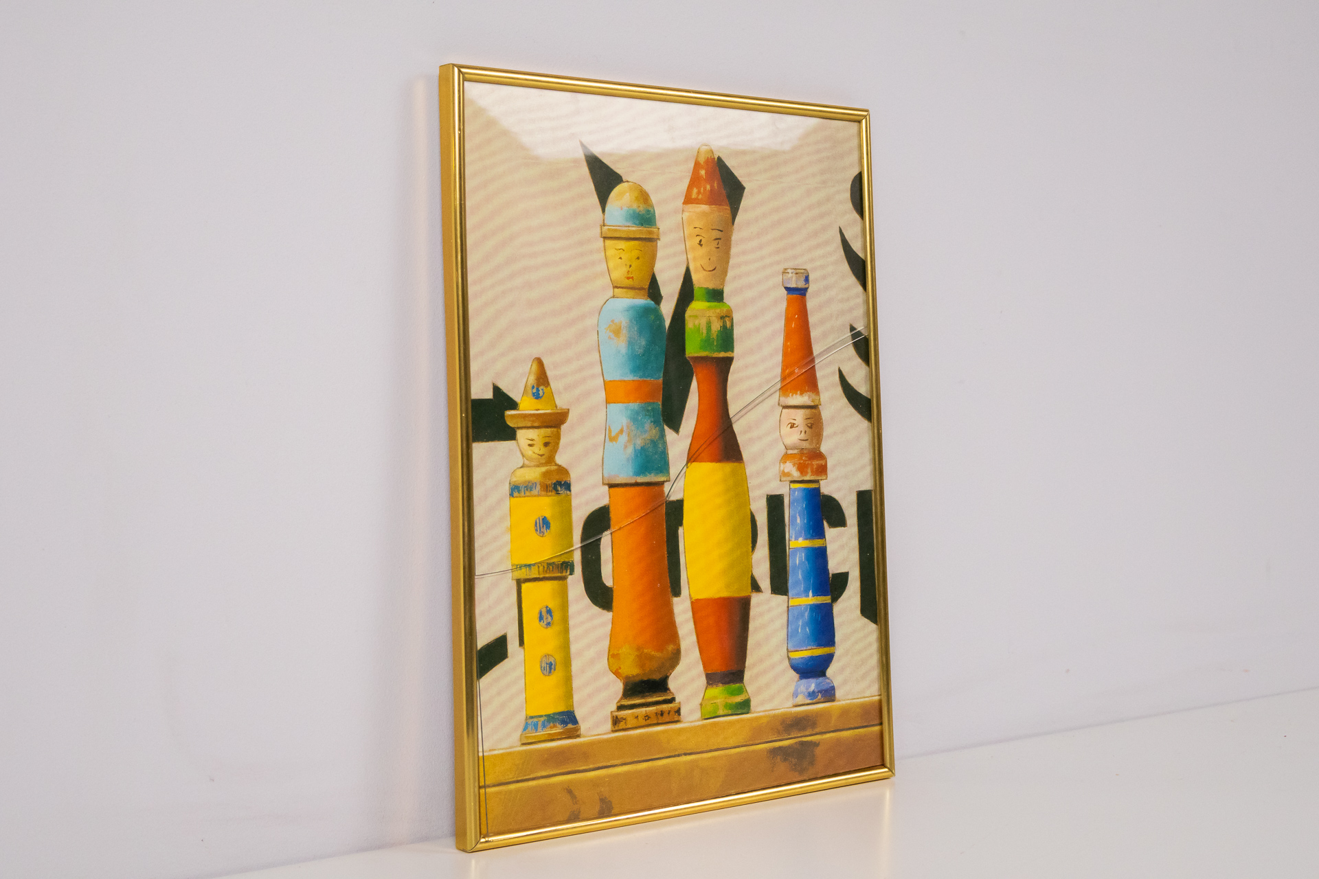 Absztrakt figurális kompozíció aranykeretben