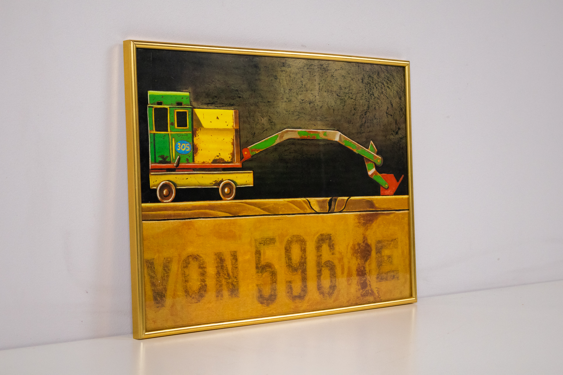 Modern stilizált teherautó festmény aranykeretben