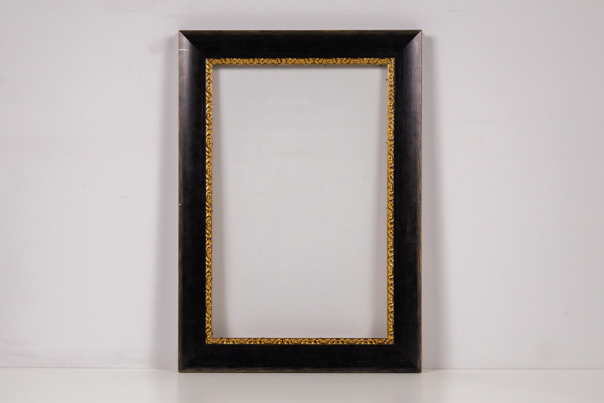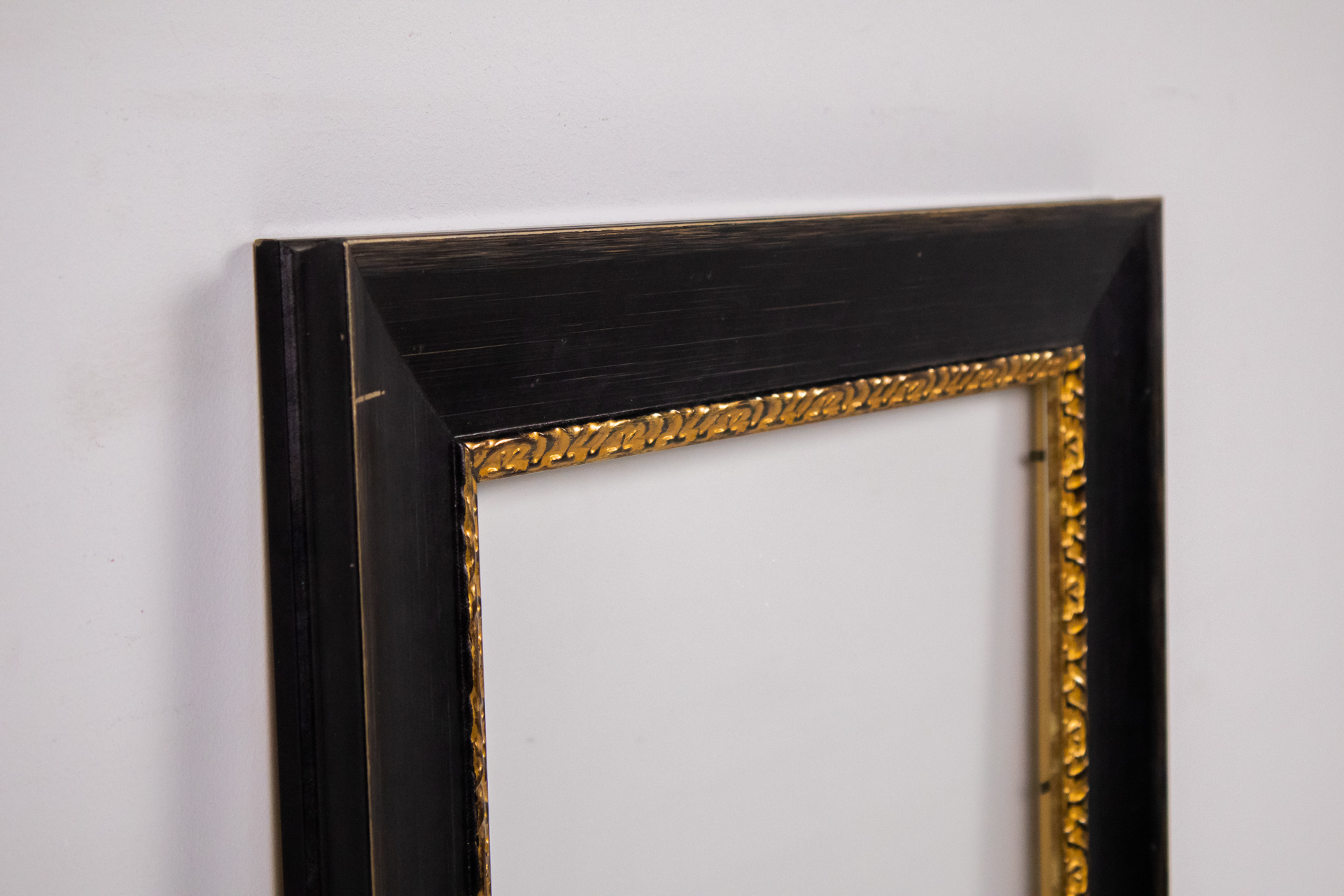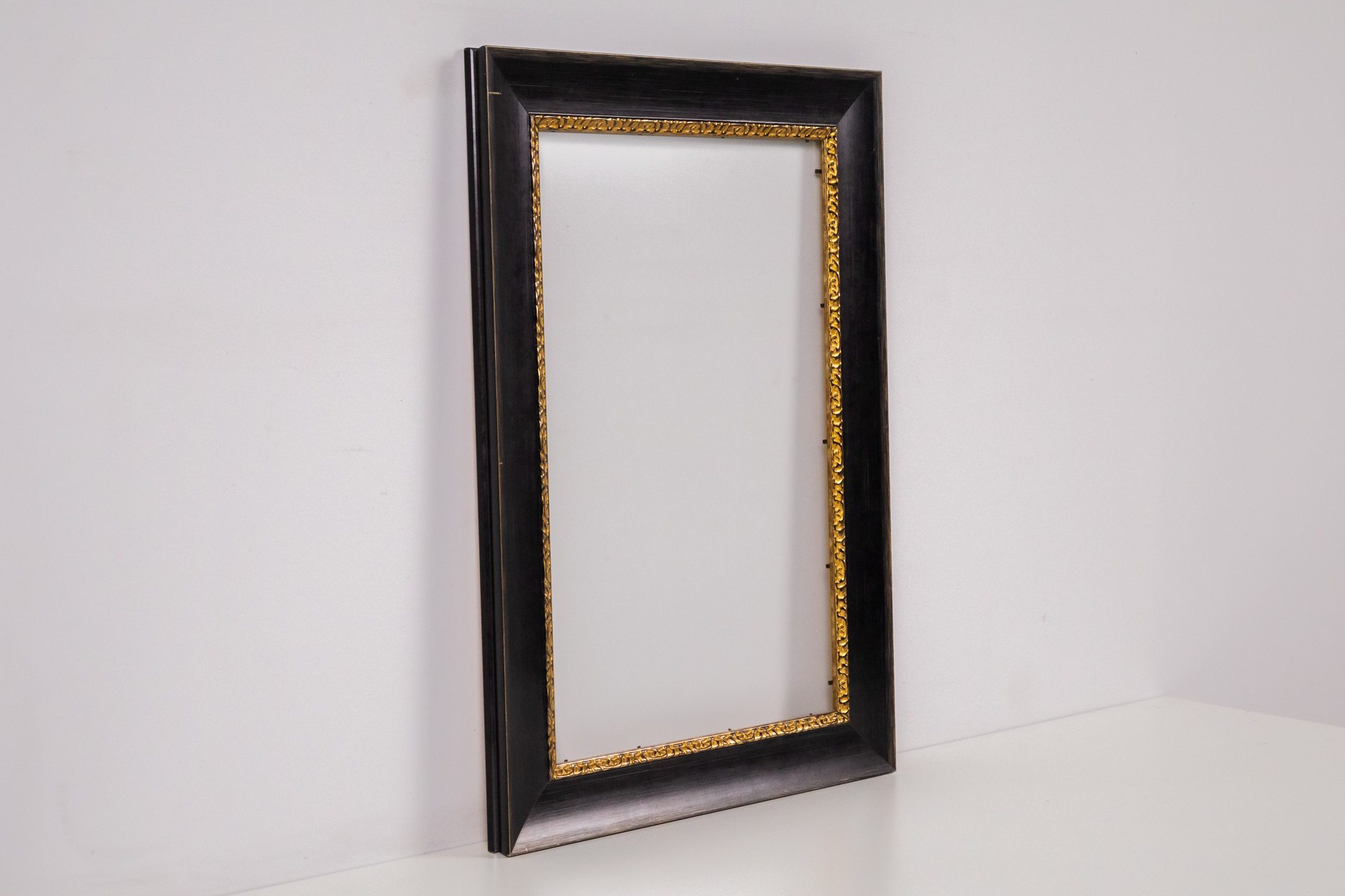 Egyszerű, modern stílusú üres keret, amelynek belső része sima, barna MDF anyagból készült. A keret színe fekete, a felülete sima és fényes, a sarkok élesek, a keret állapota új. A keret alkalmas különböző...