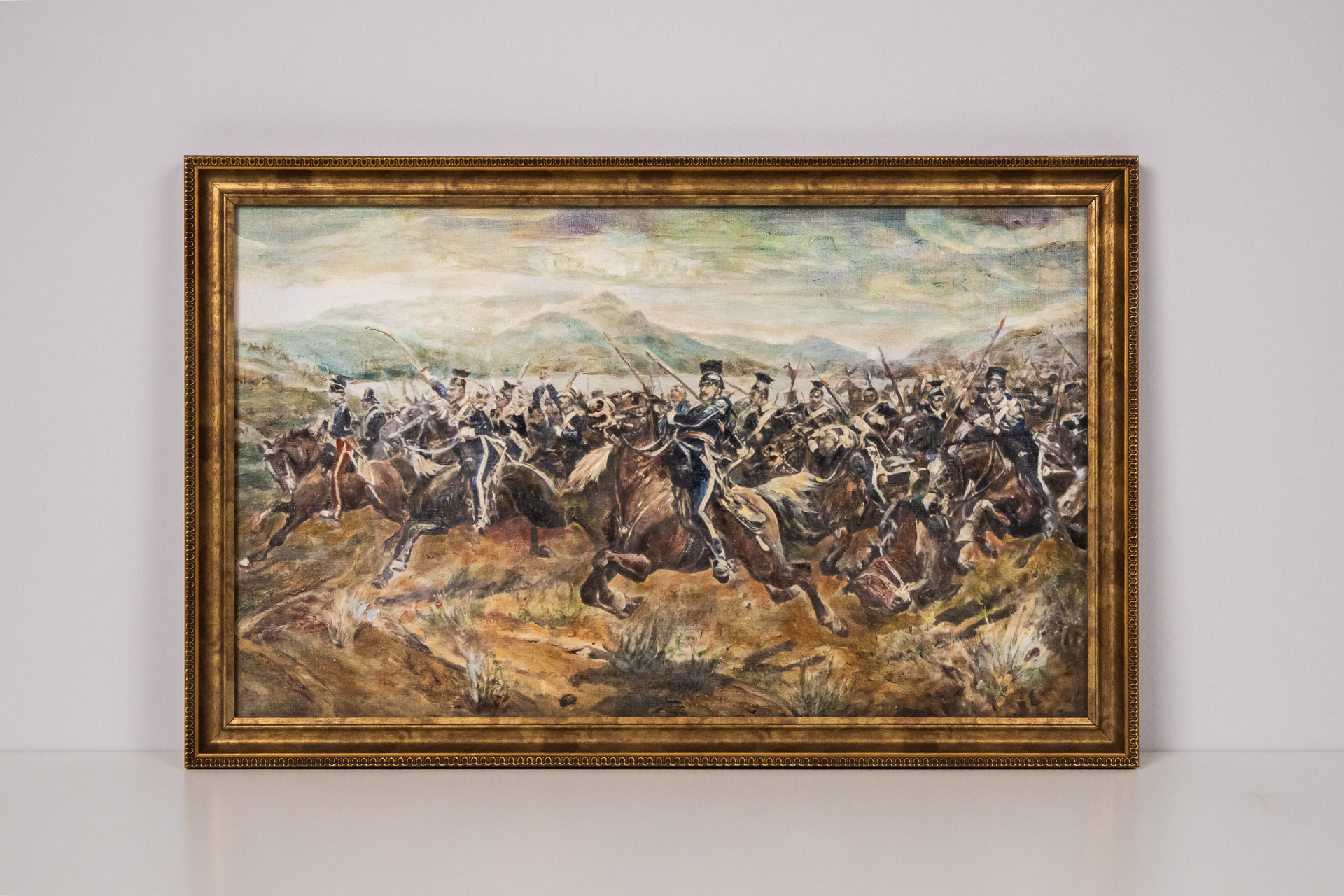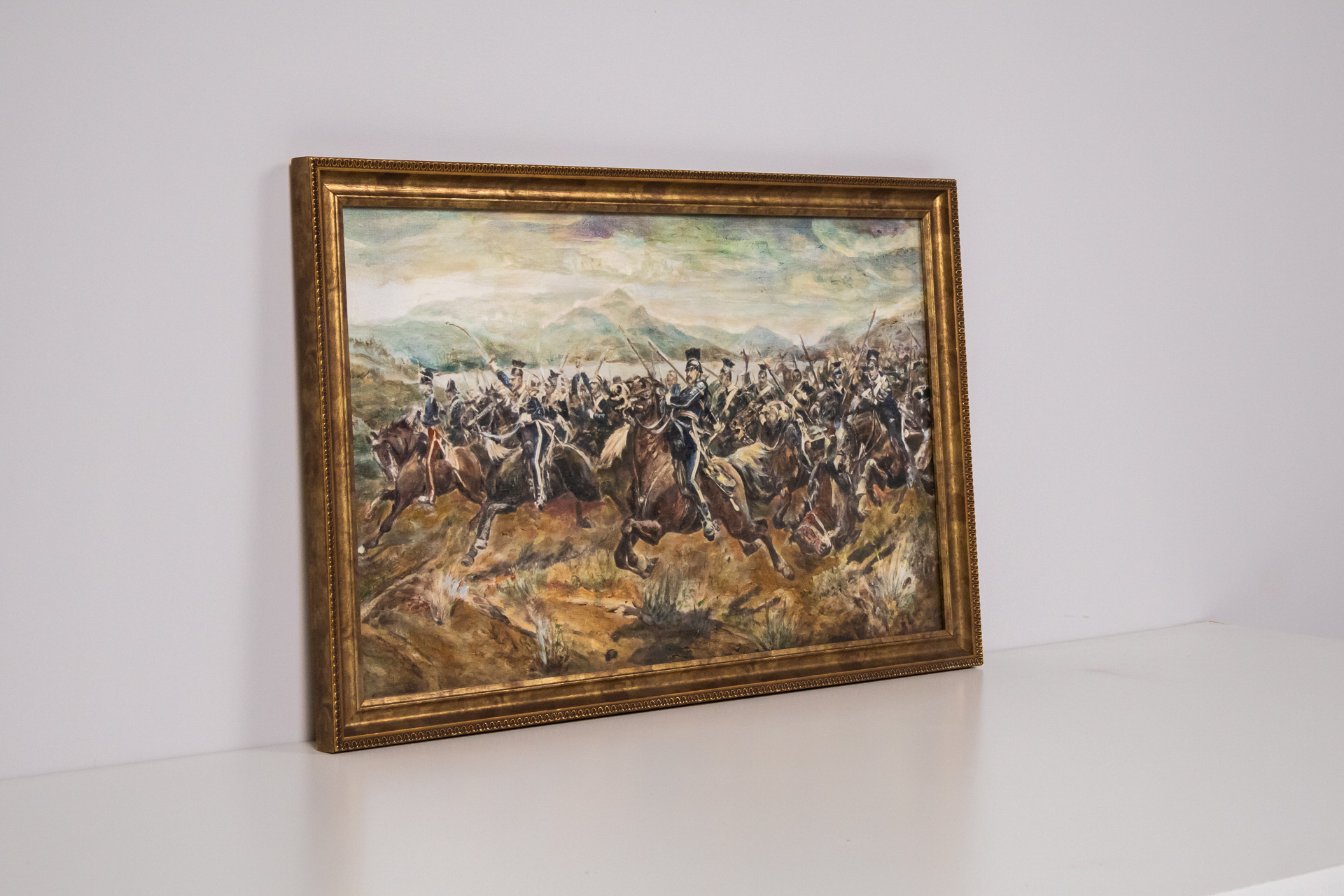 Történelmi csata jelenet aranykeretben