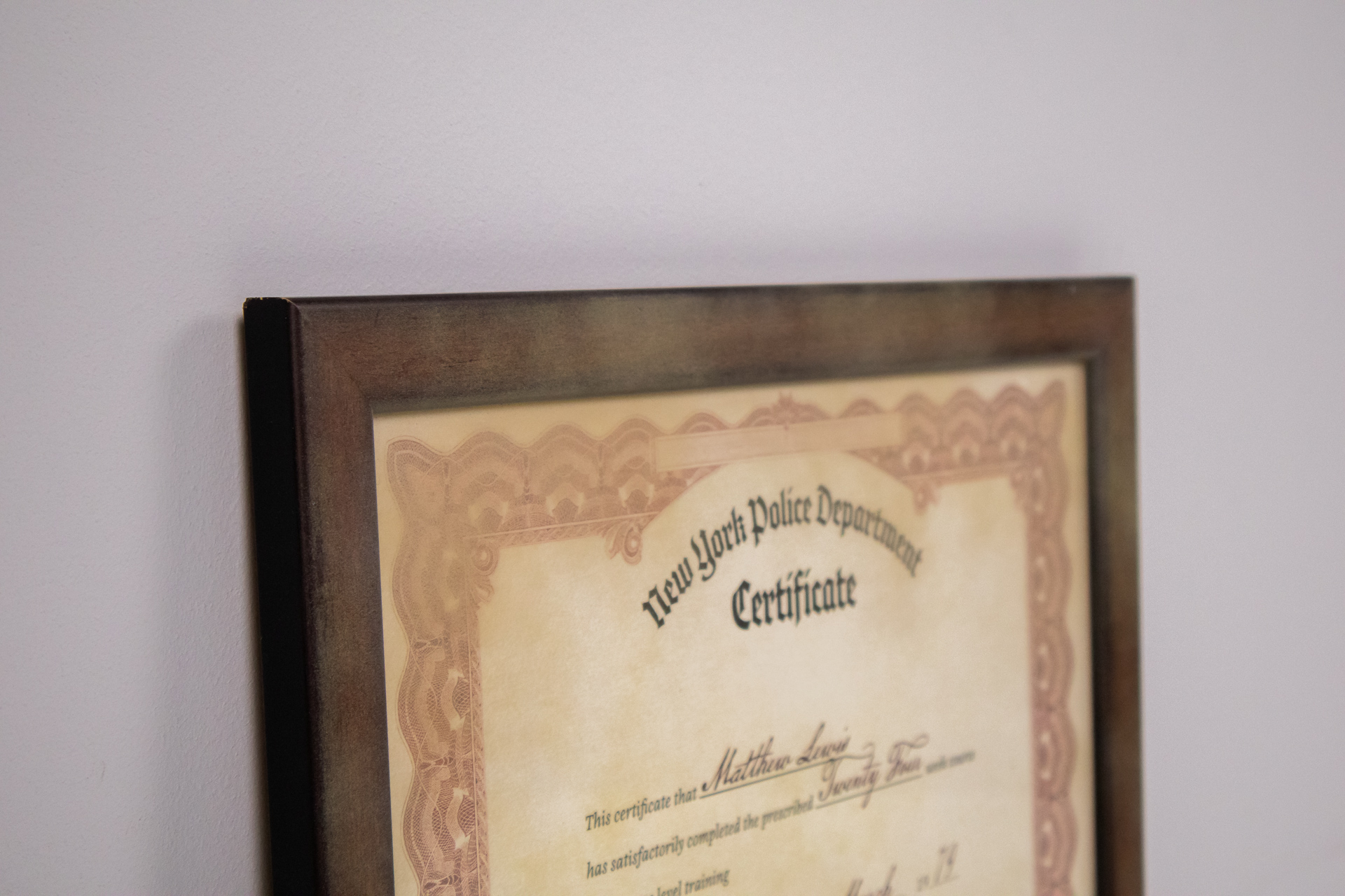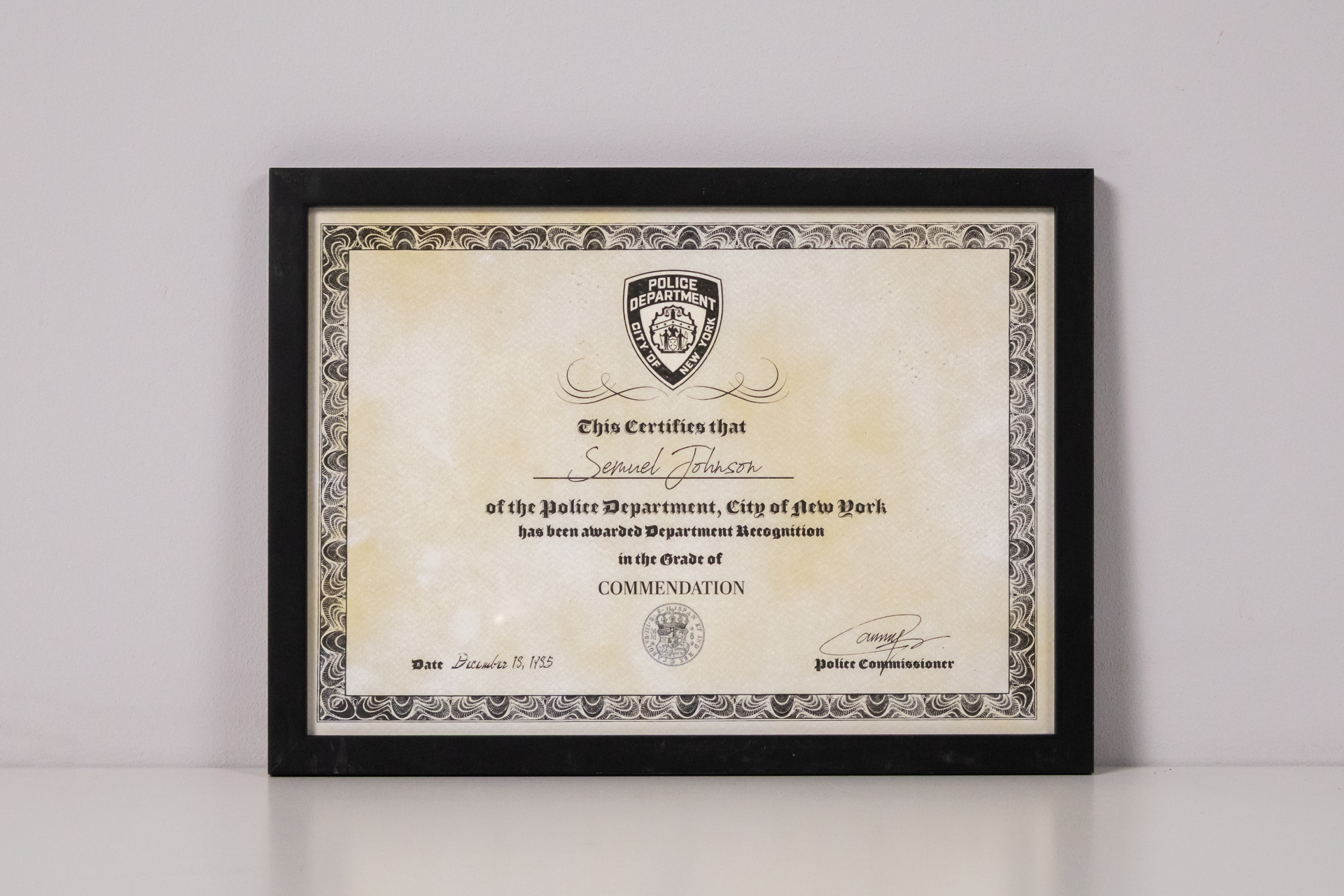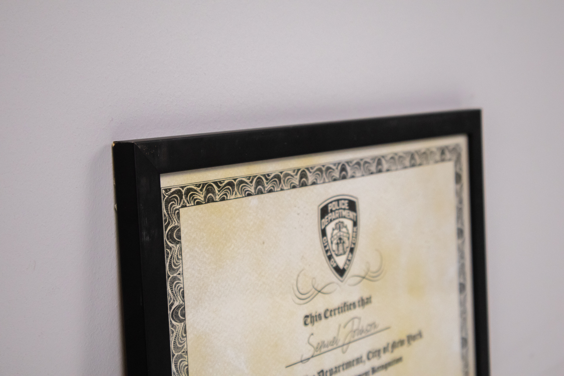New York Police Department Certificate
