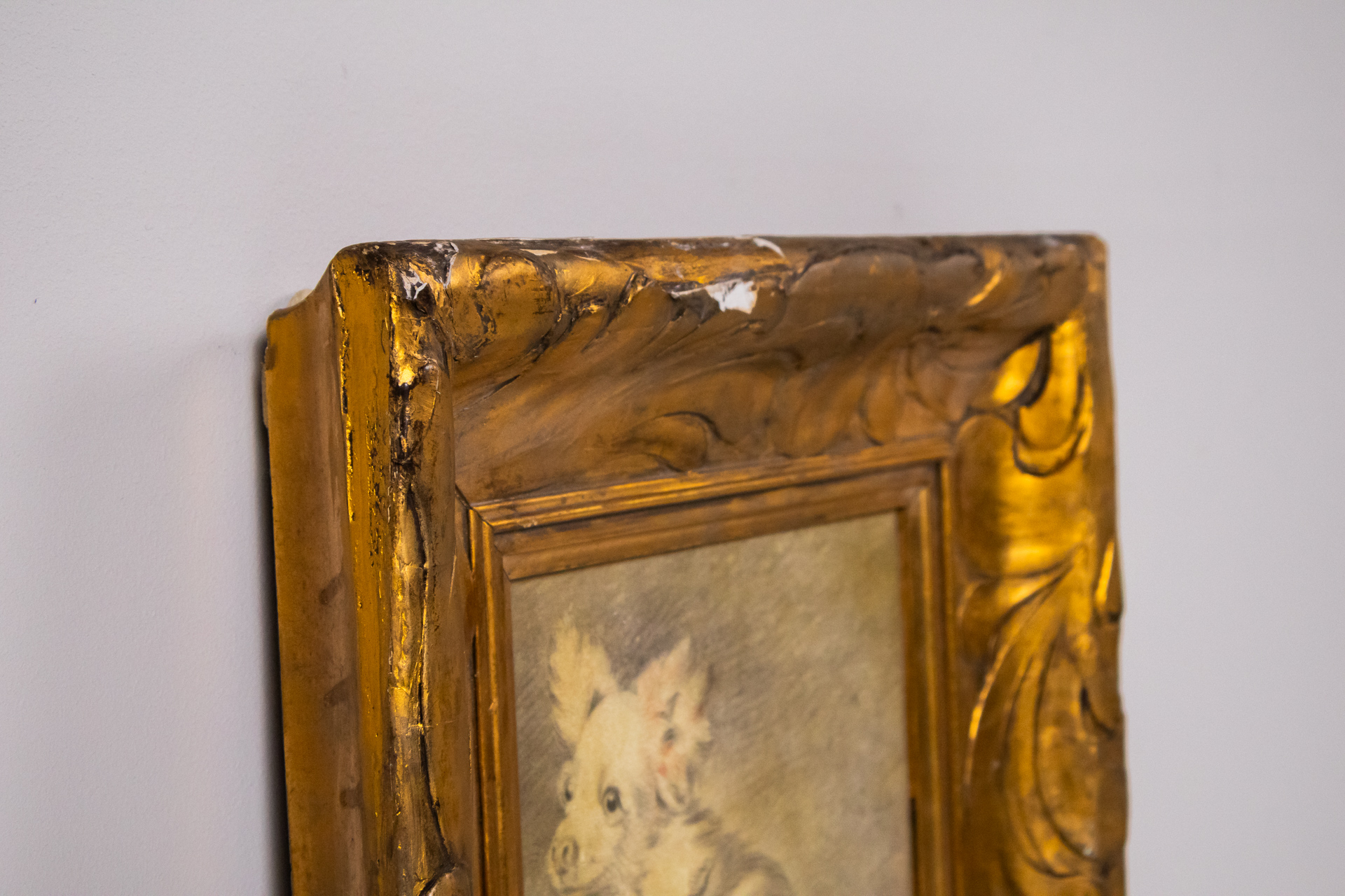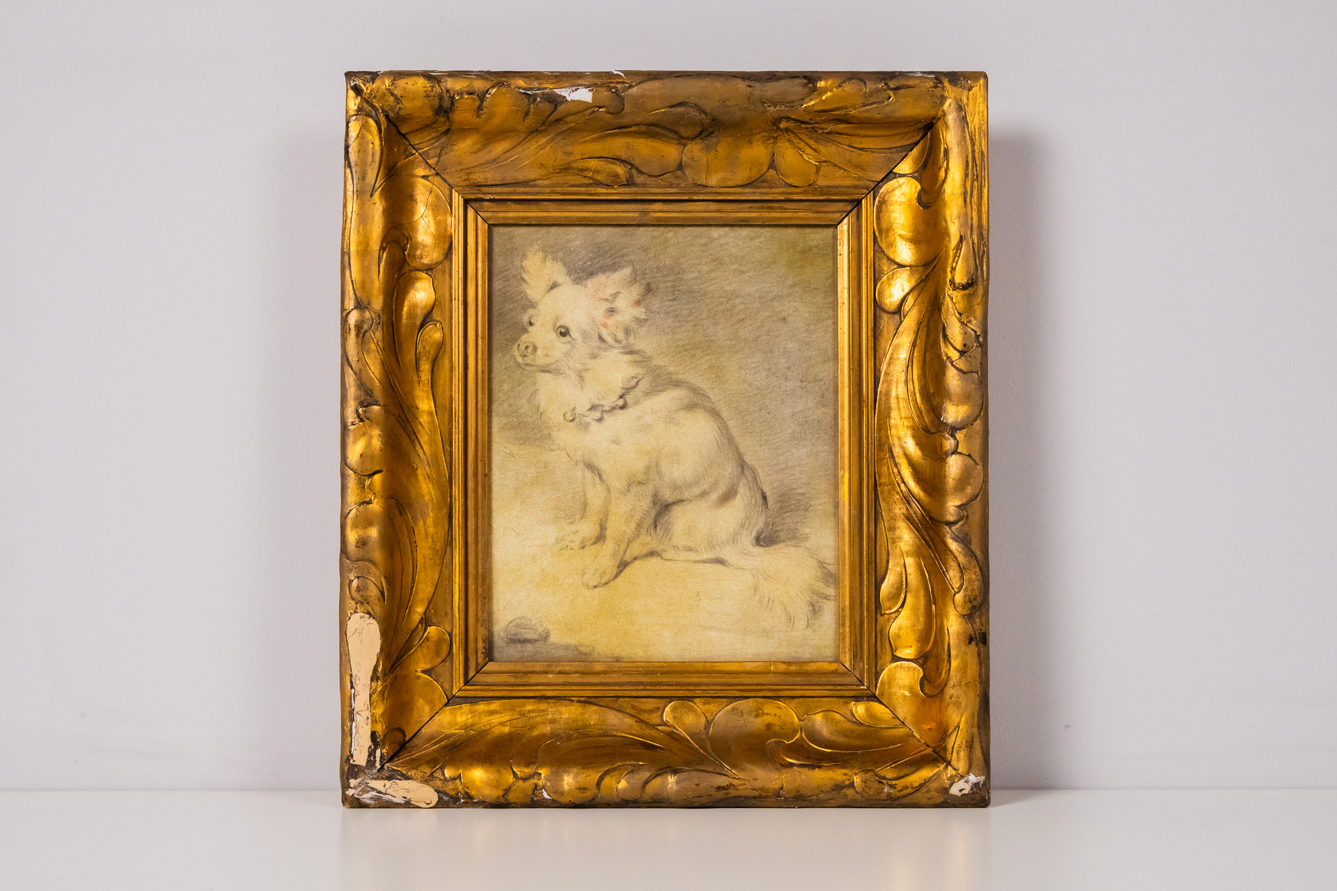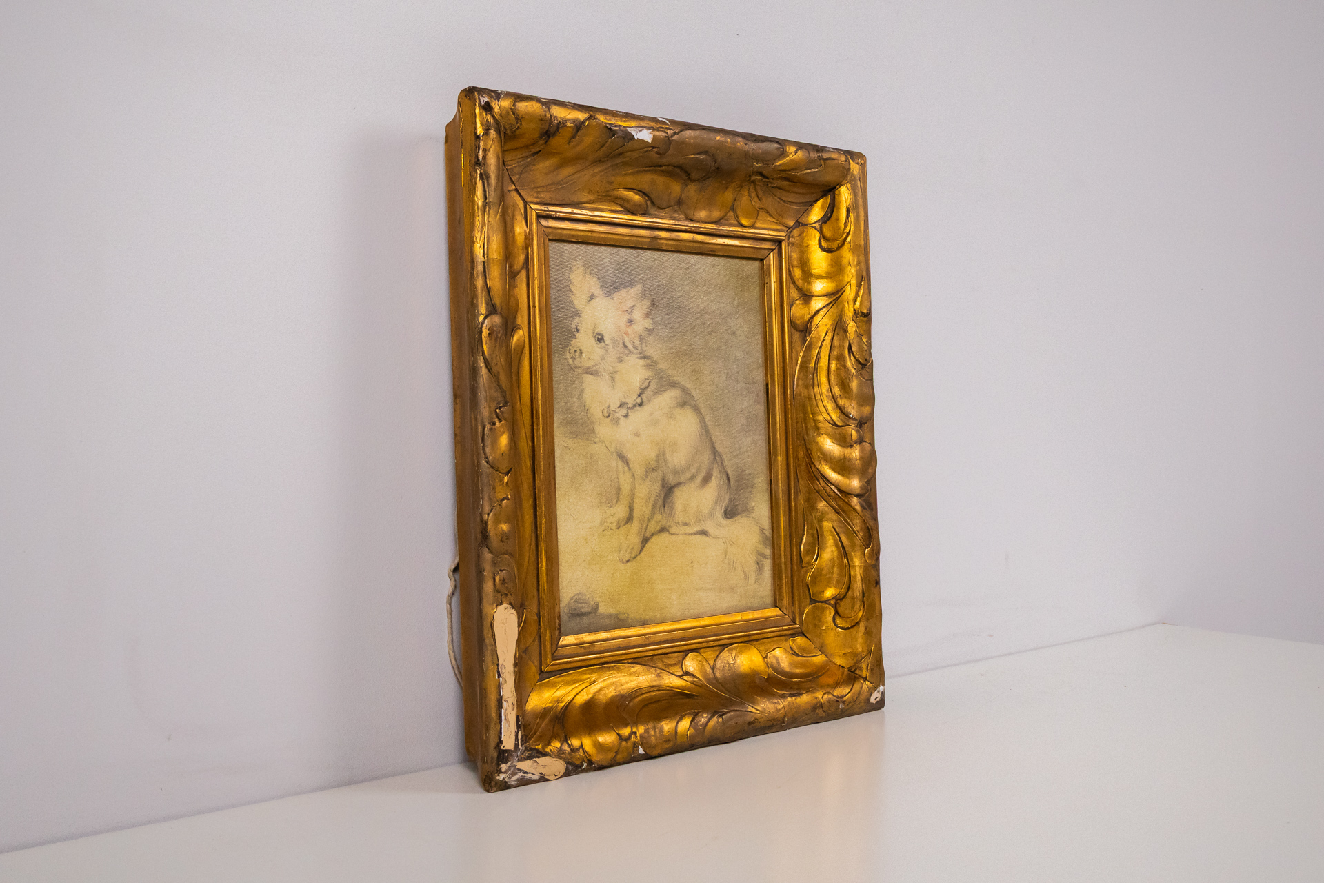 Kiskutya portré aranykeretben