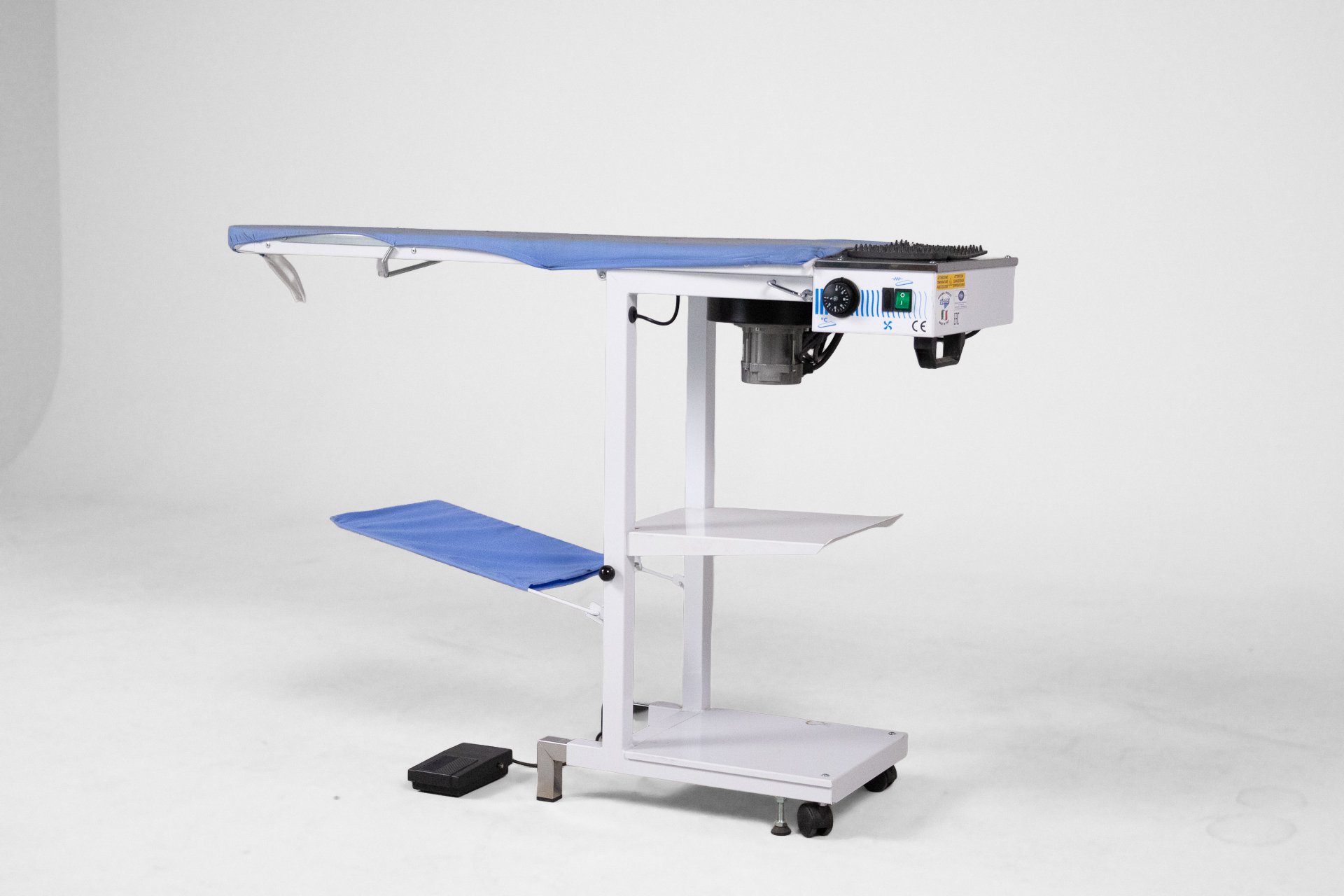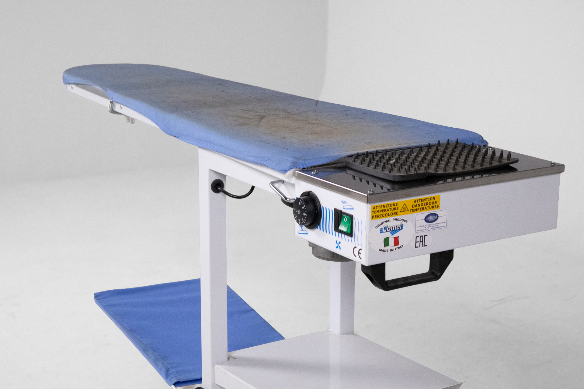 Gőzölős vasalóasztal 007 — 0039 Fehér fém vázzal és kék szövet borítással rendelkező gőzölős vasalóasztal Méret: 40.0×130.0×85.0 Mennyiség: Összesen 1 db • Elérhető 1 db ♡ 🛒 Kosárba 📄 Adatlap