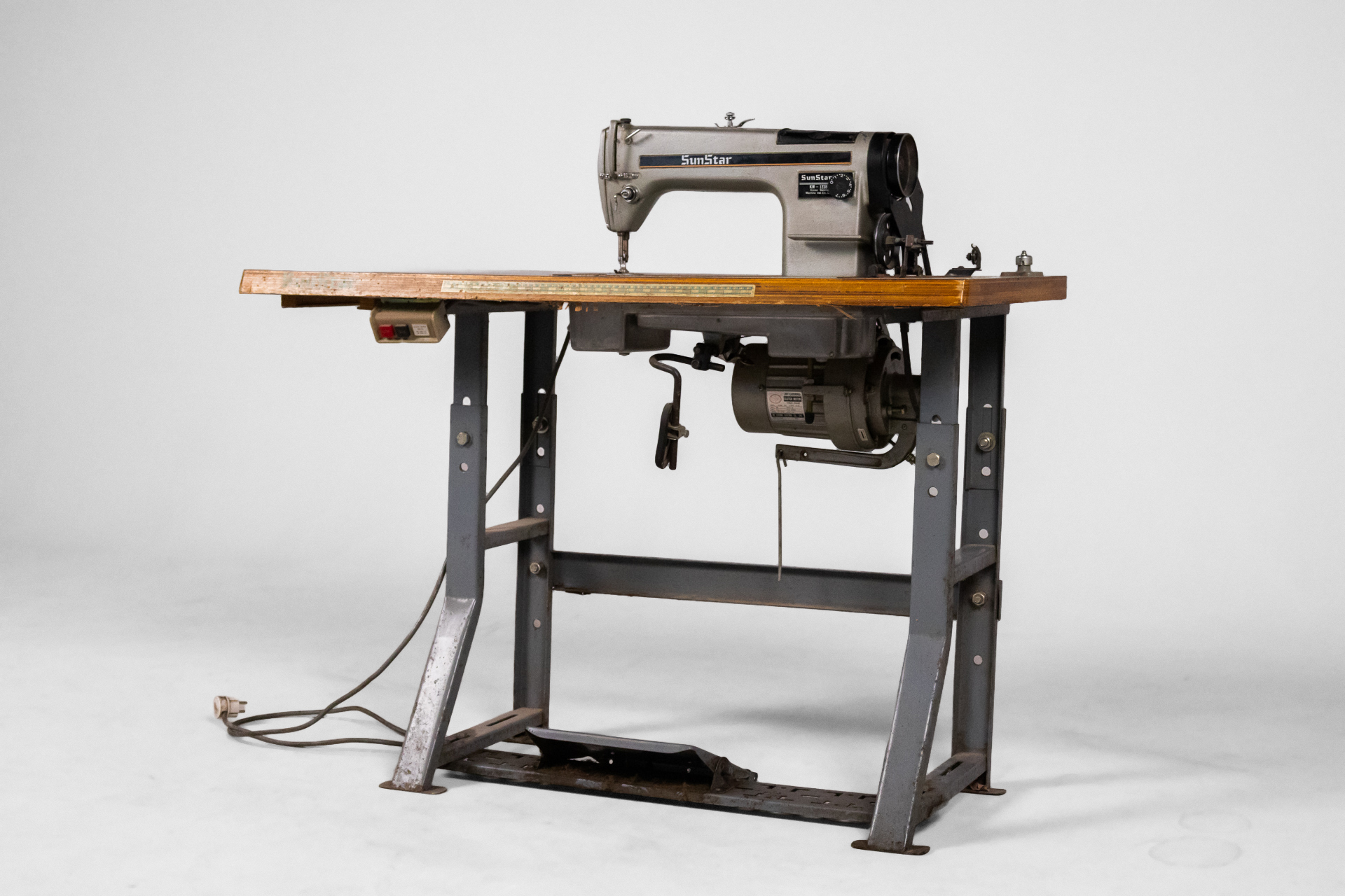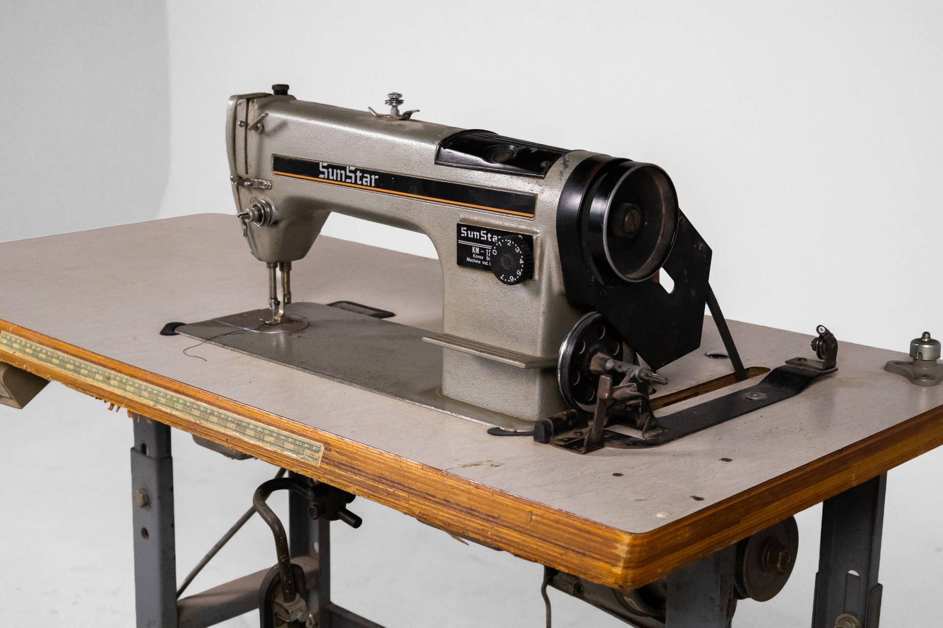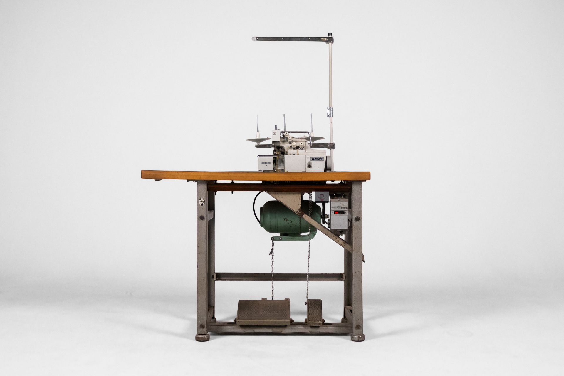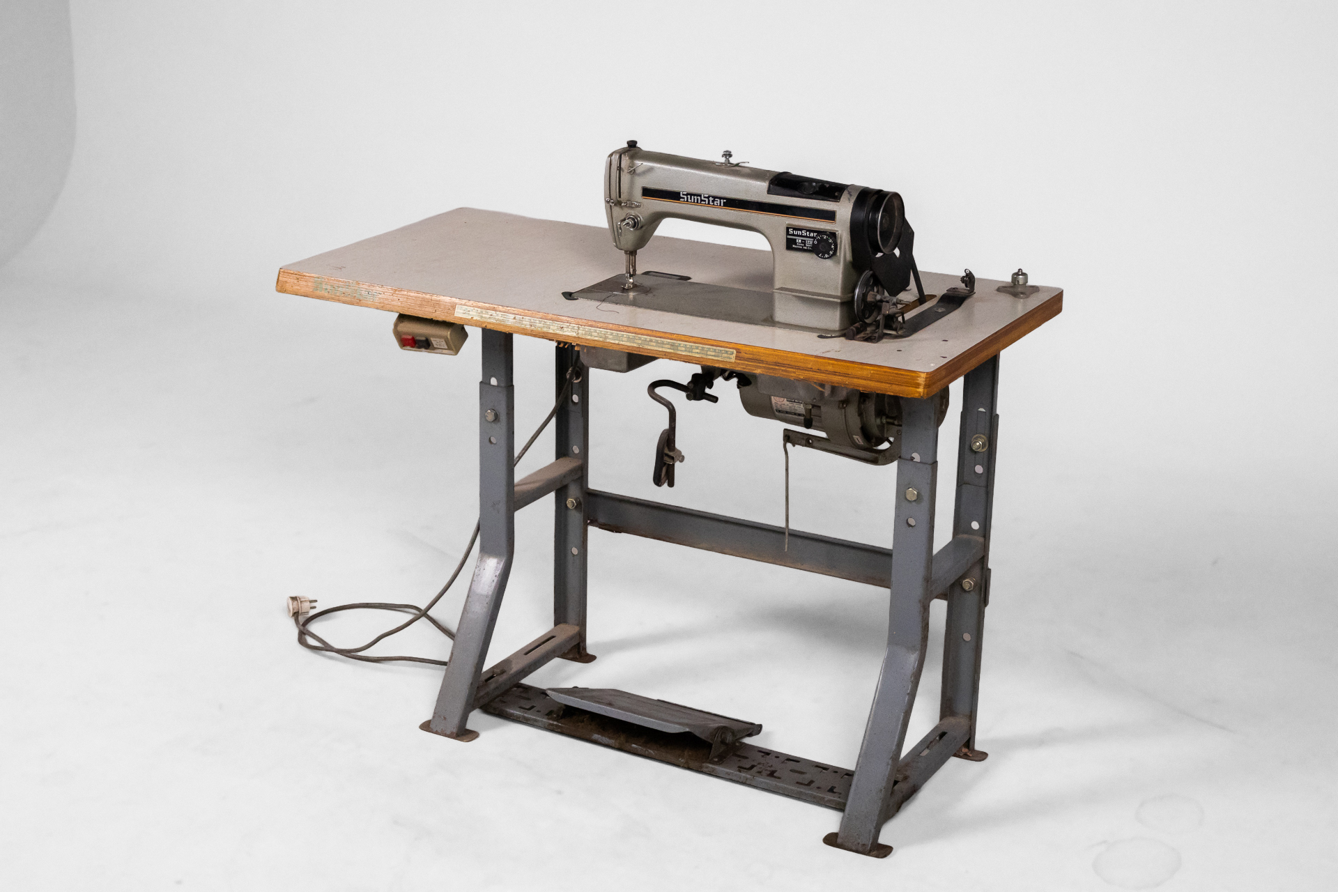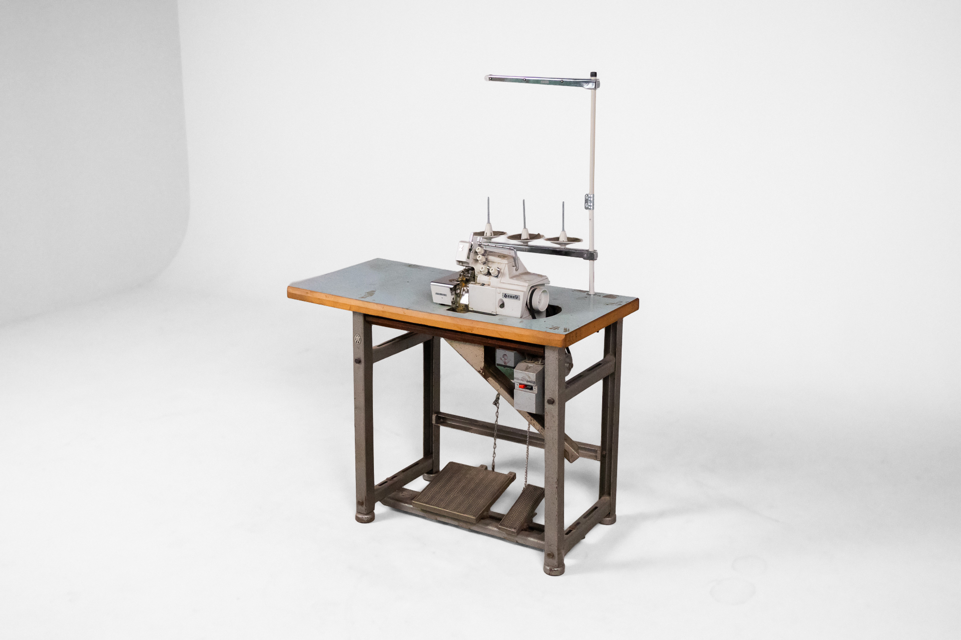 Ipari varrógép 007 — 0042 Fém és fa kombinációjából készült ipari varrógép robusztus asztallappal és stabil acél szerkezettel Méret: 118.0×55.0×105.0 Mennyiség: Összesen 1 db • Elérhető 1 db ♡ 🛒 Kosárba 📄 Adatlap