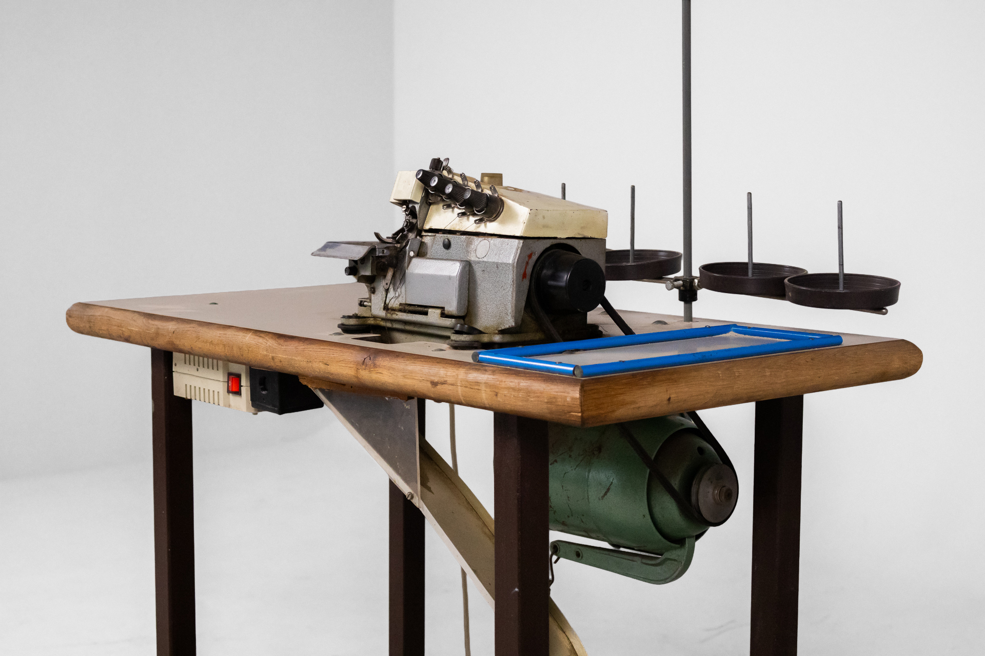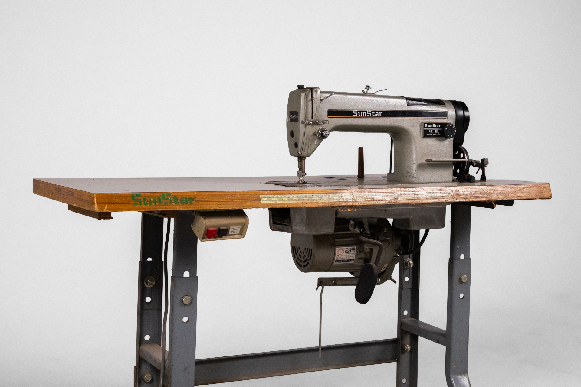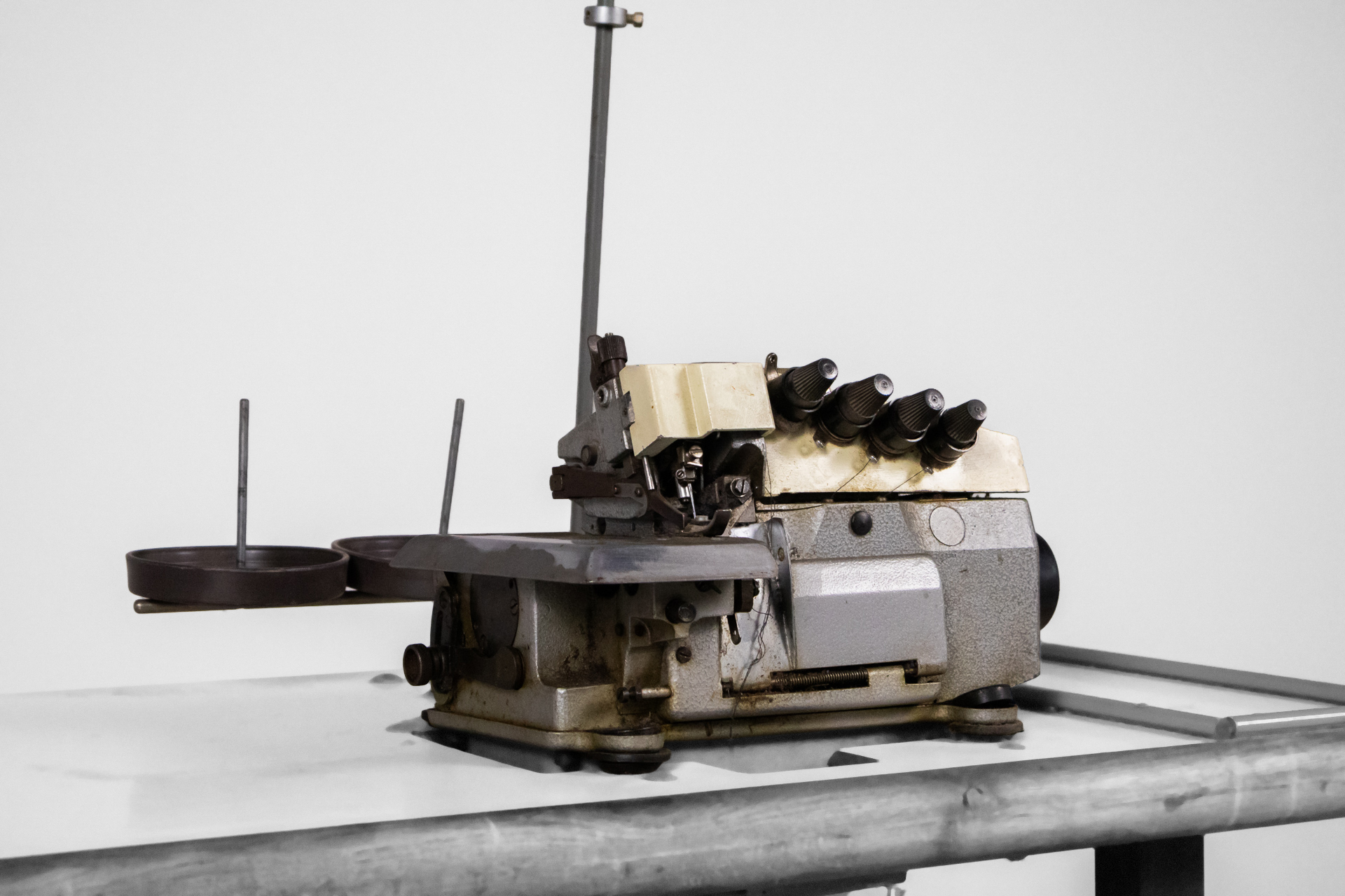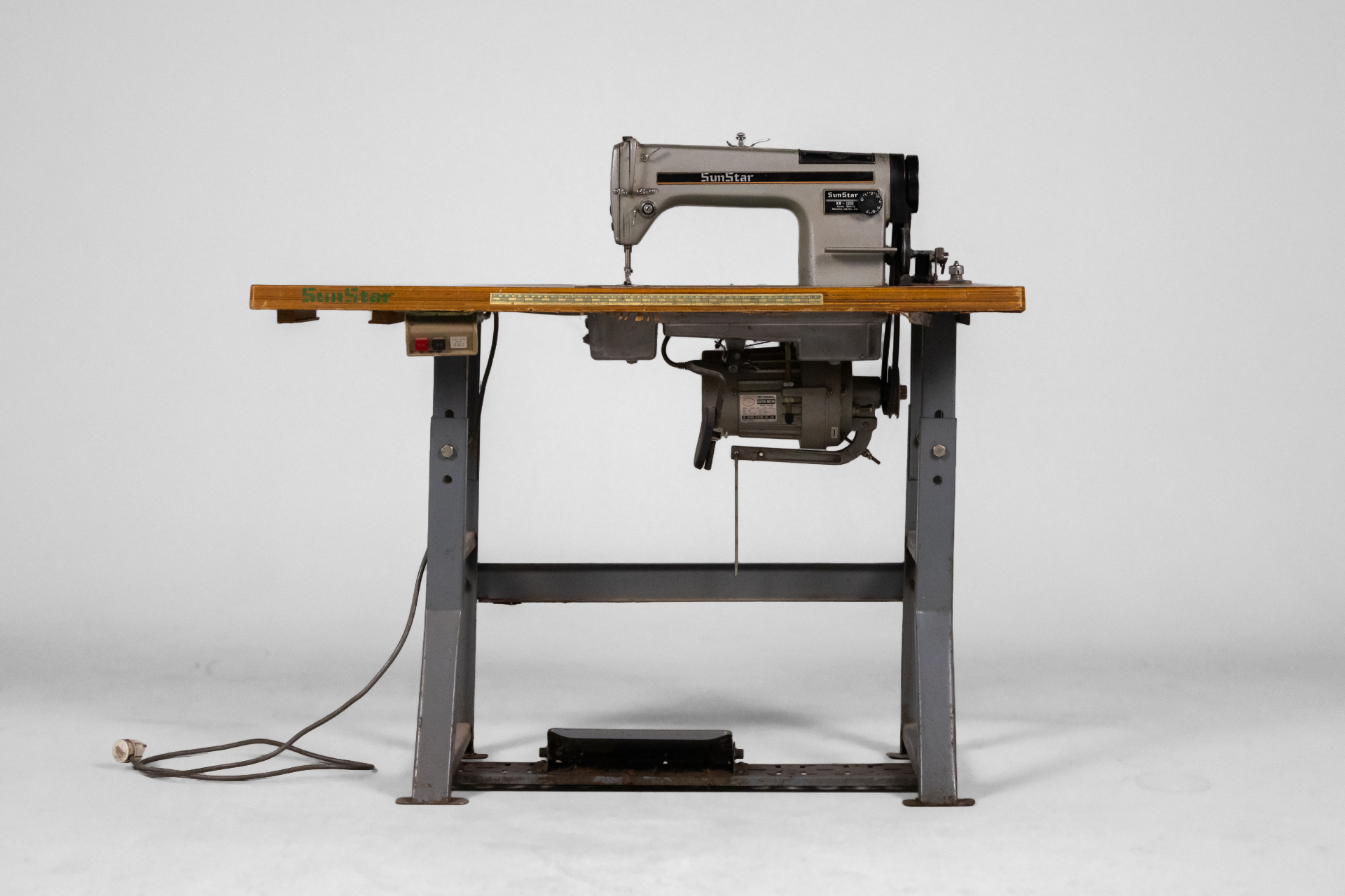 Ipari varrógép 007 — 0042 Fém és fa kombinációjából készült ipari varrógép robusztus asztallappal és stabil acél szerkezettel Méret: 118.0×55.0×105.0 Mennyiség: Összesen 1 db • Elérhető 1 db ♡ 🛒 Kosárba 📄 Adatlap