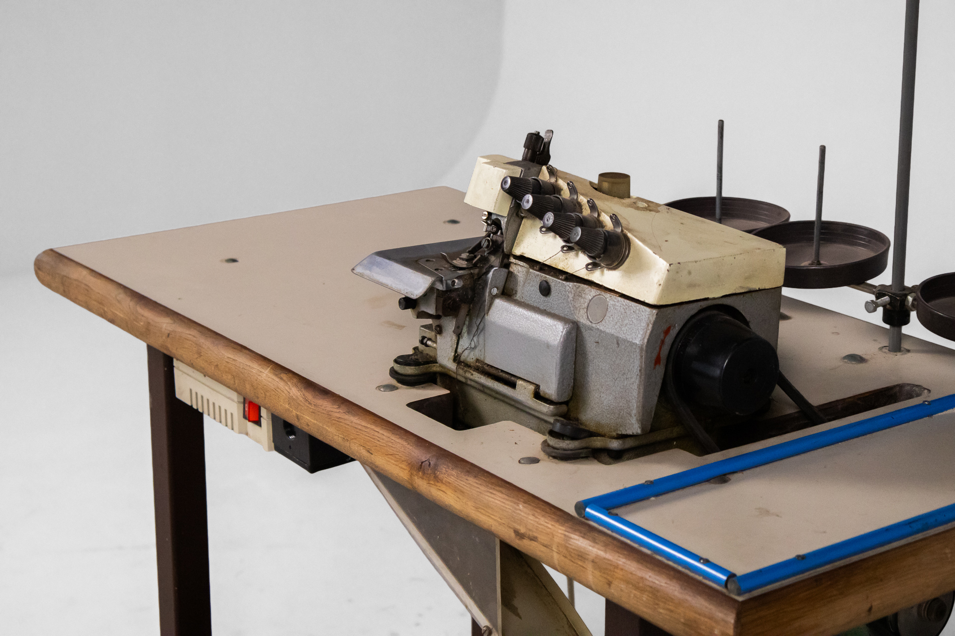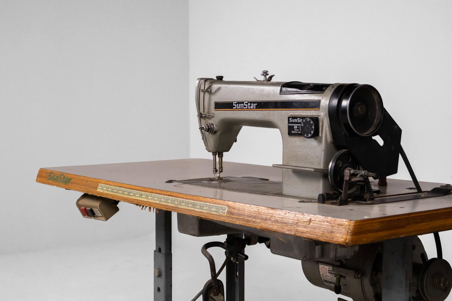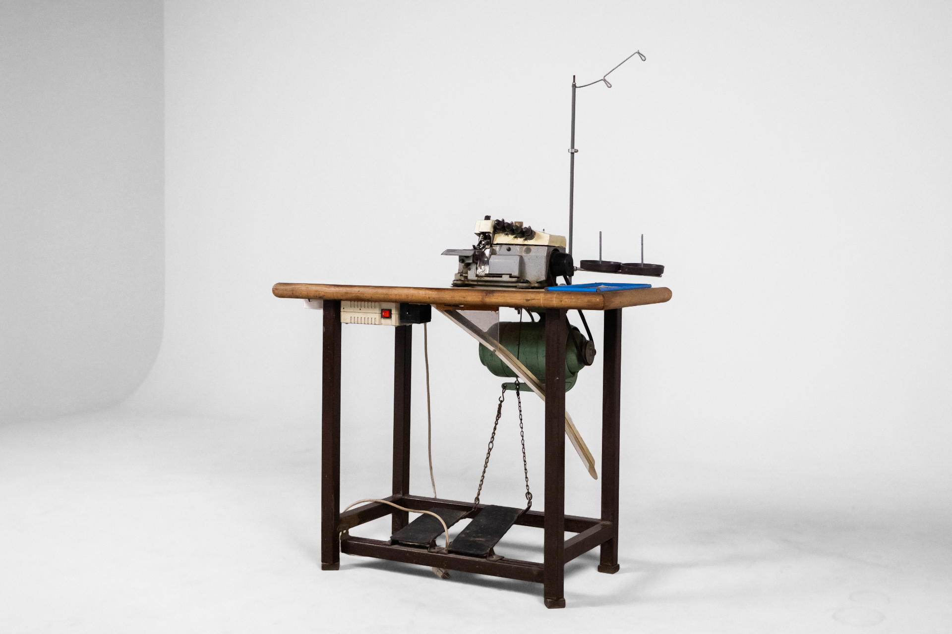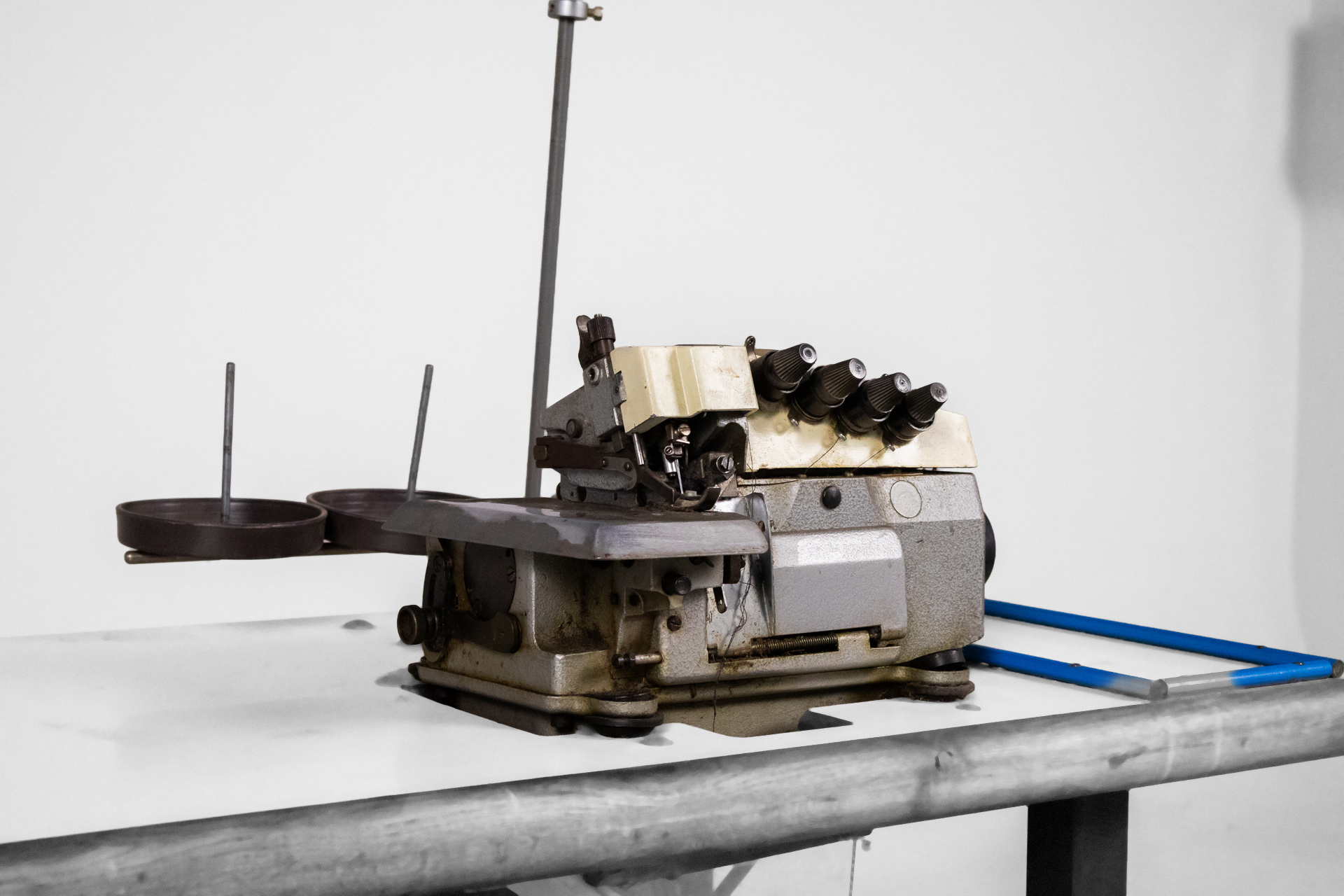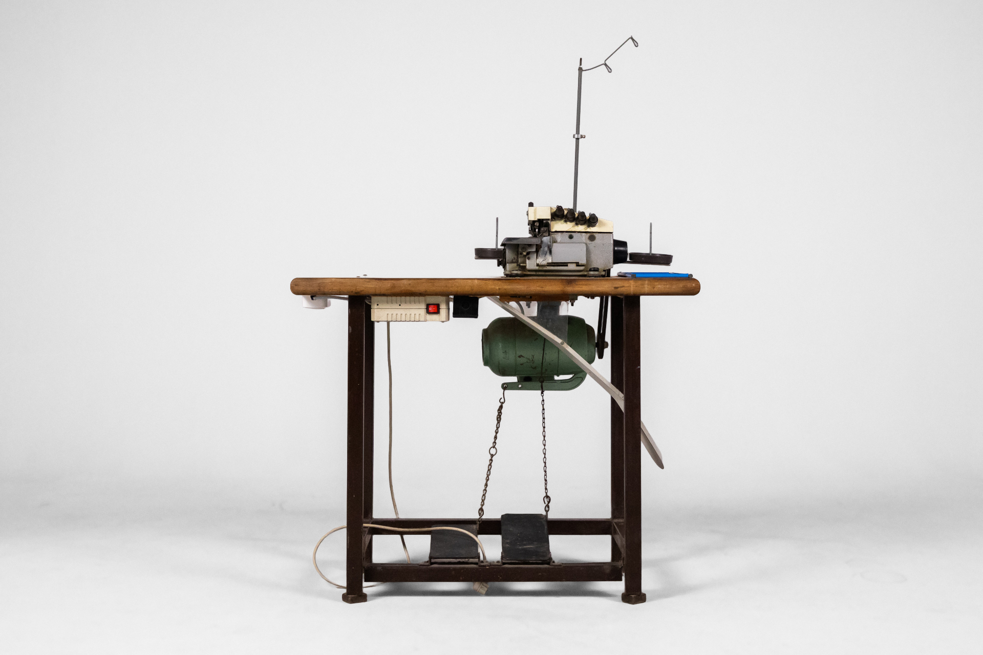 Ipari varrógép 007 — 0042 Fém és fa kombinációjából készült ipari varrógép robusztus asztallappal és stabil acél szerkezettel Méret: 118.0×55.0×105.0 Mennyiség: Összesen 1 db • Elérhető 1 db ♡ 🛒 Kosárba 📄 Adatlap