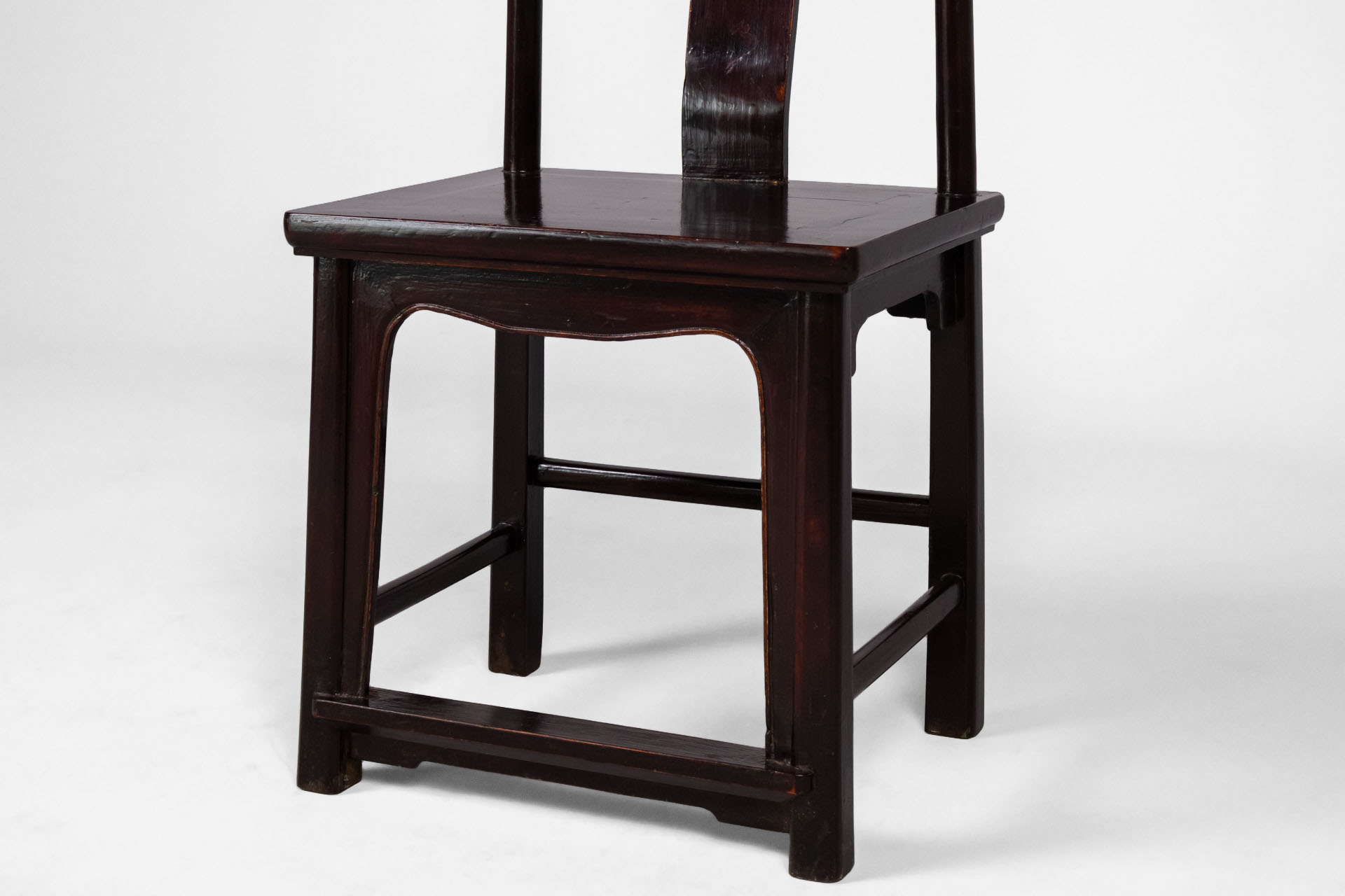 Elegáns, antik stílusú kínai szék, amely finoman ívelt háttámlával és masszív, sötétbarna fa szerkezettel rendelkezik. A szék ülőfelülete széles és kényelmes, a lábak erősek és stabilak, így ideális választás...